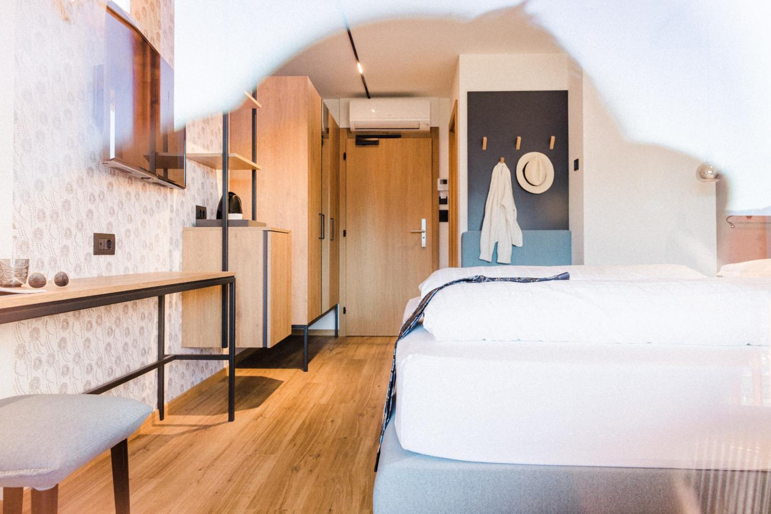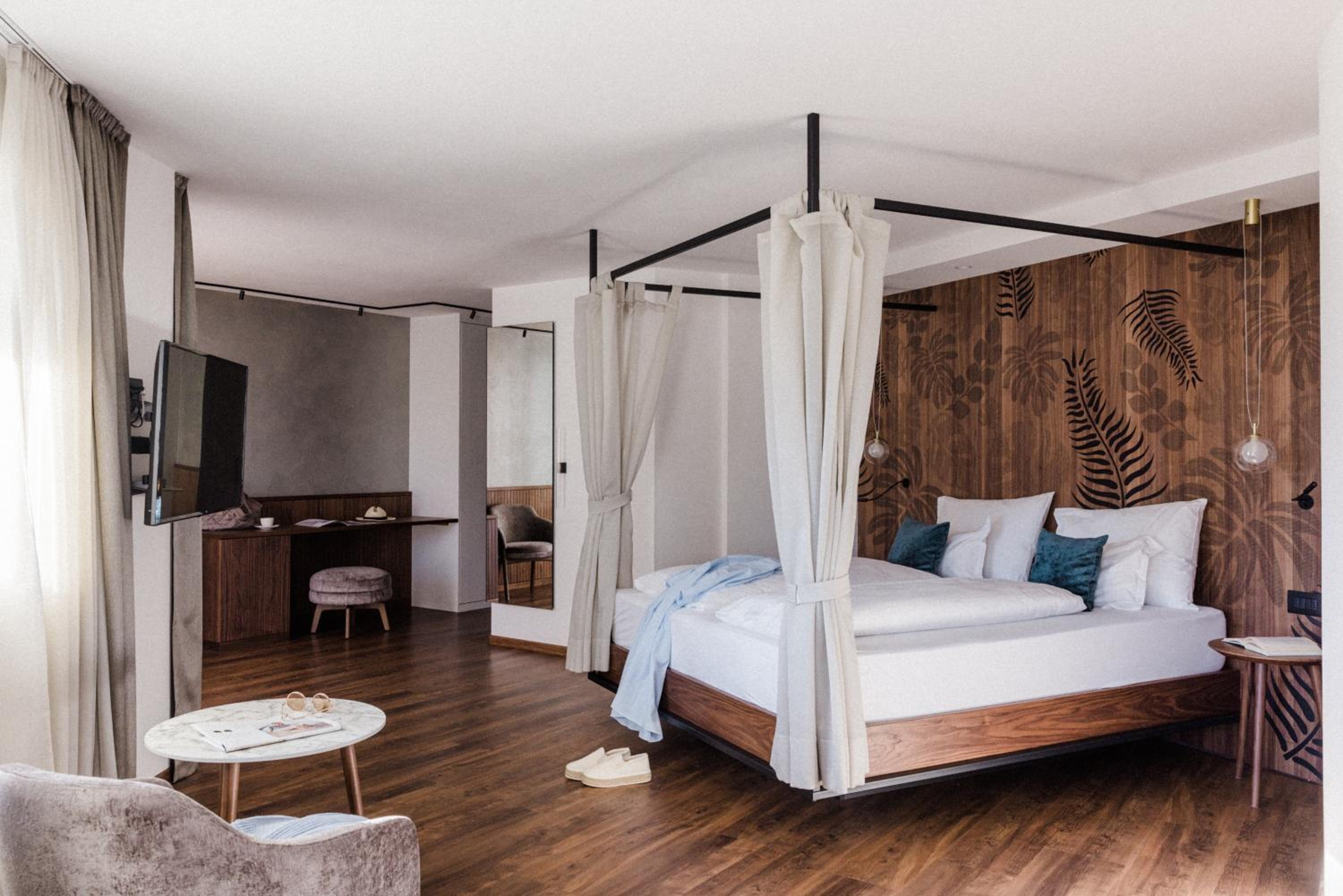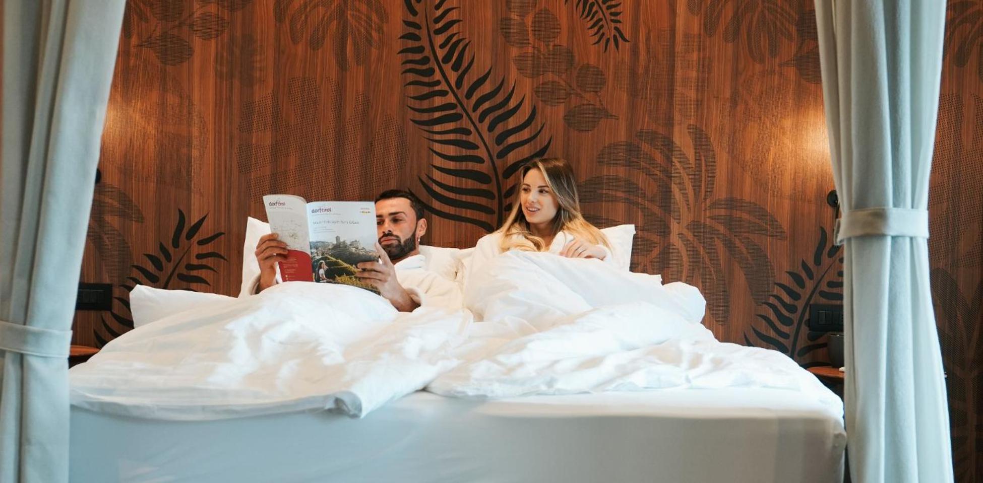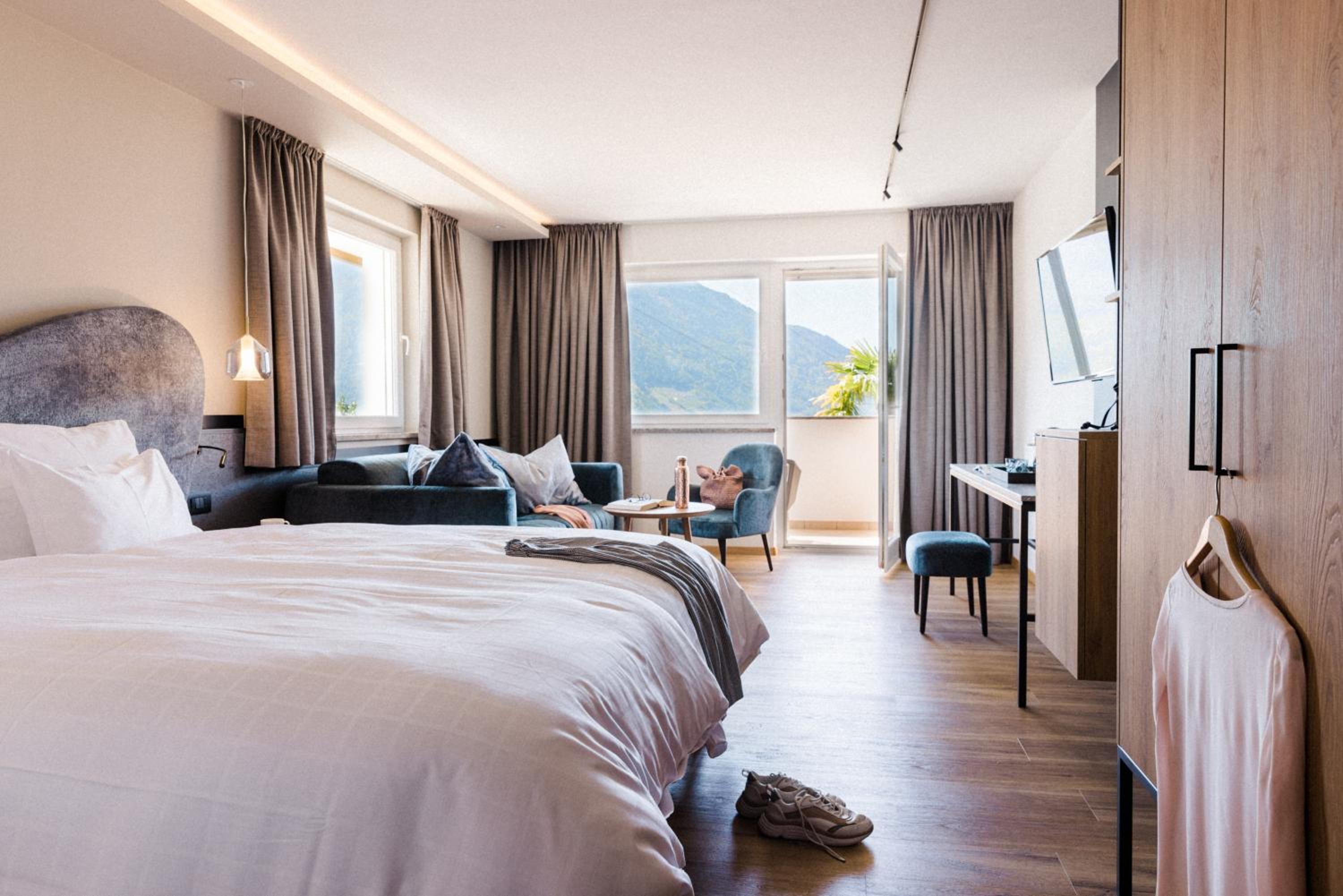 Luxurious Accommodation: Hotel Paradies in Tirolo offers air-conditioned rooms with modern amenities like a coffee machine, minibar, and flat-screen TV. Some rooms even boast stunning city views and balconies for a relaxing stay.