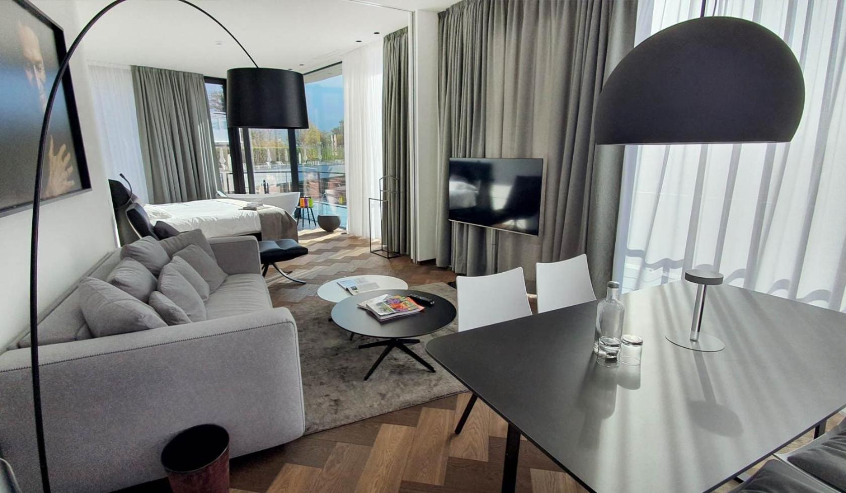 Toller Wellnessbereich mit super Aussicht aus der Sauna, sehr bequeme Betten und es ist immer was los - von z.B. Pilates am Freitagmorgen bis Get-Together vor dem Abendessen. Das Personal und die Inhaber sind sehr präsent und man fühlt sich sofort umsorgt.