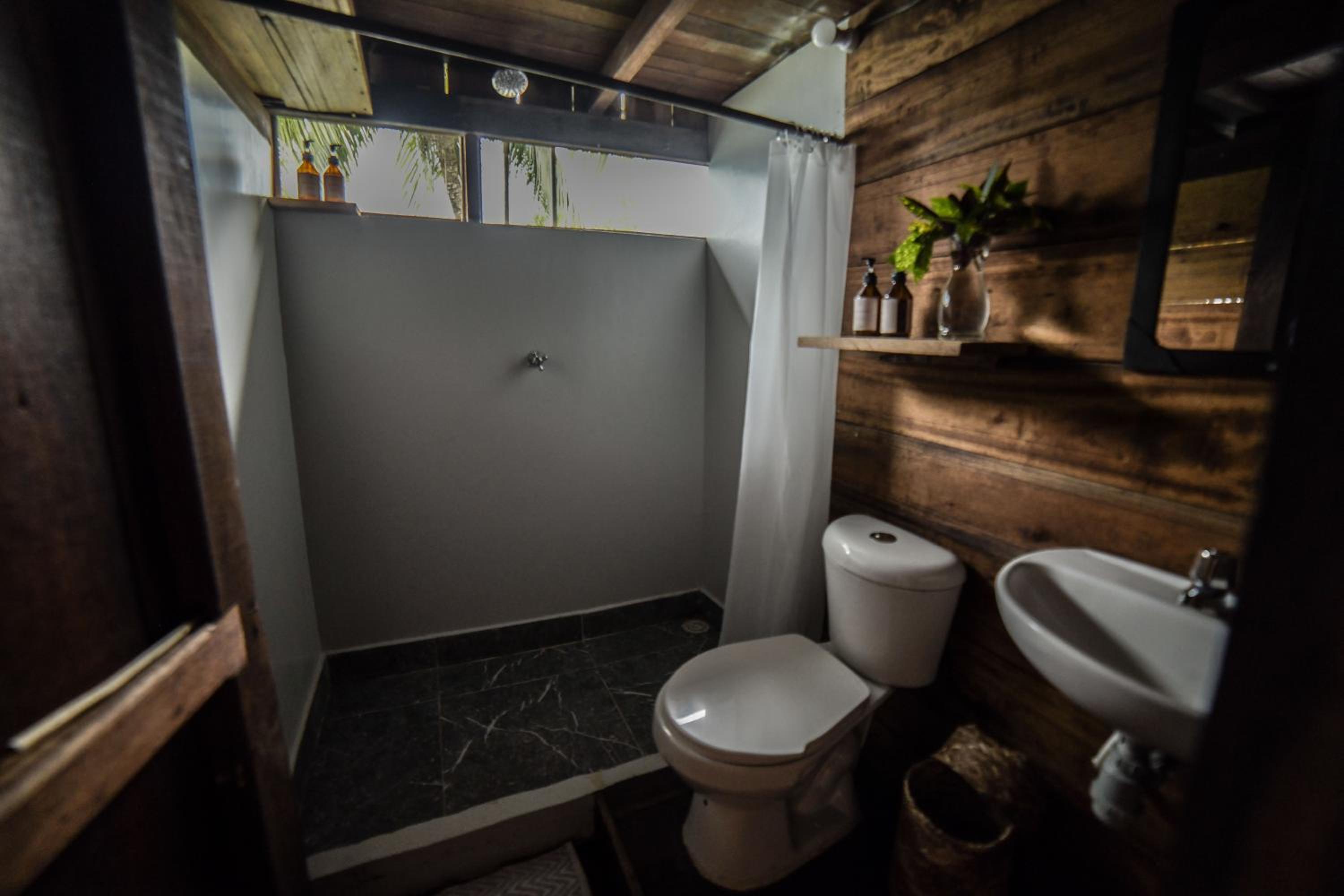 The facilities are not good for what you pay. There was no hot water in the room. The shower was essentially a pipe that poured water over you. There was no electricity in the room beyond the lights, so you have to charge all your electrical equipment in the common areas. There was also no place to leave your clothes. In addition, the clothes do not dry properly as the air is very humid, and the hotel does not have any way of drying them (or so we were told). This meant that a lot of our clothes now smell like mold. There’s no air conditioning in the room.