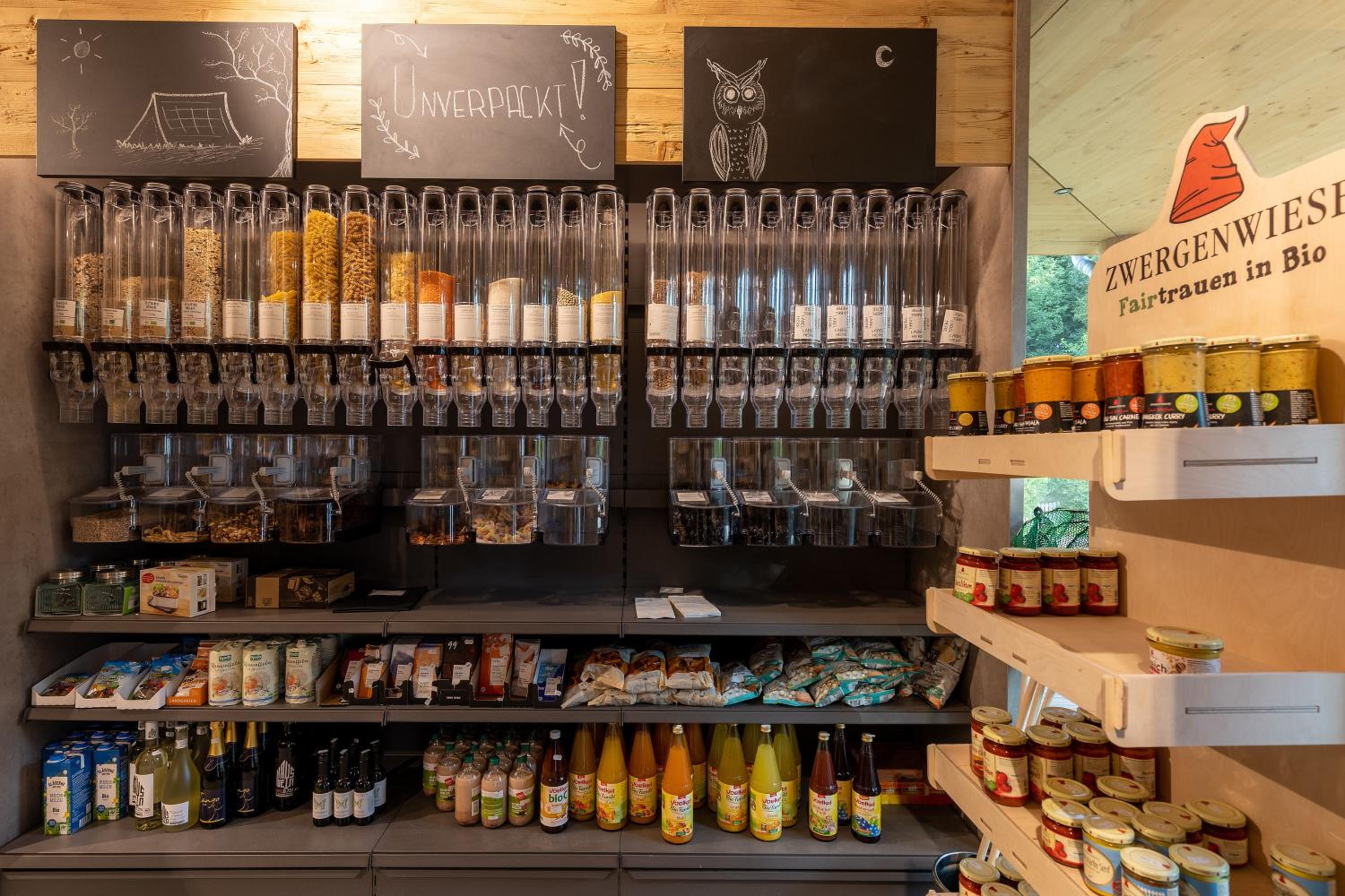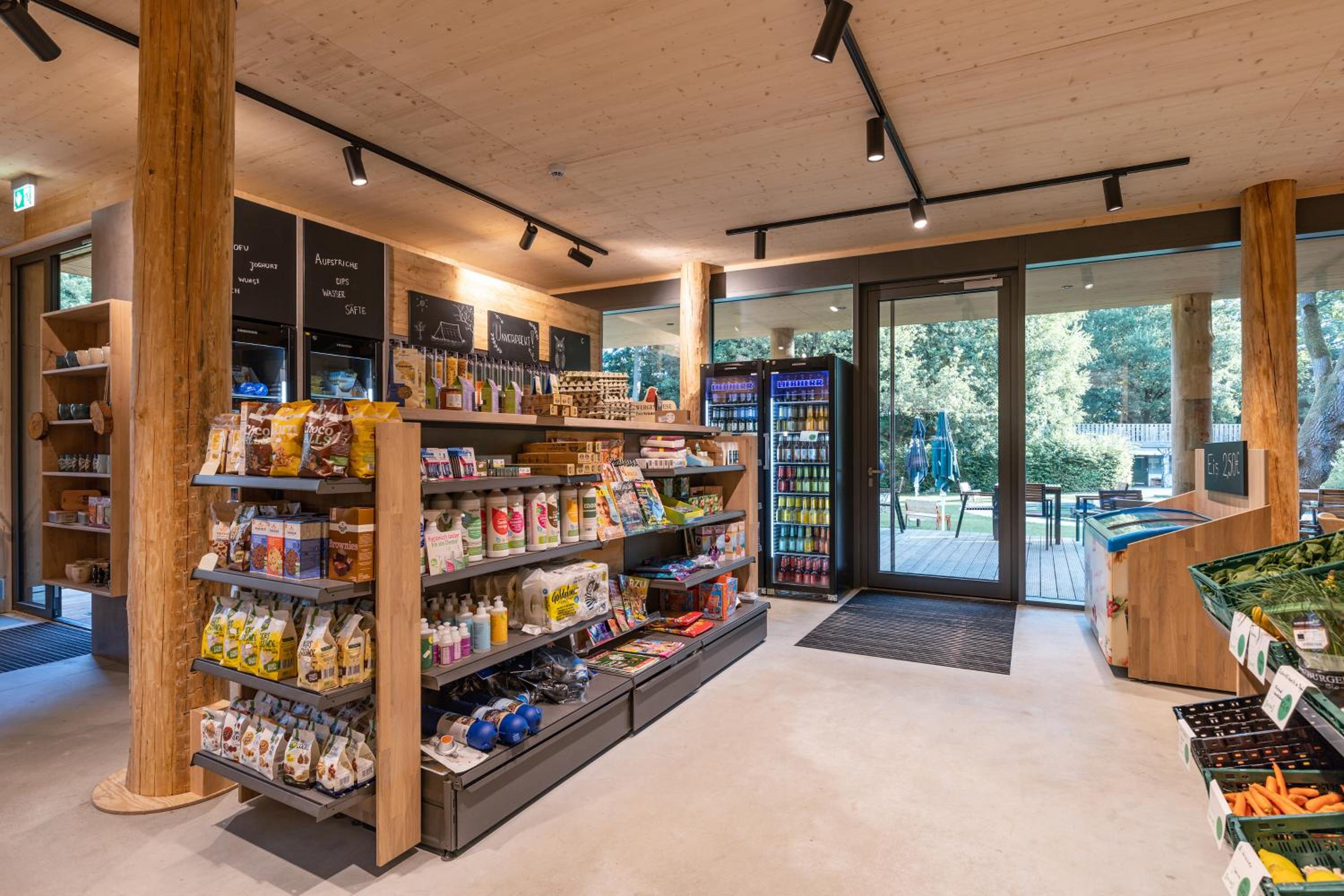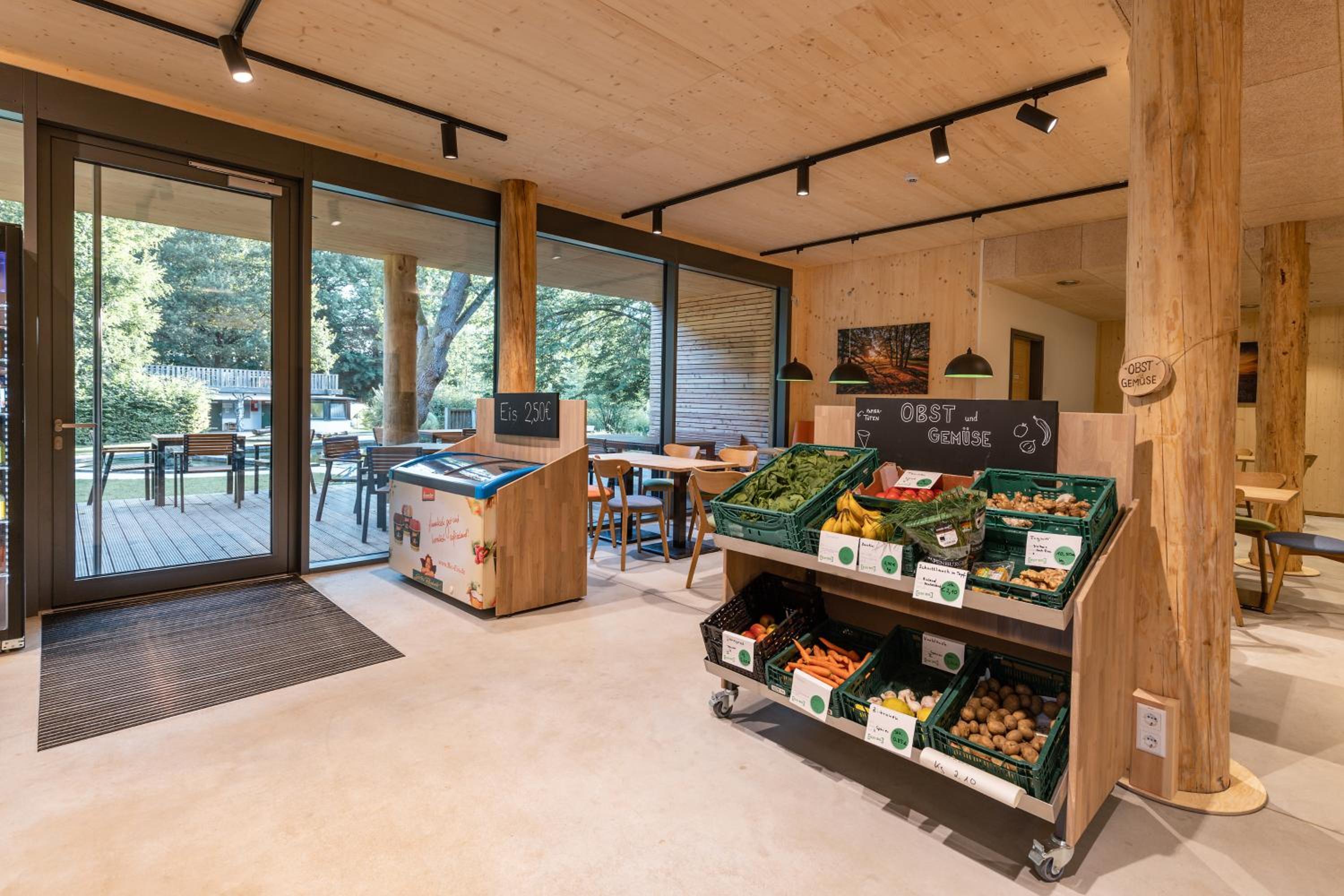 Der Sitzbereich im Imbiss befindet sich direkt neben den Regalen des Bioladens und ist gleichzeitig auch Spielecke. Man kommt sich vor wie in einer Jugendherberge. Der Preis von 97 € für ein Zimmer inklusive Frühstück ist nicht akzeptabel. Das Personal macht einen freundlichen aber leicht überforderten Eindruck. Da sich das Gelände am Dorfrand befindet, gibt es auch keine Möglichkeit Einkaufsmöglichkeiten oder andere gastronomische Einrichtungen zu Fuß zu erreichen.