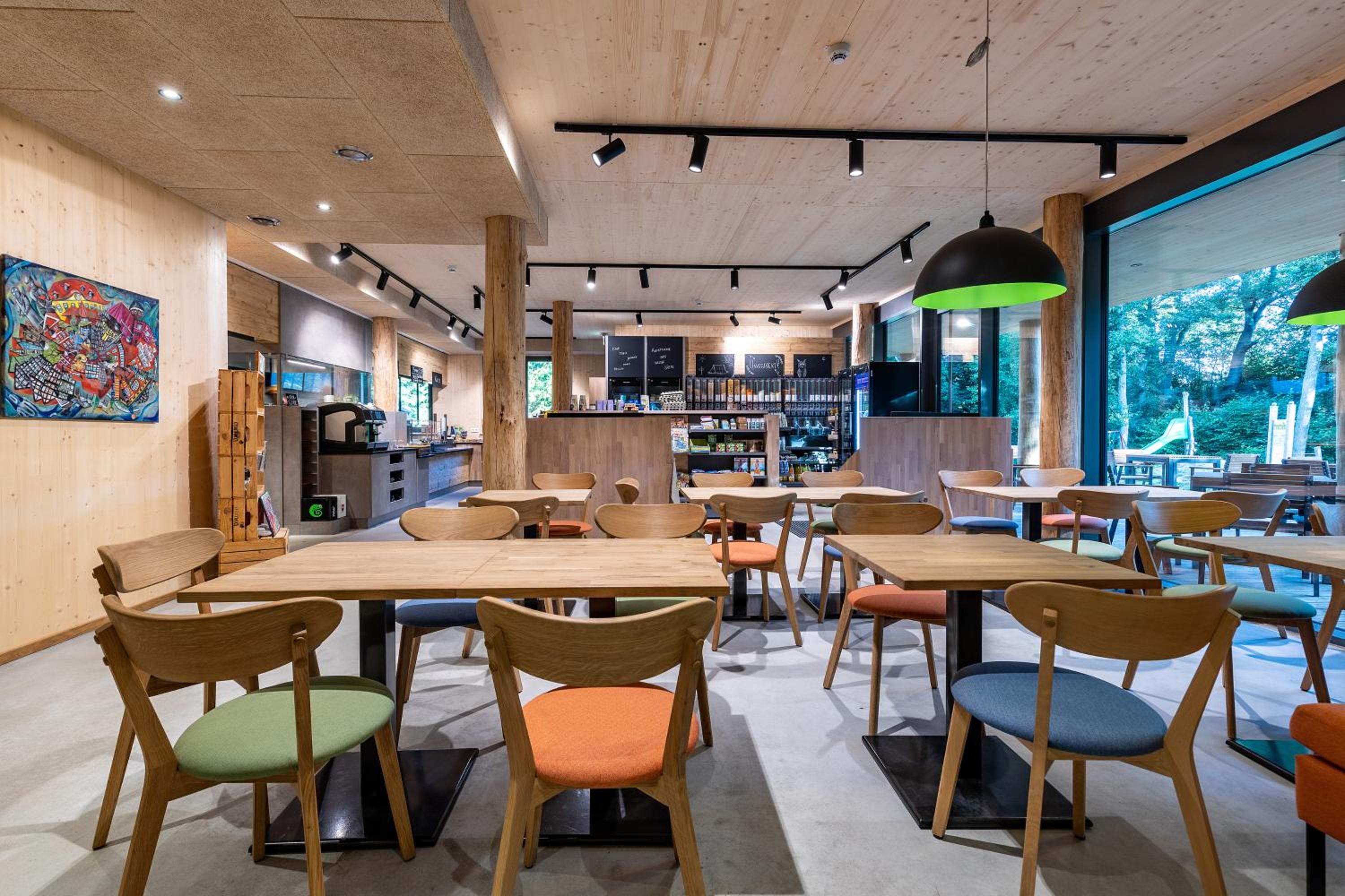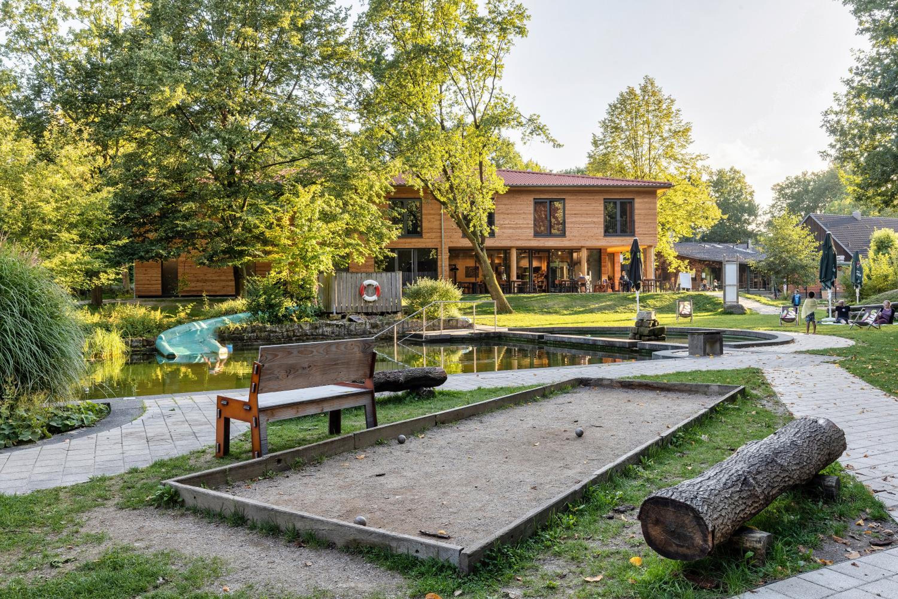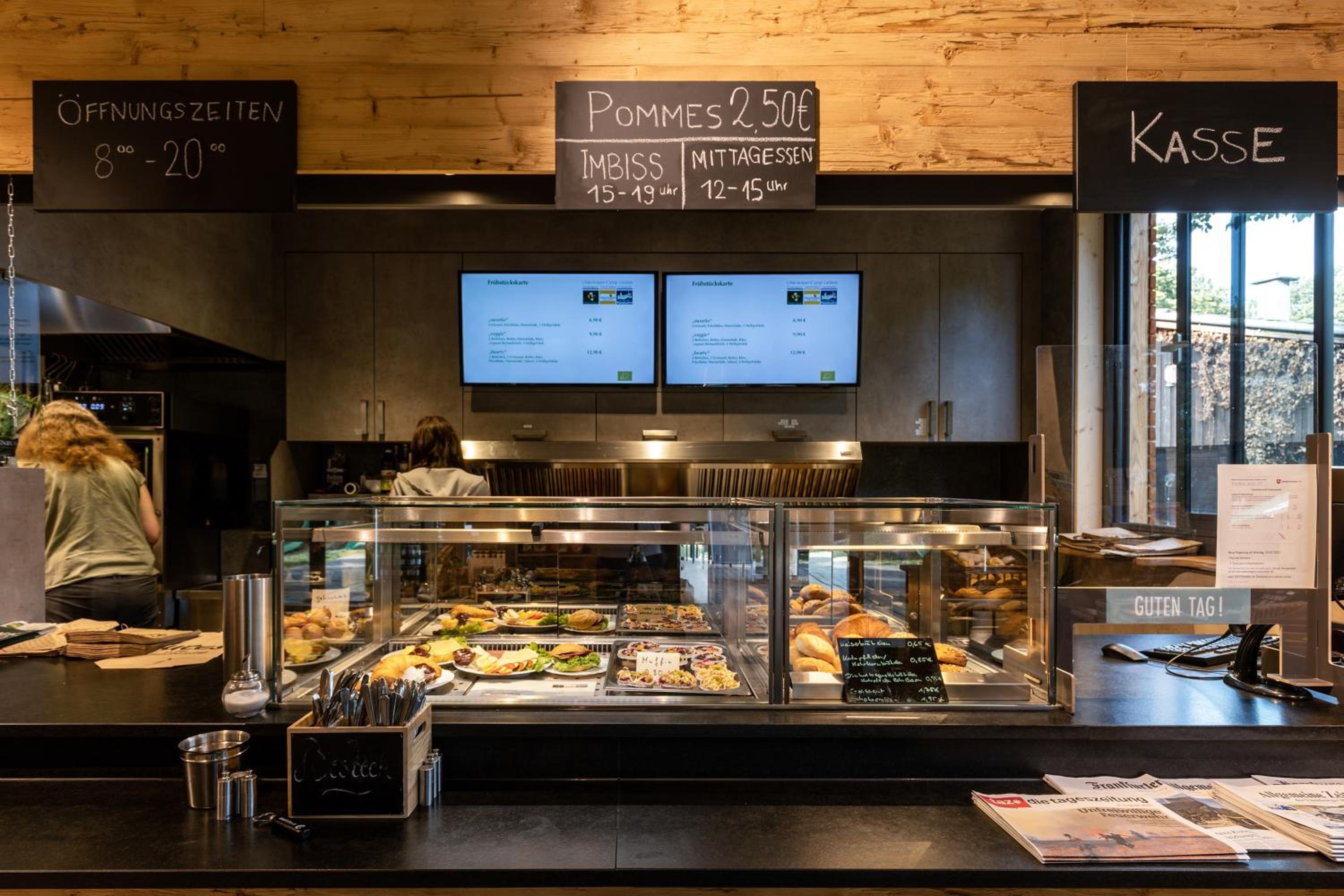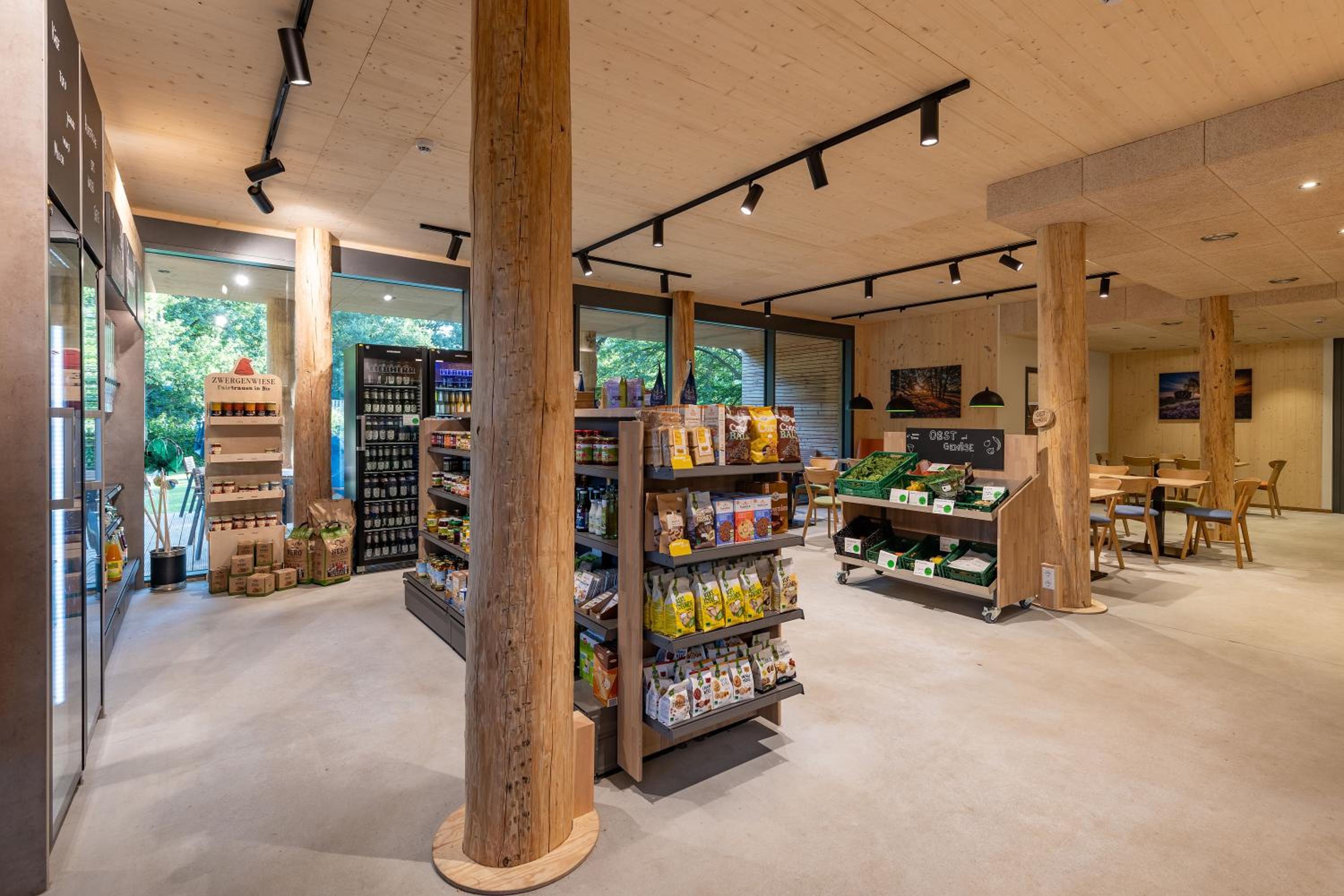 Der Sitzbereich im Imbiss befindet sich direkt neben den Regalen des Bioladens und ist gleichzeitig auch Spielecke. Man kommt sich vor wie in einer Jugendherberge. Der Preis von 97 € für ein Zimmer inklusive Frühstück ist nicht akzeptabel. Das Personal macht einen freundlichen aber leicht überforderten Eindruck. Da sich das Gelände am Dorfrand befindet, gibt es auch keine Möglichkeit Einkaufsmöglichkeiten oder andere gastronomische Einrichtungen zu Fuß zu erreichen.