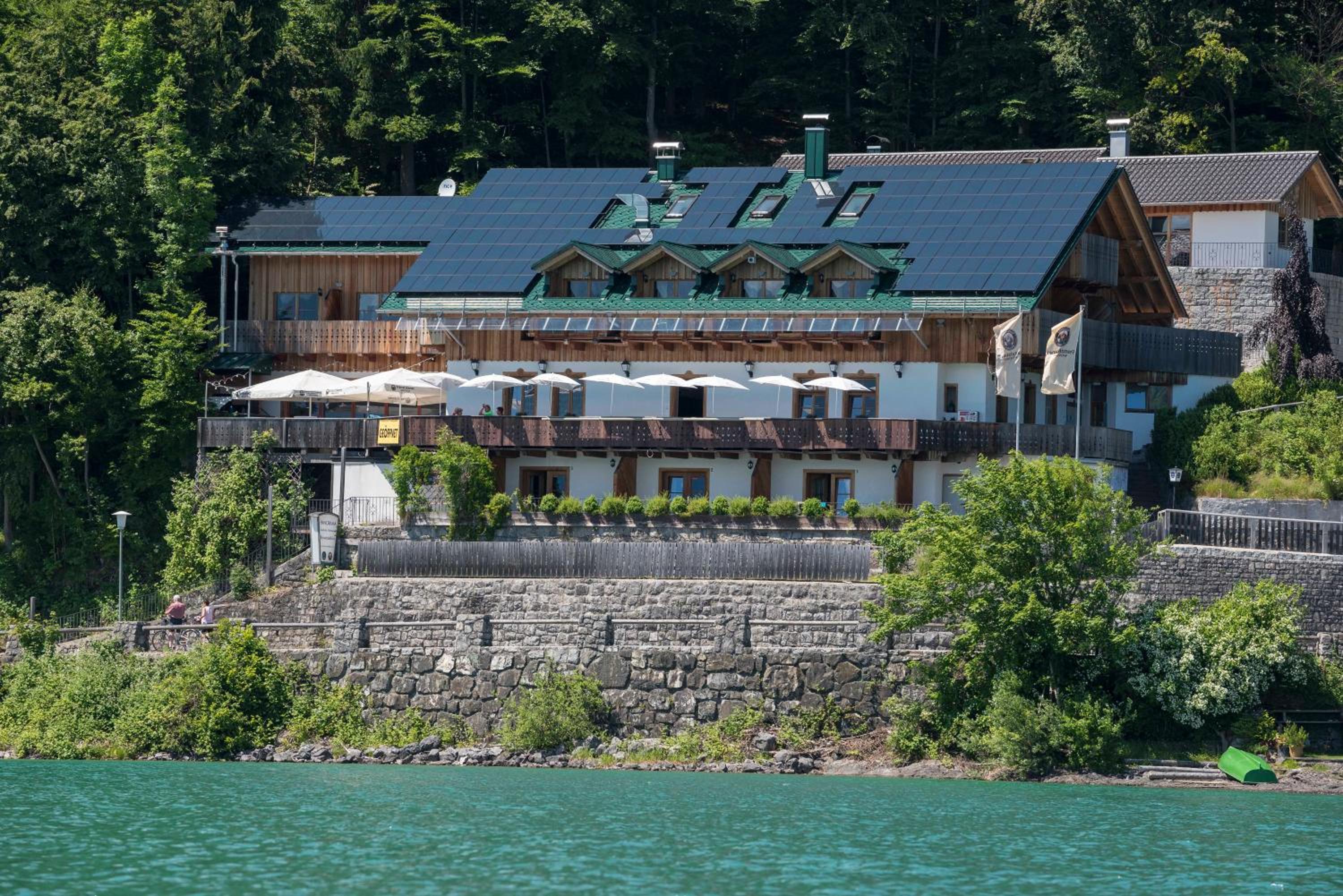 bei schönem Wetter lädt die große sonnige Terrasse mit herrlichem Blick direkt auf den See zum verweilen ein