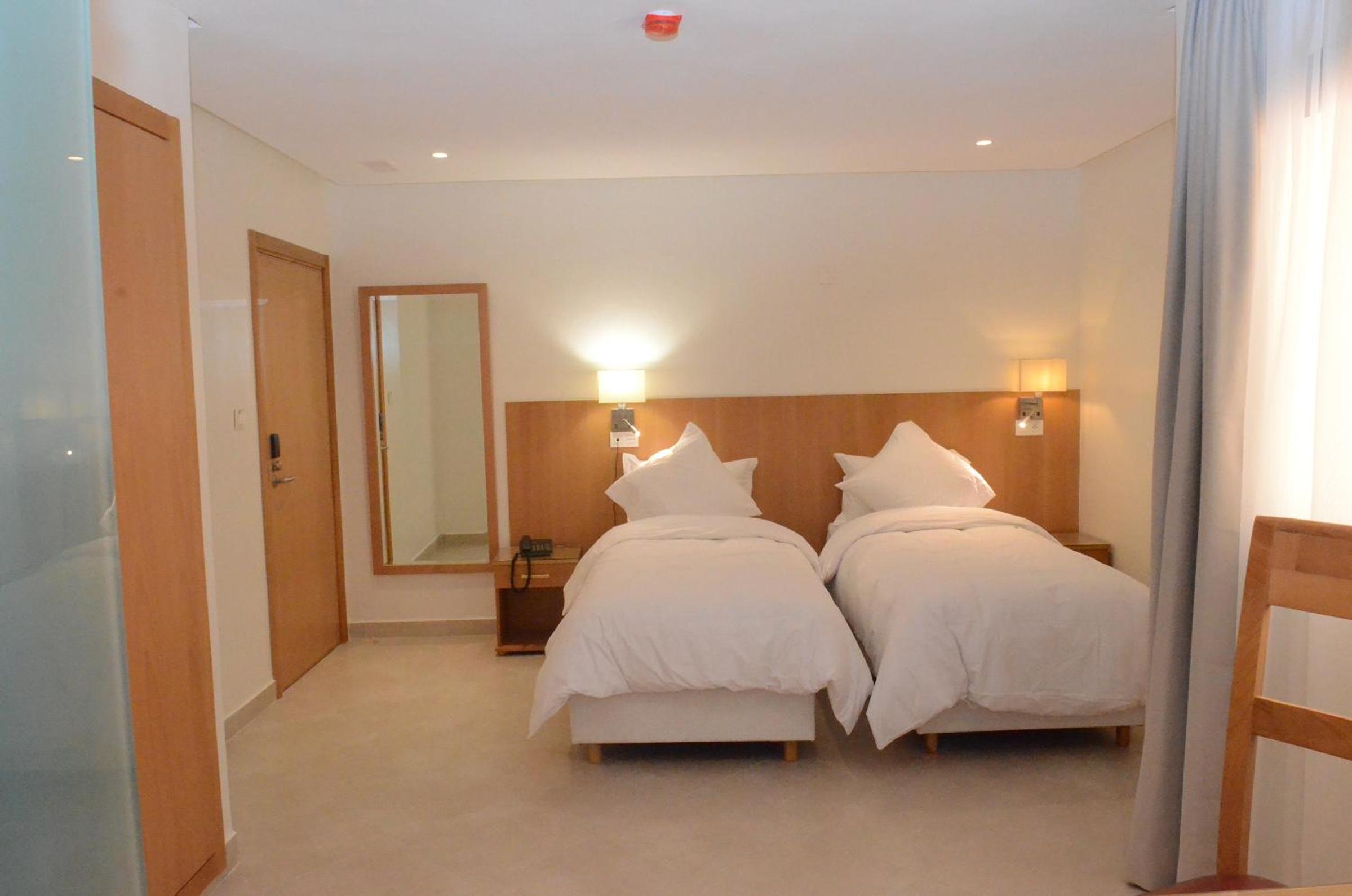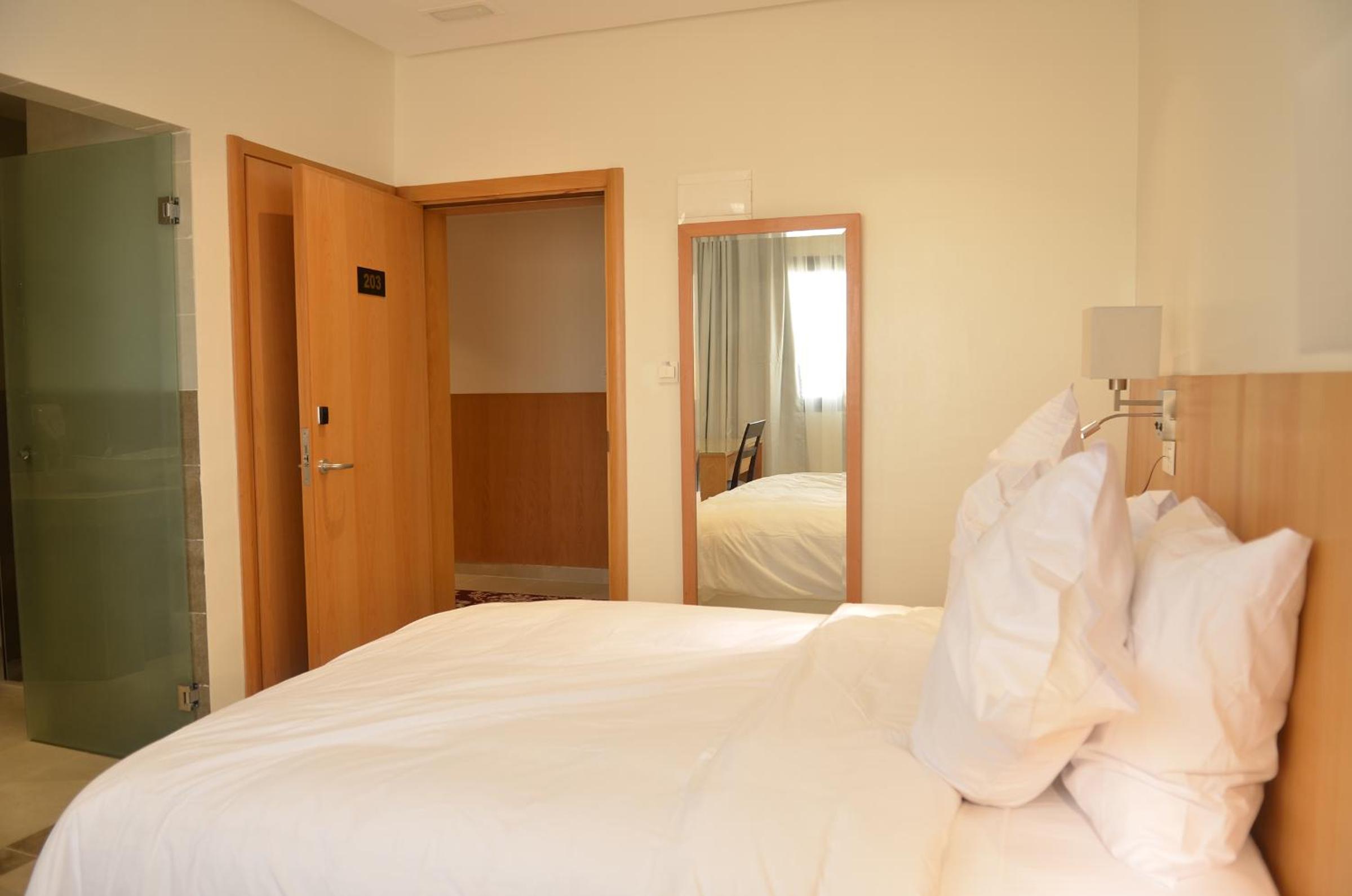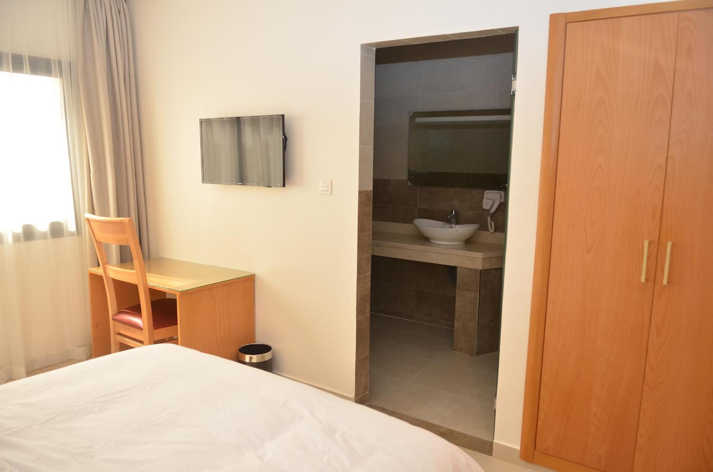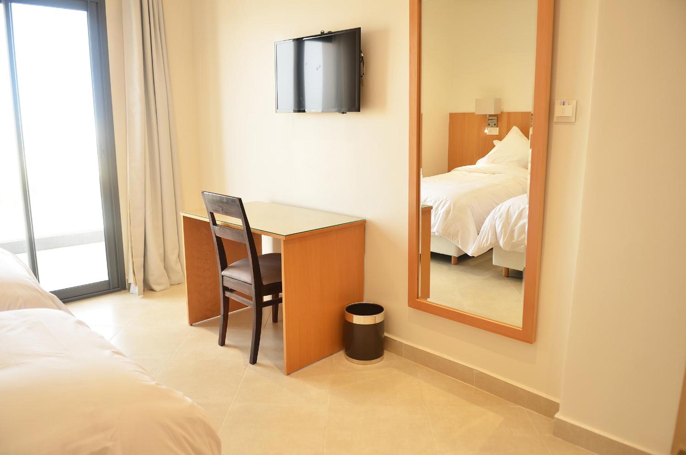 Comfortable Rooms: Each room is equipped with a wardrobe, desk, and a flat-screen TV for your entertainment. Select units also feature a private balcony for a touch of outdoor relaxation.