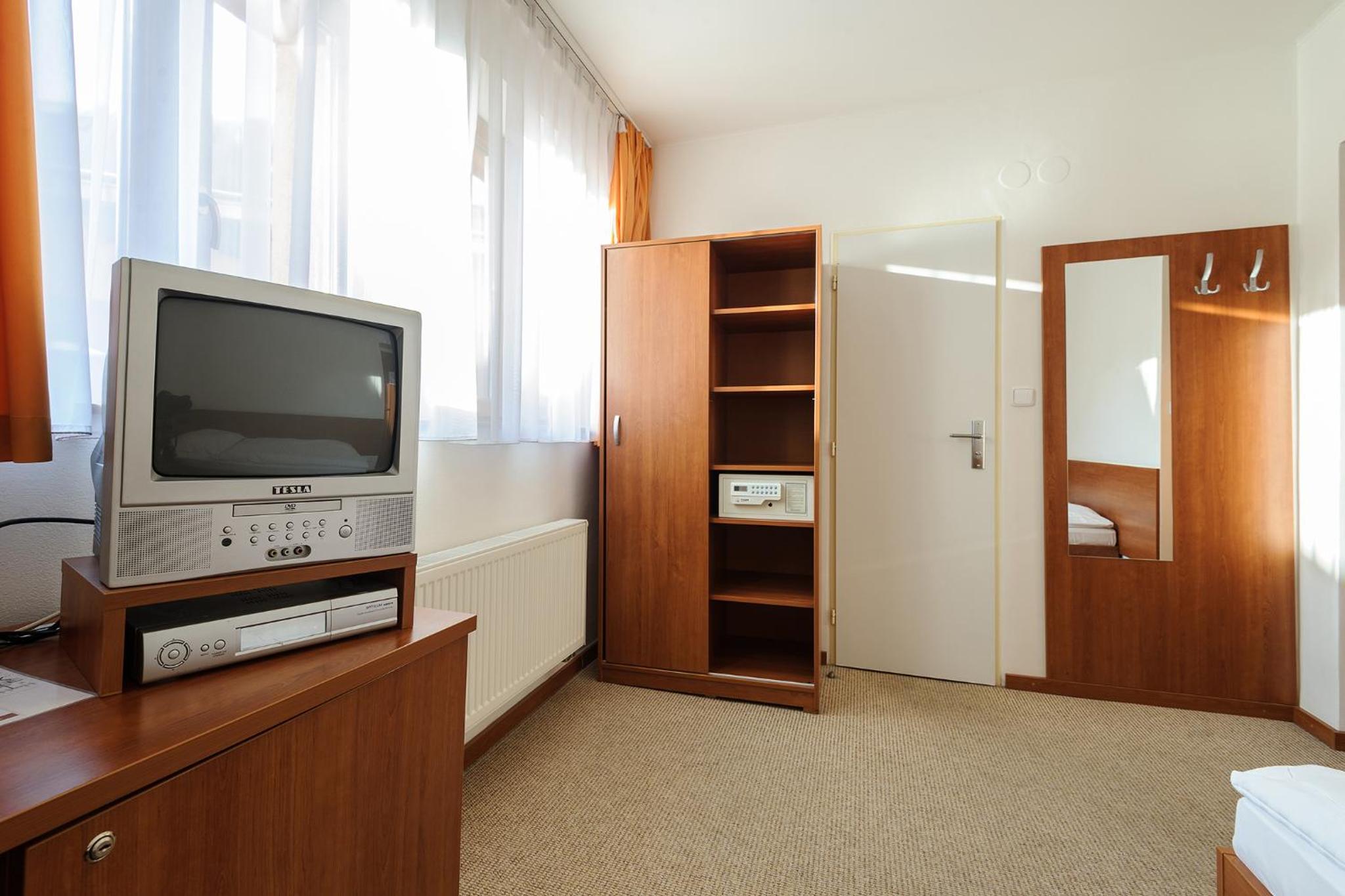 Price is budget friendly, room was nice an clean, there is a tram line next to the hotel but it wasn't too loud, you could barely hear it. I recommend the breakfast option unless you are a picky eater, it is pretty simple with not much to choose from but it is more than worth what you pay for it, 8€ doesn't really get you much in Prague and with that here you get a pretty decent breakfast. Hotel offers you drinks to buy at the location and some other stuff, they sell toothbrush and paste if you forgot to pack your own. Have monitored parking 24/7 for 8€ a night which was a big + for us. All in all, we recommend this hotel, tram lines are 2 mins walk and then 5 minute ride gets you to any place you wish to visit cause Alexis is pretty much located in the middle.