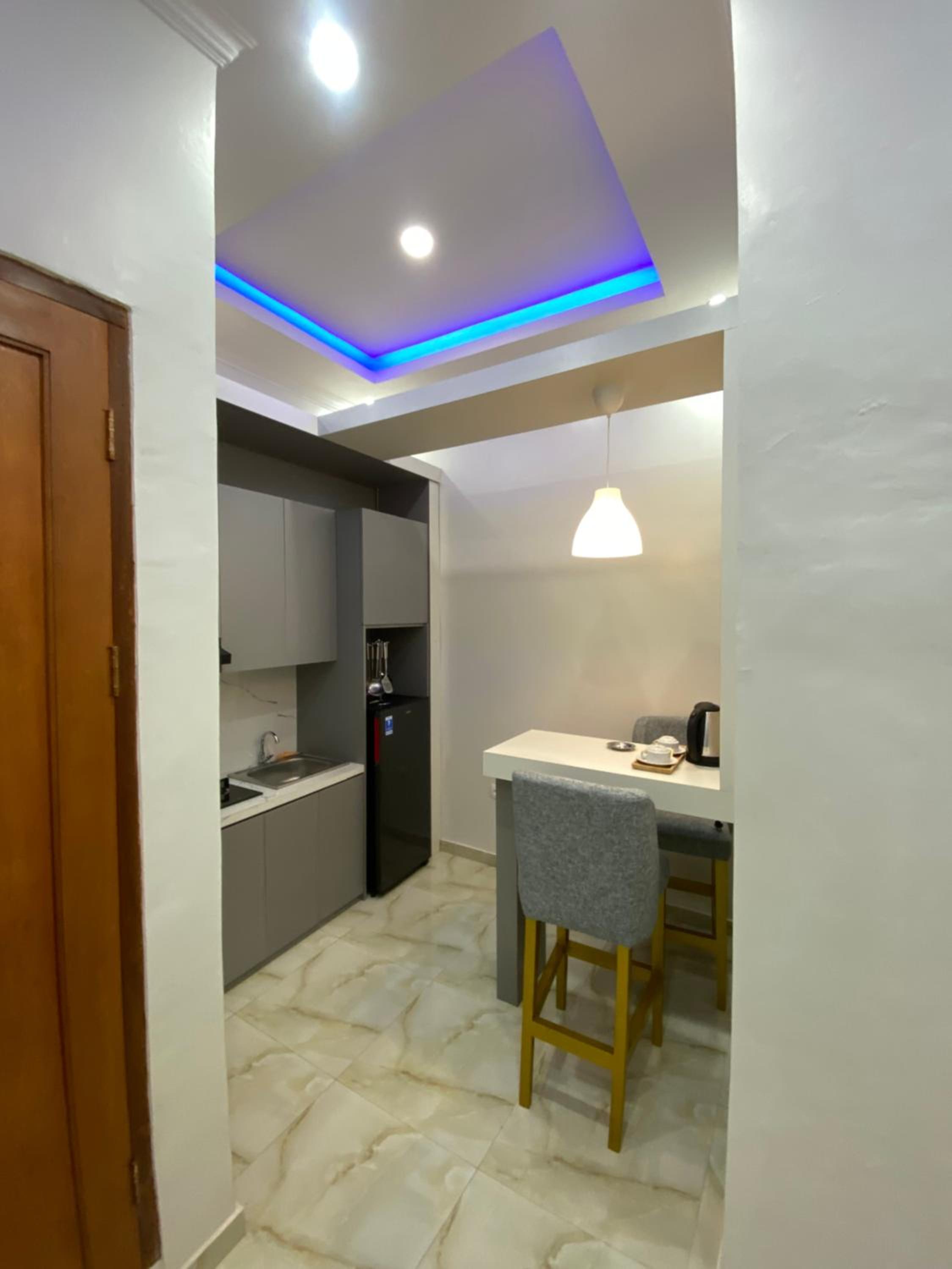 Location ( very close to the main street) ending up with continuous traffic noise which makes it hard to sleep well or enough . Items that were not ready prior to arrival such as gas bottle not connected to stove, bathroom door lock out of order, unavailability of an iron, cleanliness level of the kitchen , faucets not fixed in place…etc.