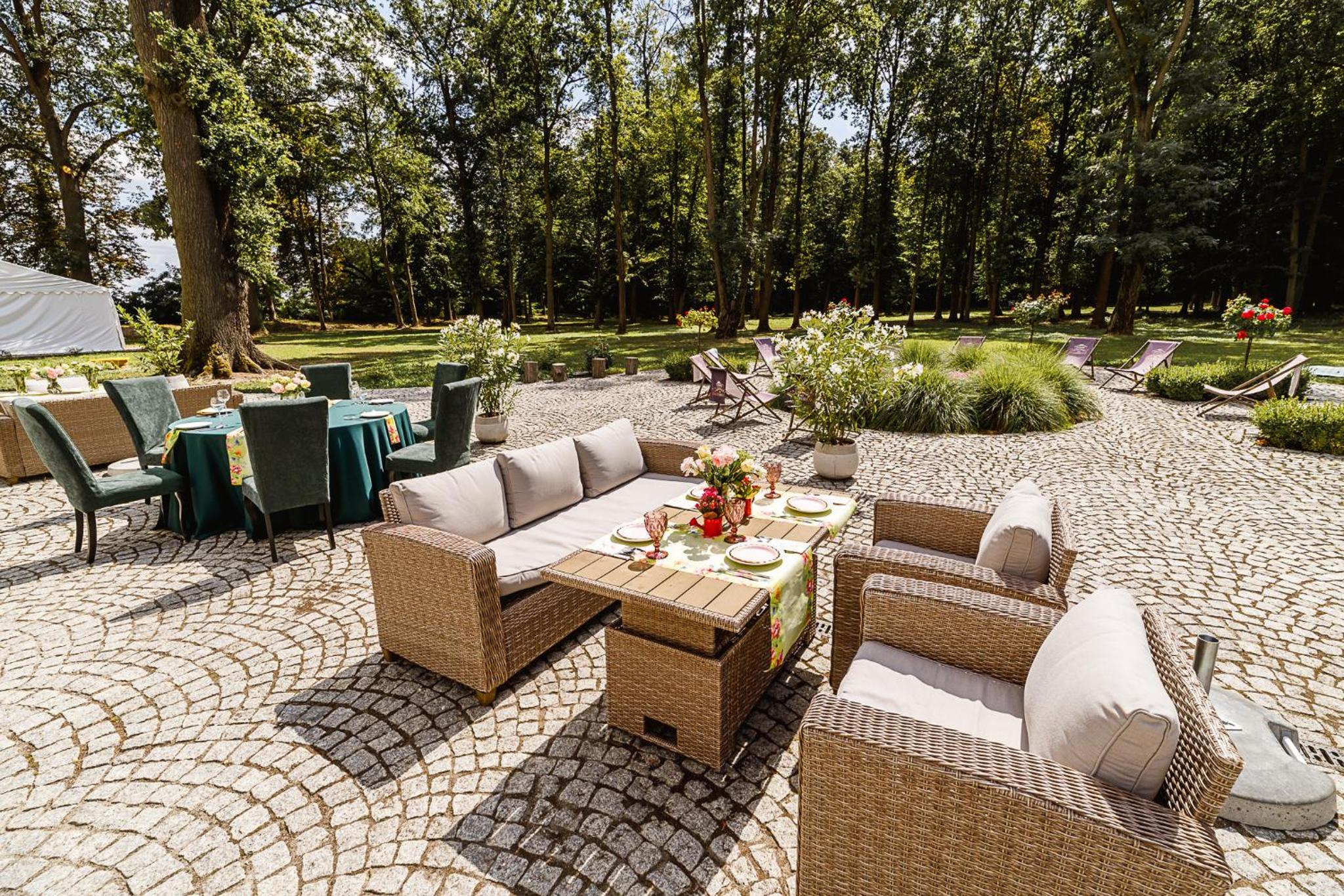 Garden Oasis: PALAC DABROWKA boasts a lush garden and inviting terrace, perfect for relaxation and unwinding.