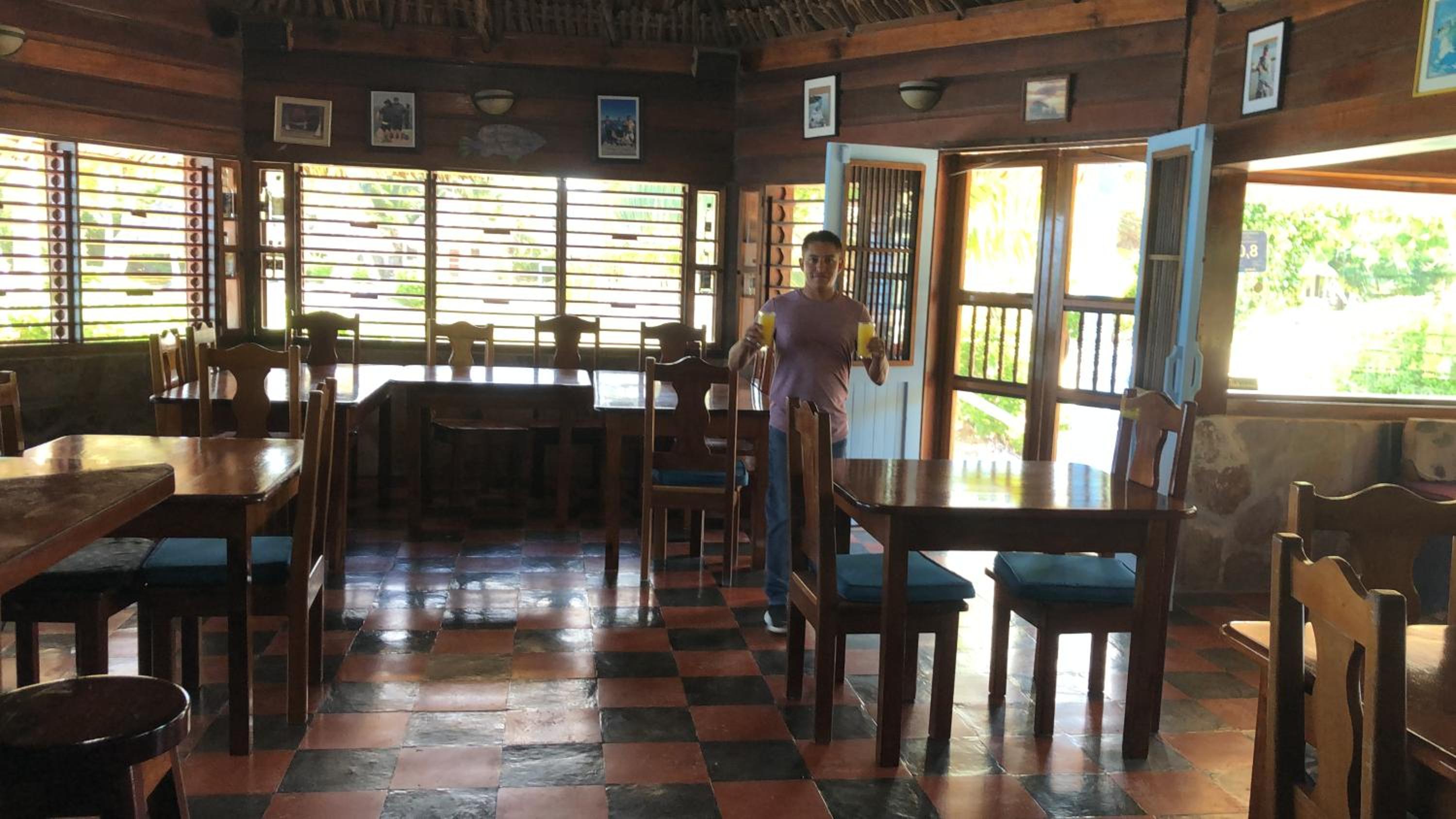 The resort consists of spacious cottages right by the sea. Shallow water, at the end of the dilapidated jetty just deep enough to swim and snorkel. spacious cottages, unfortunately only cold water. Restaurant fine, breakfast choice somewhat limited and monotonous (some melon/papaya and pancakes with syrup. In itself all ok, but everything needs an upgrade to make it attractive. approx. 25 min walk to the village. There is no bank or gas station. However, you can get a few liters of gasoline at some shops in case of emergency. we booked an expensive snorkeling tour through the hotel, but seeing various rays and two manatees made the stay unforgettable. Personnel very helpfull for a lot.