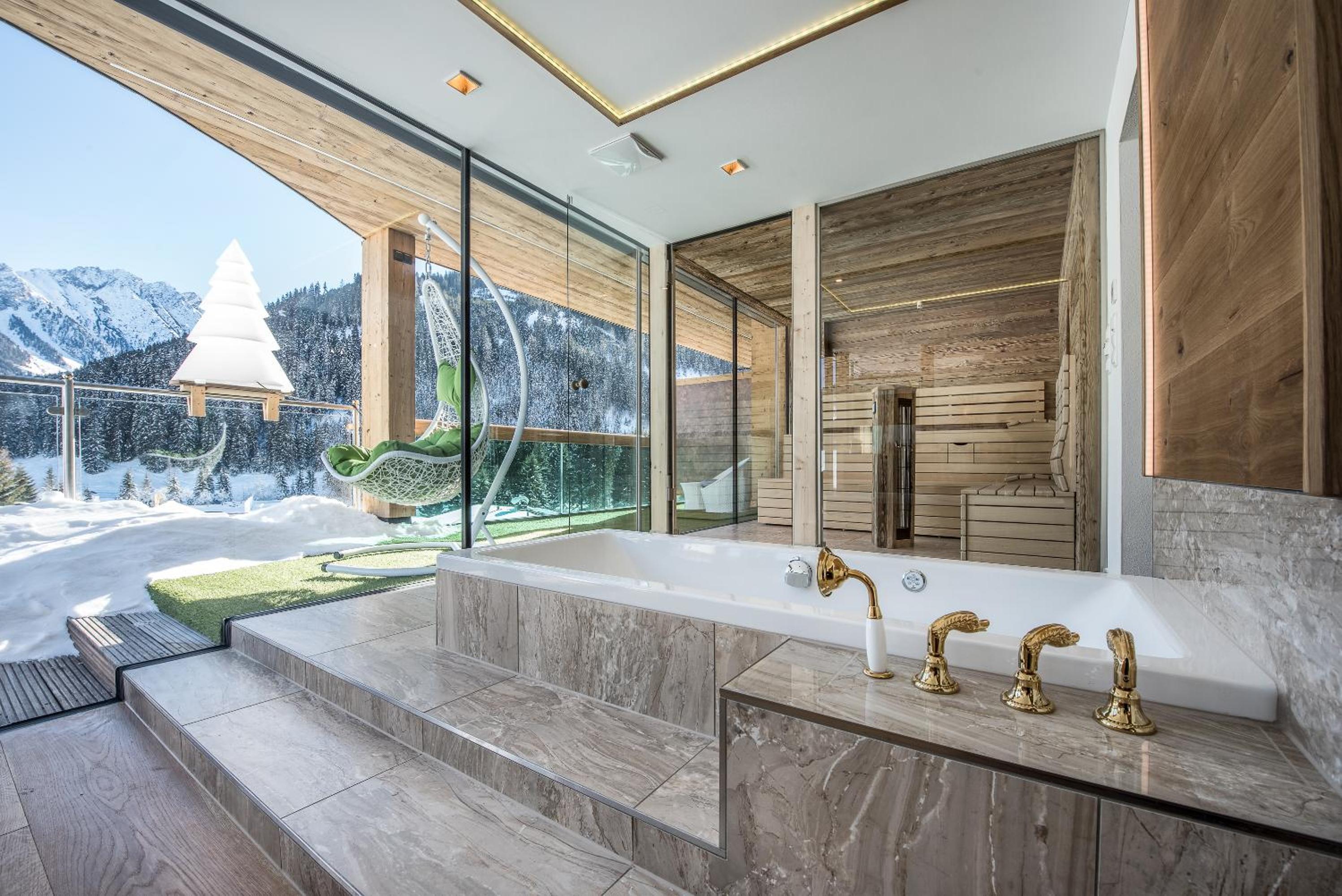 Indulge in relaxation at the Schönruh’s spa area, boasting 7 saunas, a panoramic indoor pool with mountain vistas, and a range of massages and beauty treatments to rejuvenate your body and mind.