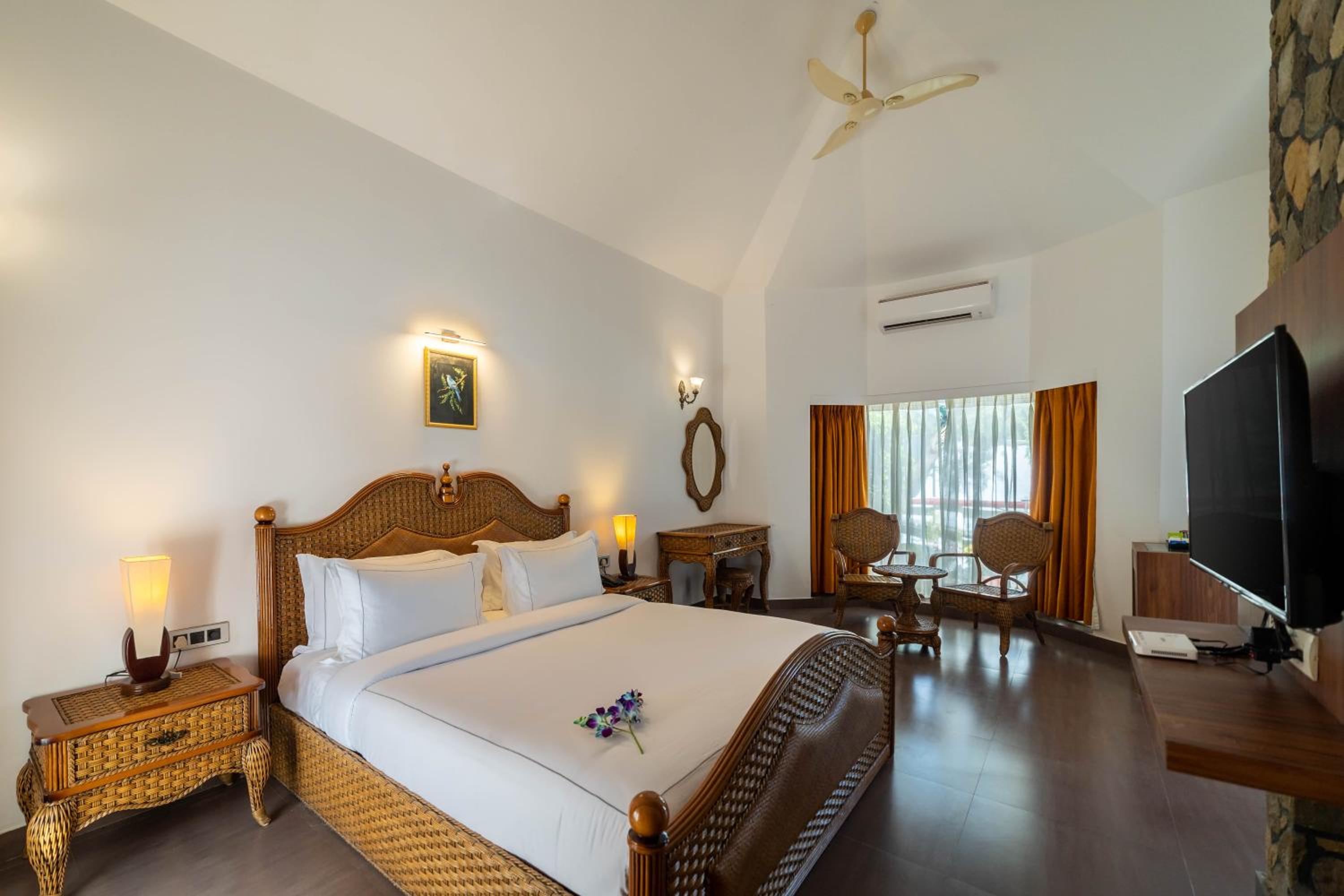 Country Inn Tarika Riverside Resort Jim Corbett, located in Garjia, offers a luxurious 4-star experience with an outdoor swimming pool, a garden, and a restaurant. Each room is elegantly furnished with a desk, flat-screen TV, air conditioning, and some even feature a terrace for stunning views.