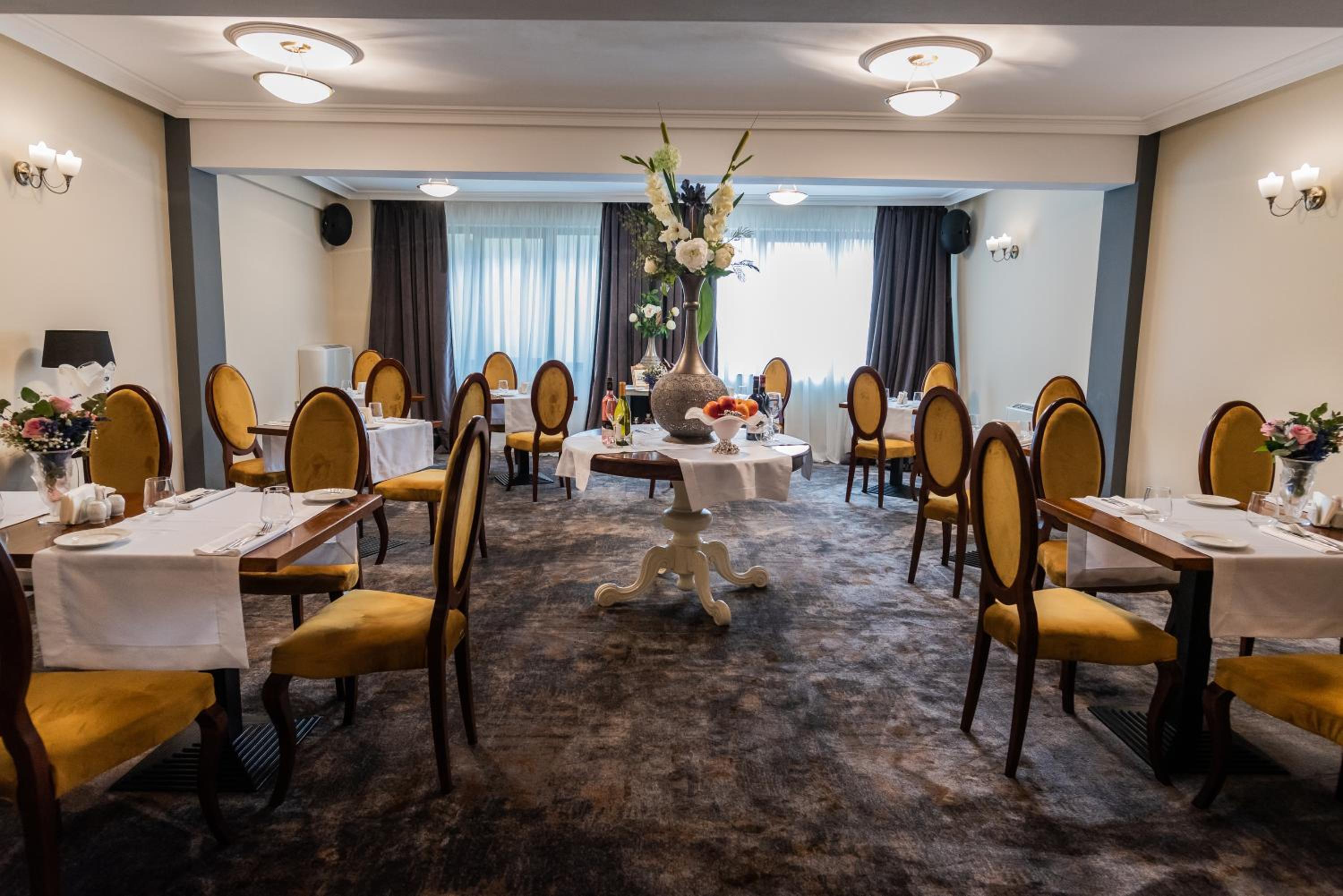 Satisfy your taste buds at our on-site restaurant offering a delectable fusion of Romanian and international cuisine. Craving a late-night snack? Visit our 24-hour café for a quick bite whenever hunger strikes.