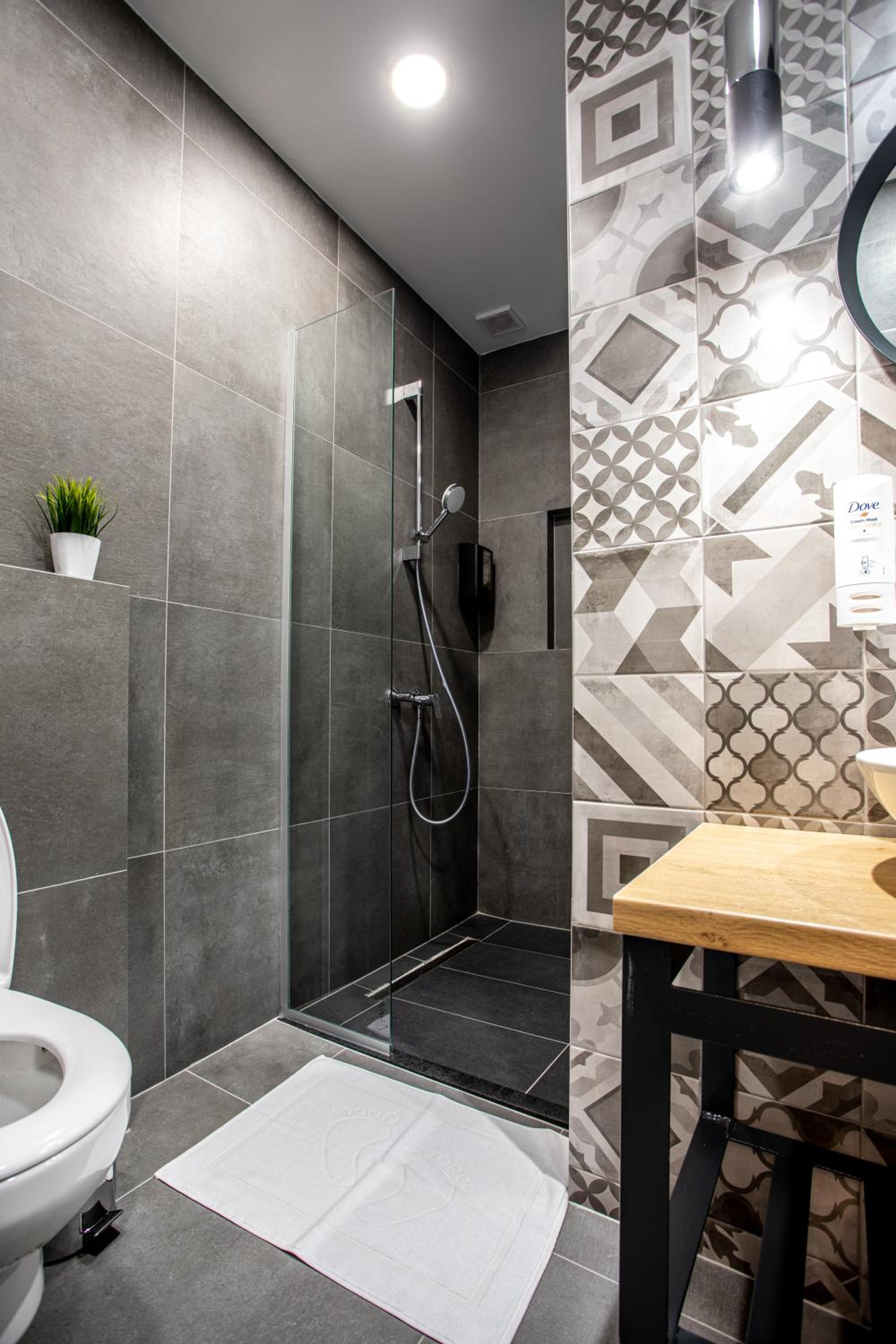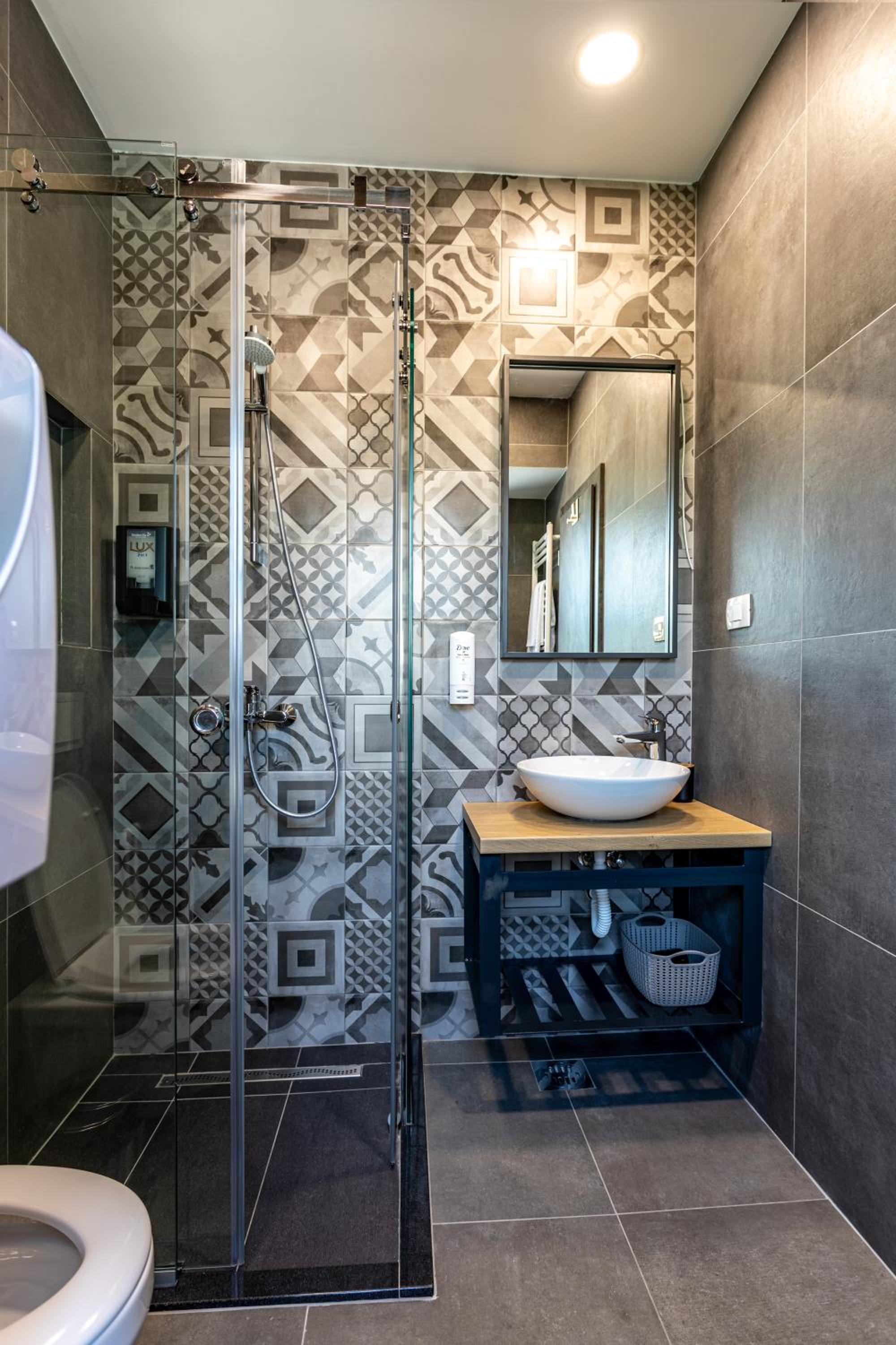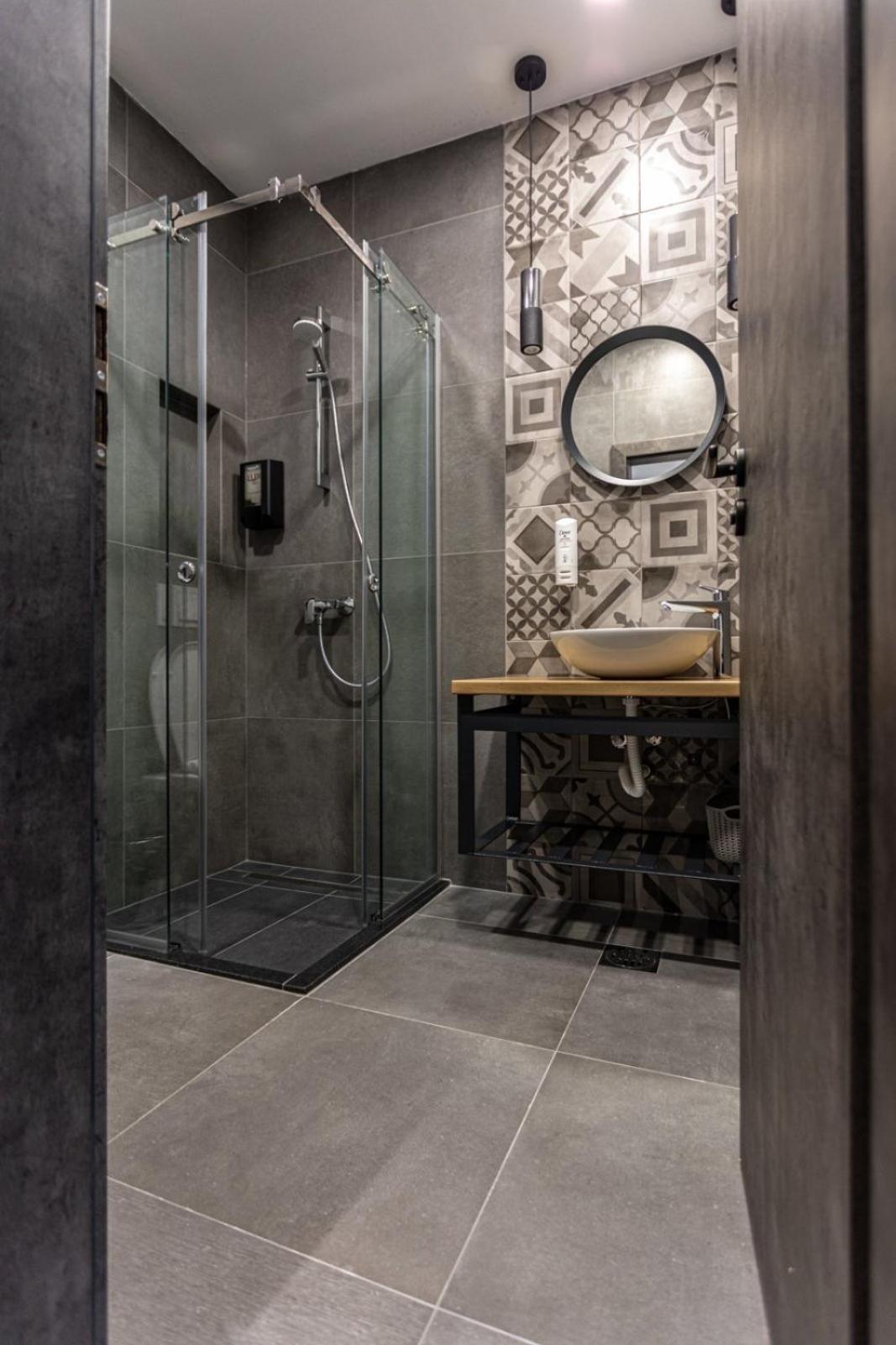 Nos gusto que el baño estaba limpio, con alcachofa de filtro y tenia toallero caliente. La cama era cómoda y grande.