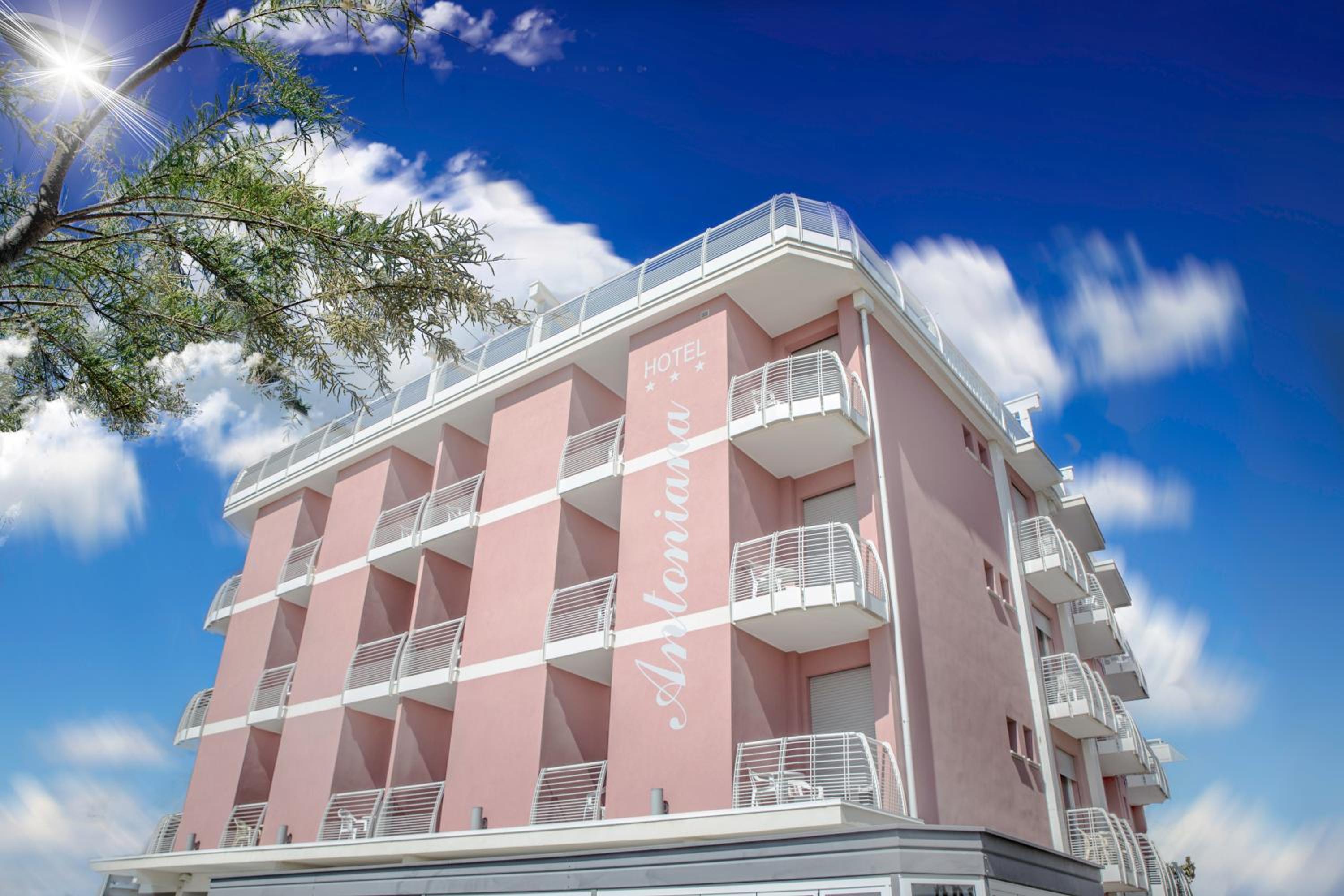 Hotel Antoniana in Caorle offers a prime seafront location with complimentary private parking and Wi-Fi. Enjoy exclusive access to a private beach, a gourmet restaurant, and a cozy patio for relaxation.