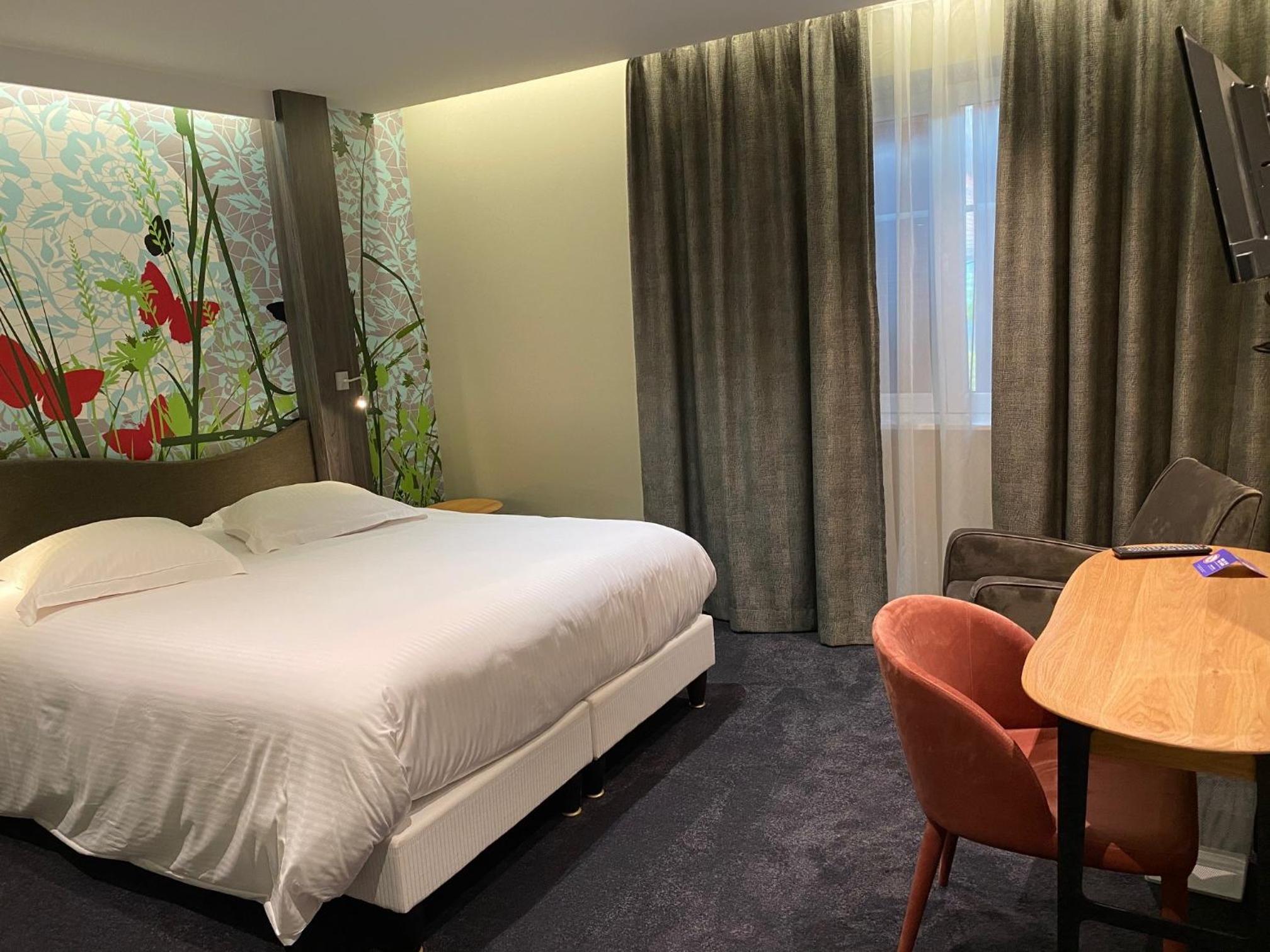 Es un hotel en un pueblecito cerca de Estrasburgo, pero que tiene una gran tranquilidad, el hotel estuvo muy bien y su comedor para la cena también. En verano tiene una piscina y se debe de estar muy bien en su terraza.
