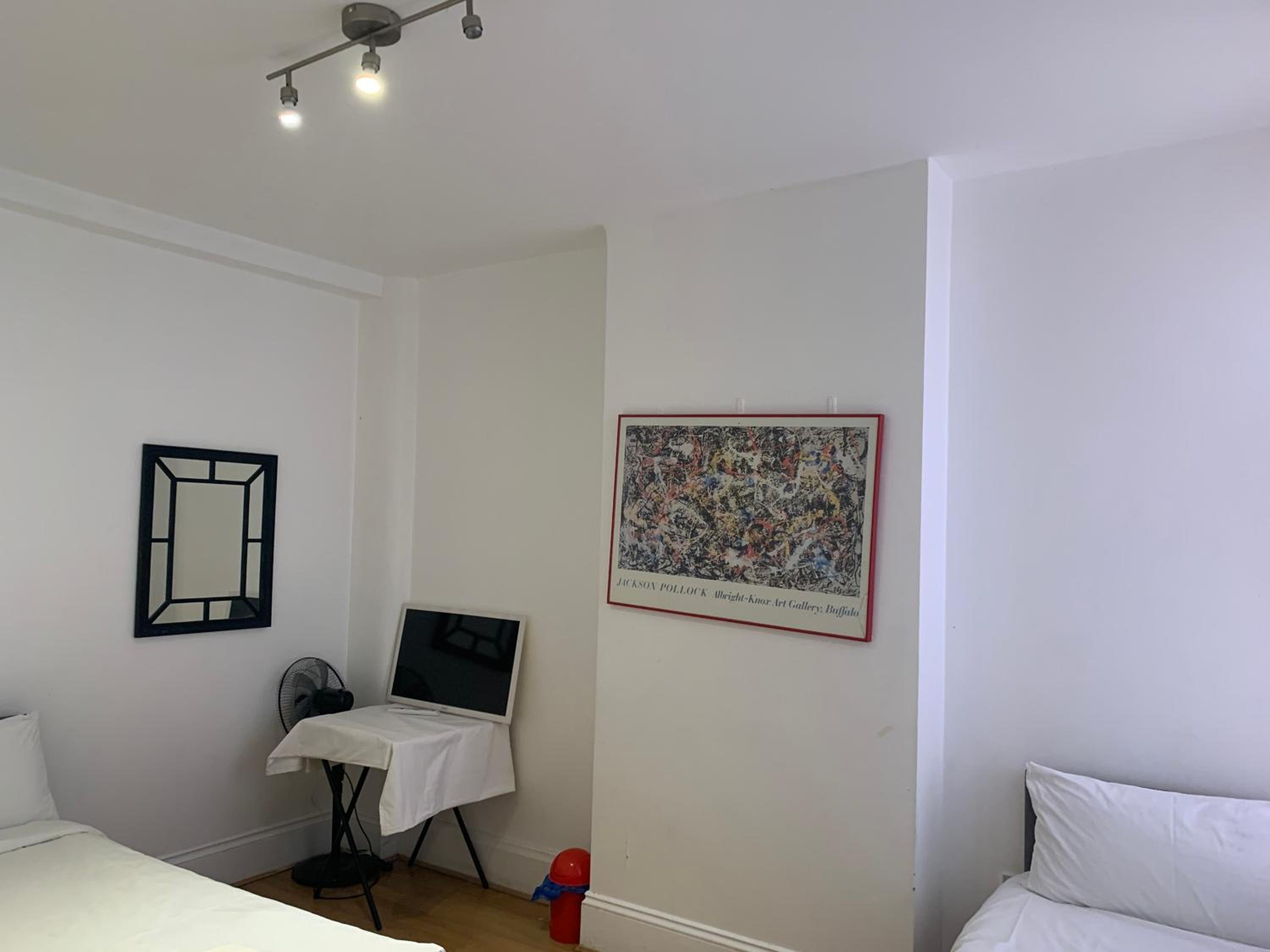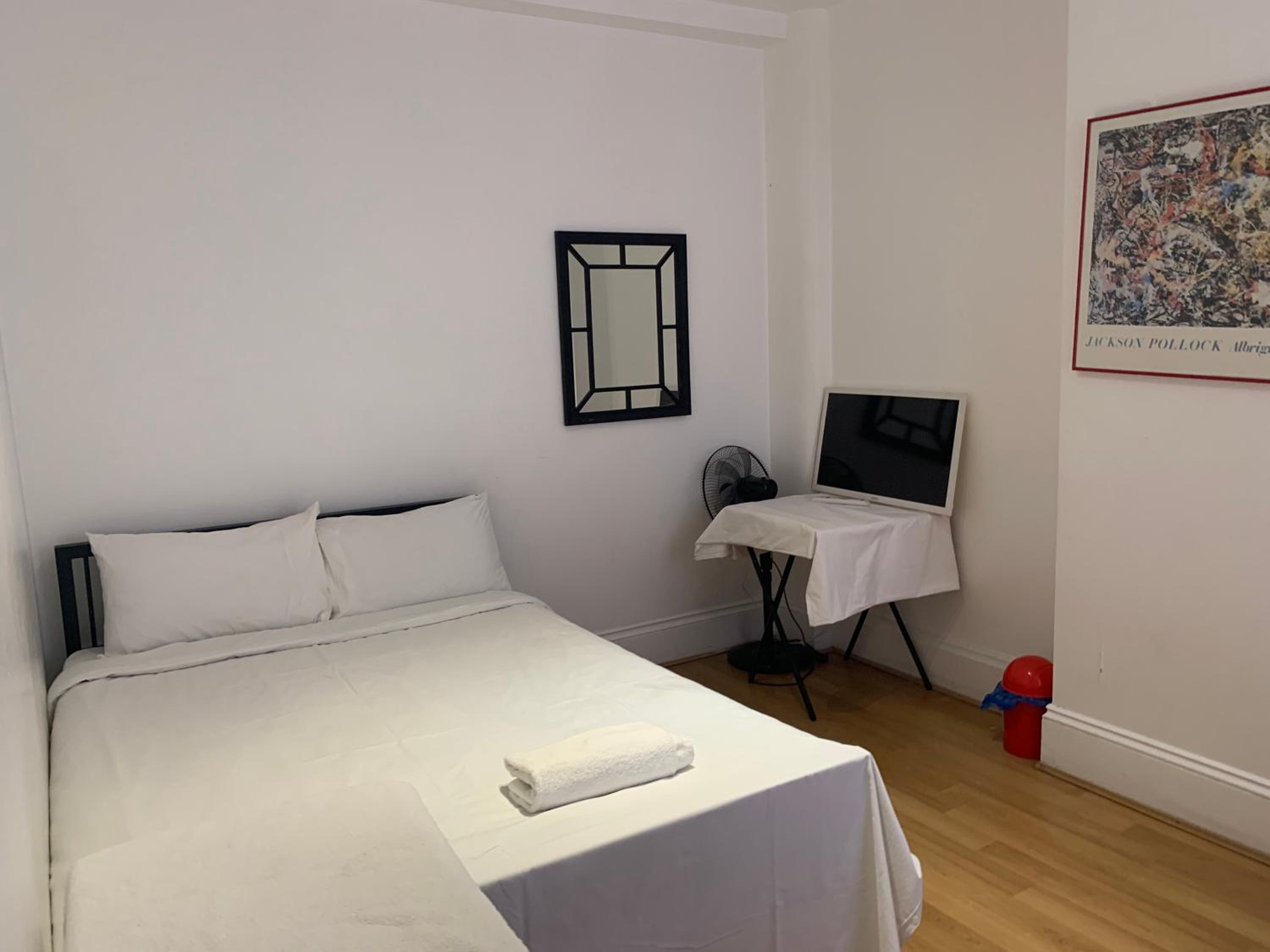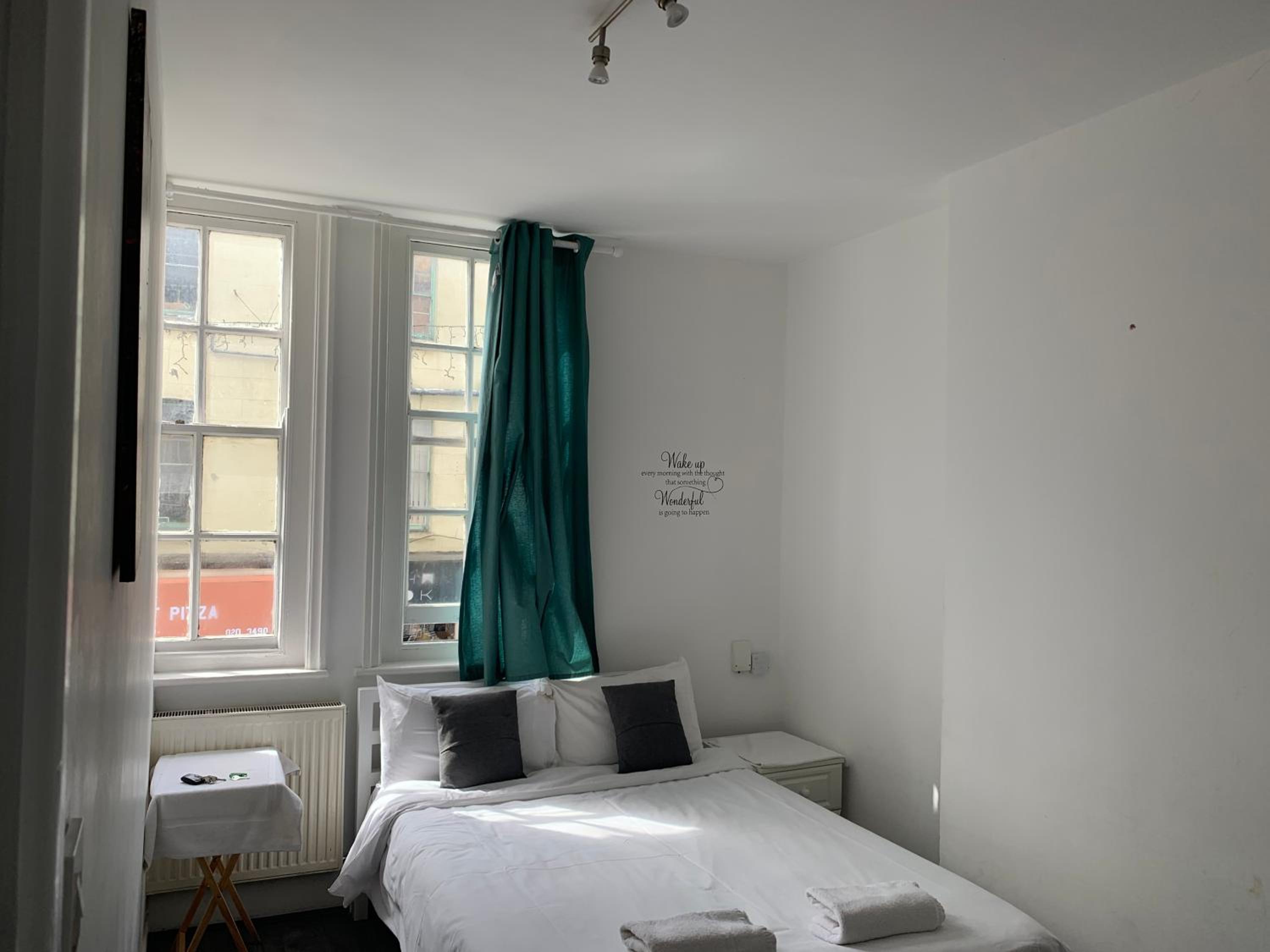 This is a very cheap room for central London so dont set you expectations too high or you will be disappointed . The room is a bit scruffy, the curtain hardly covers the window and lets on loads of light from the street signs outside. the fire alarm has been removed. Shared toilet was ok, maybe there was a shower but I never found it.
