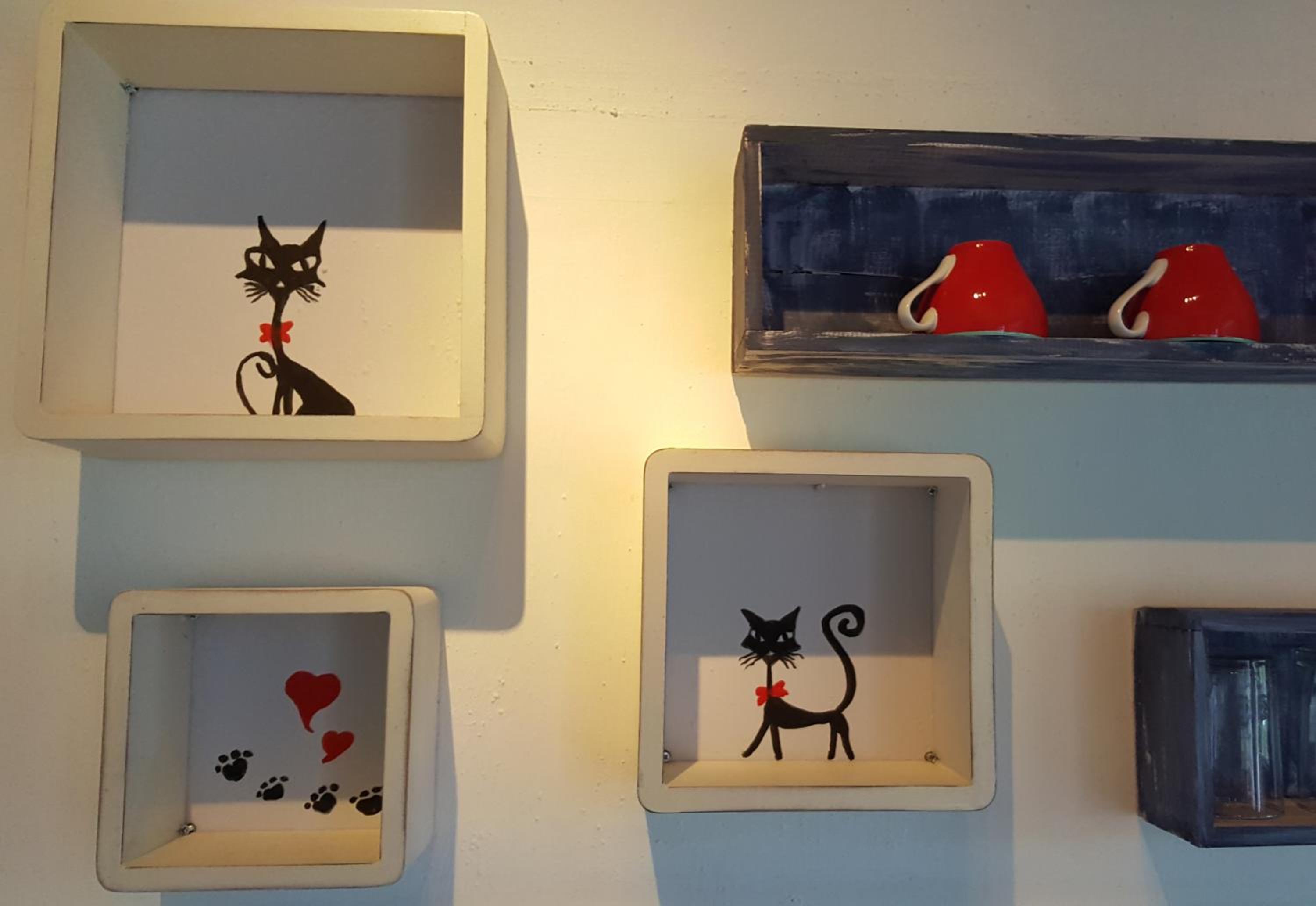 La decoración muy rosa, y dibujos de gatos.