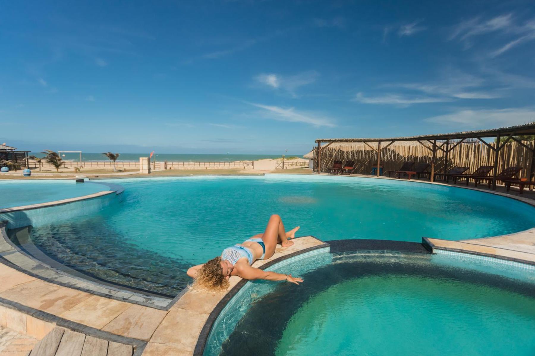 Piscina estava limpa e o bar da praia funcionando normalmente.