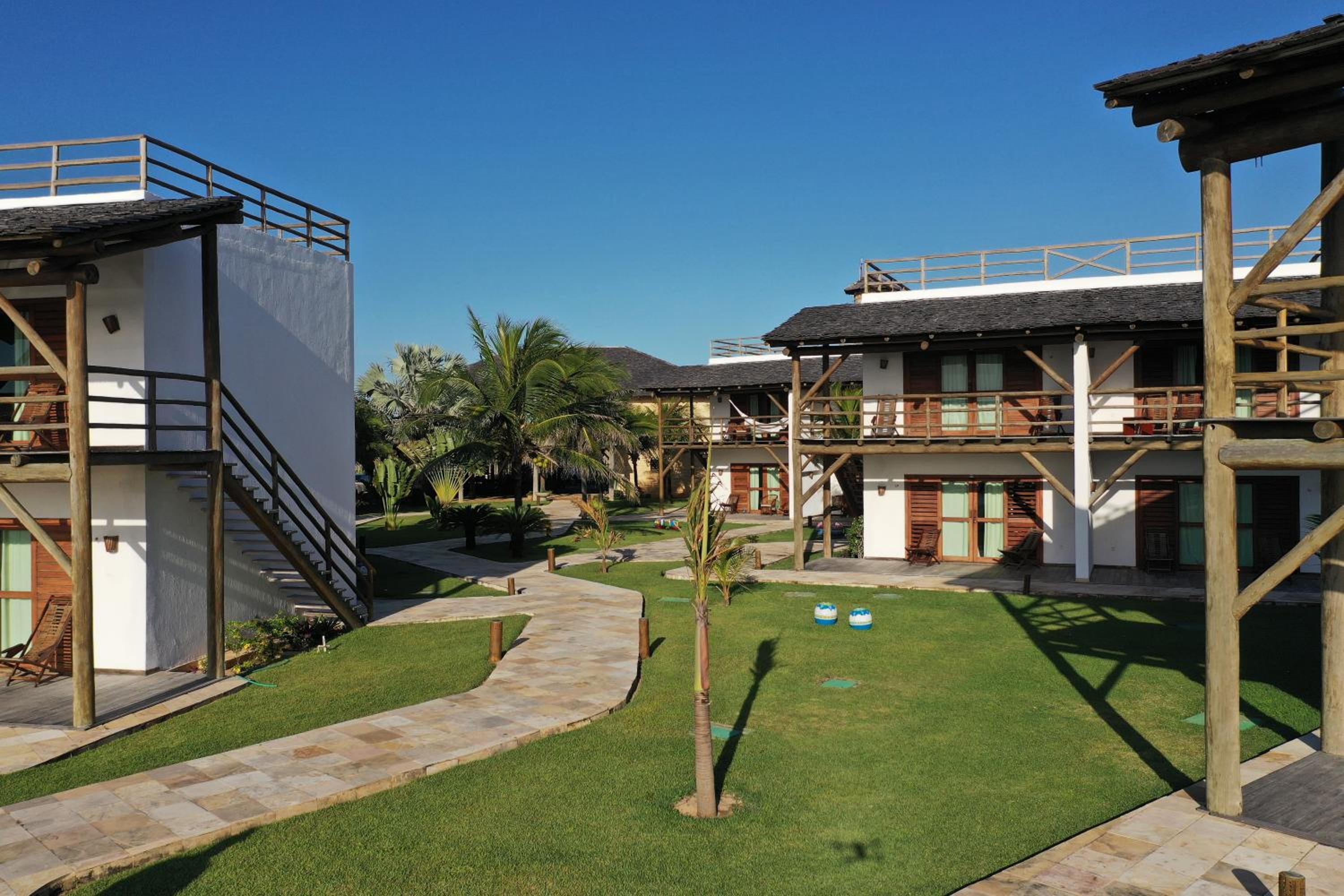 Ambiente interno do hotel bem limpo e bonito, com gramado perfeito. Muita paz durante a estadia. Quartos MUITO amplos e sempre com boa vista. Banheiro limpo.