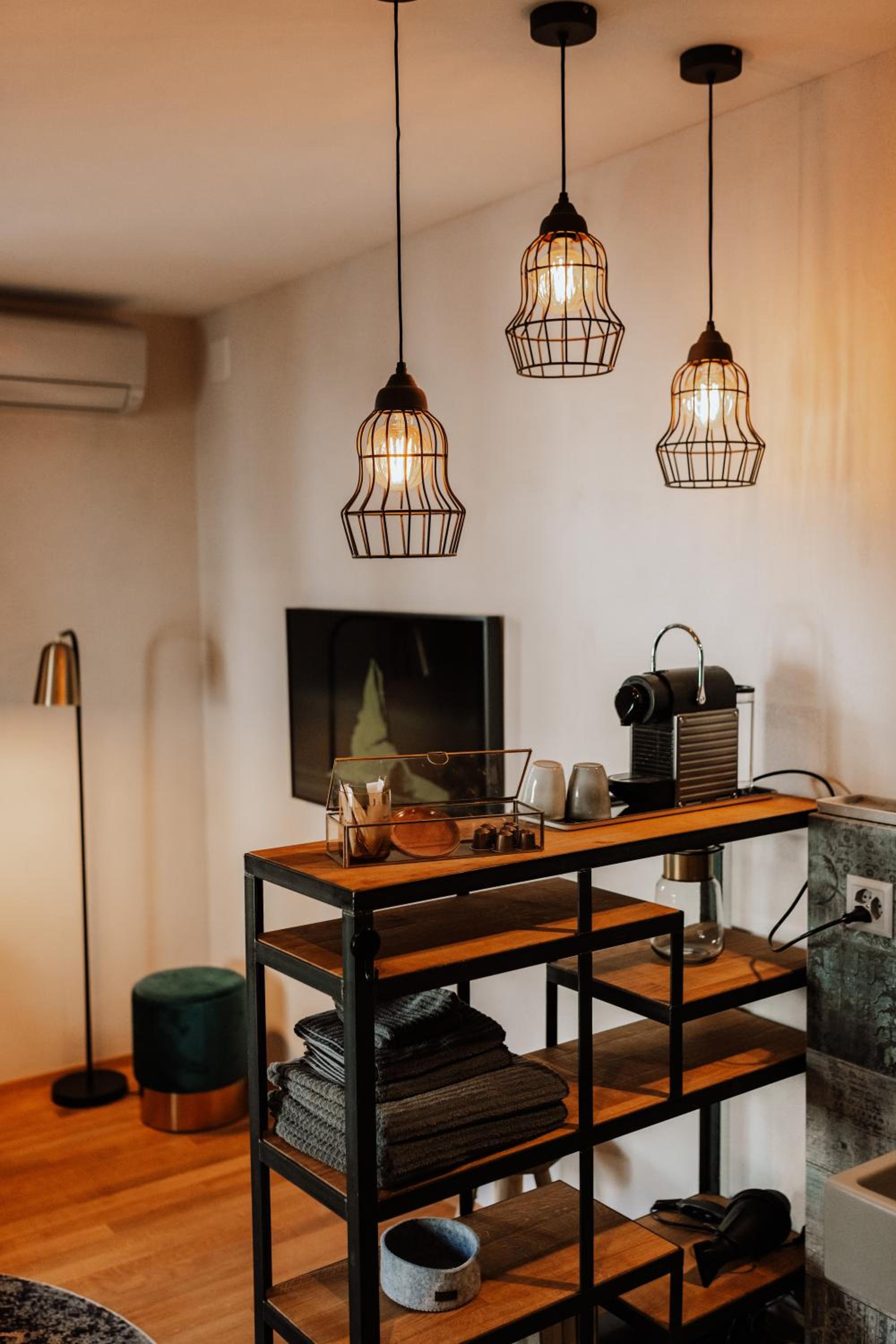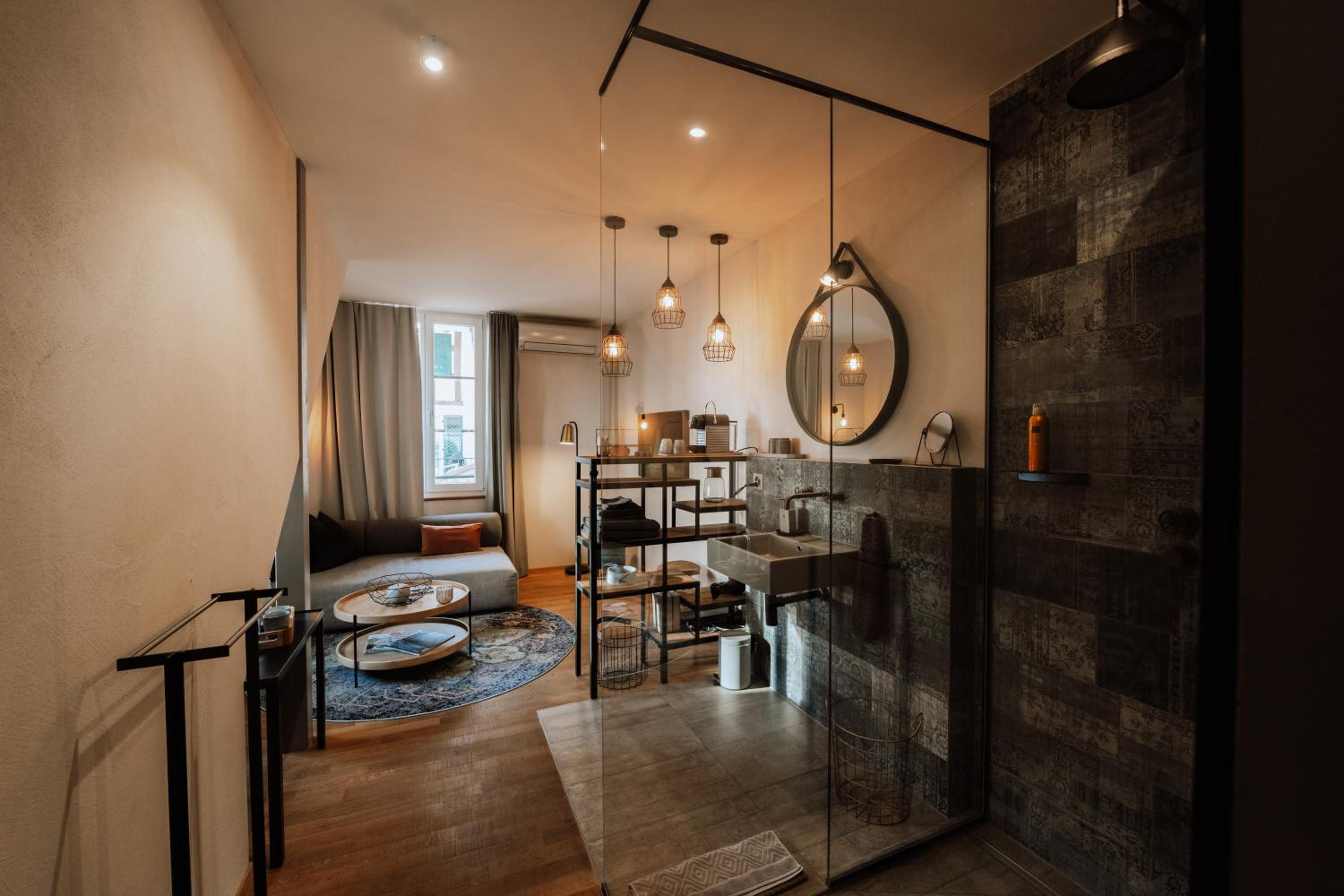 super Lage, athmosphärisch schöne, Stil- und liebevolle Einrichtung. Transparente Duschwände machen den Raum luftig! Gutes Frühstück im warmen Aufenthaltsraum und einen Milchschäumer für den Capuccino 👍☀️!