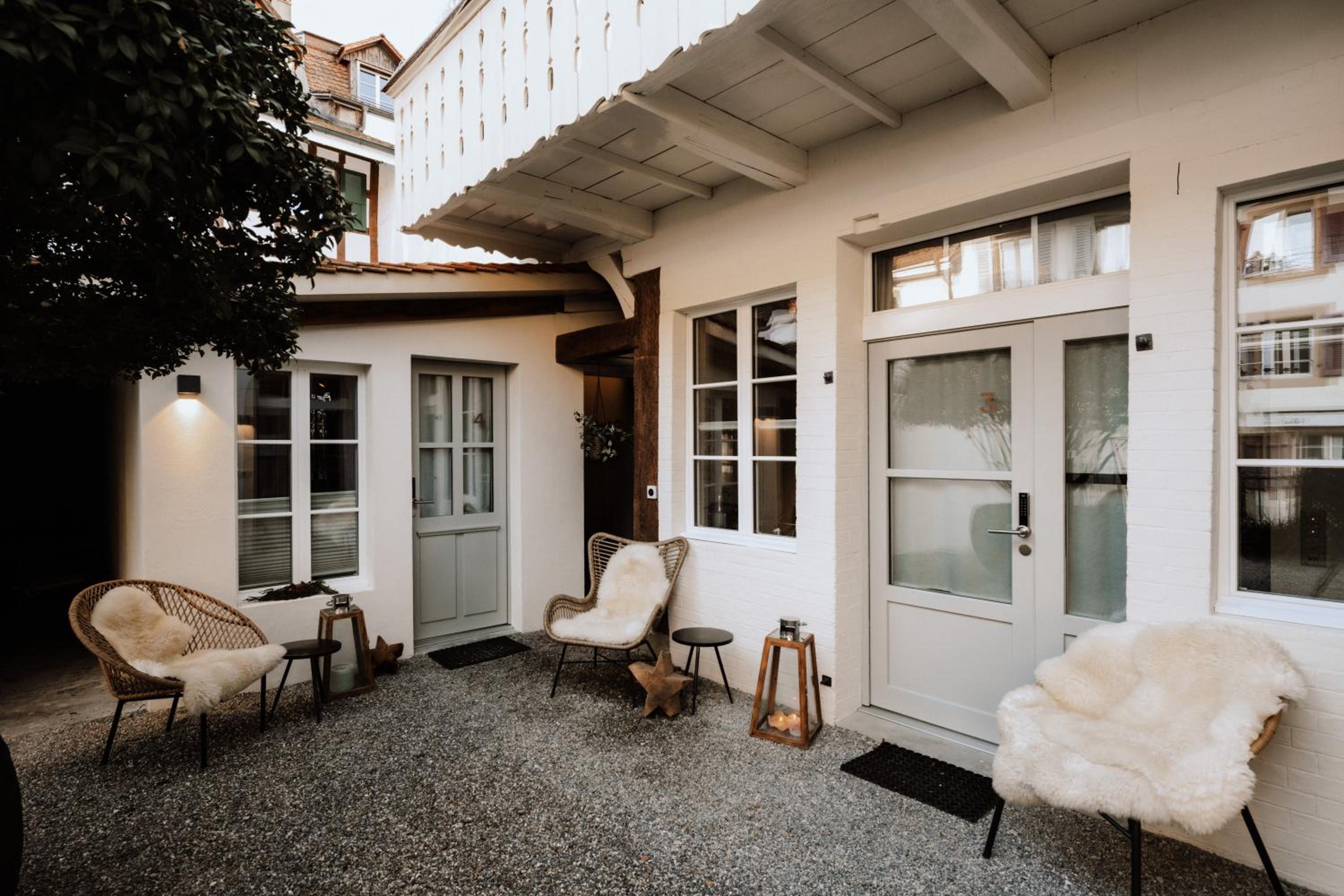 J’ai beaucoup apprécié l’énorme chambre « loft » sous les toits. La décoration a été faite avec beaucoup de goût et j’aime le design de cette chambre. Le petit déjeuner était abondant et excellent. Je suis venue en hiver mais le petit jardin doit être sympathique lors des beaux jours. L’emplacement est parfait pour être au centre de Morat.