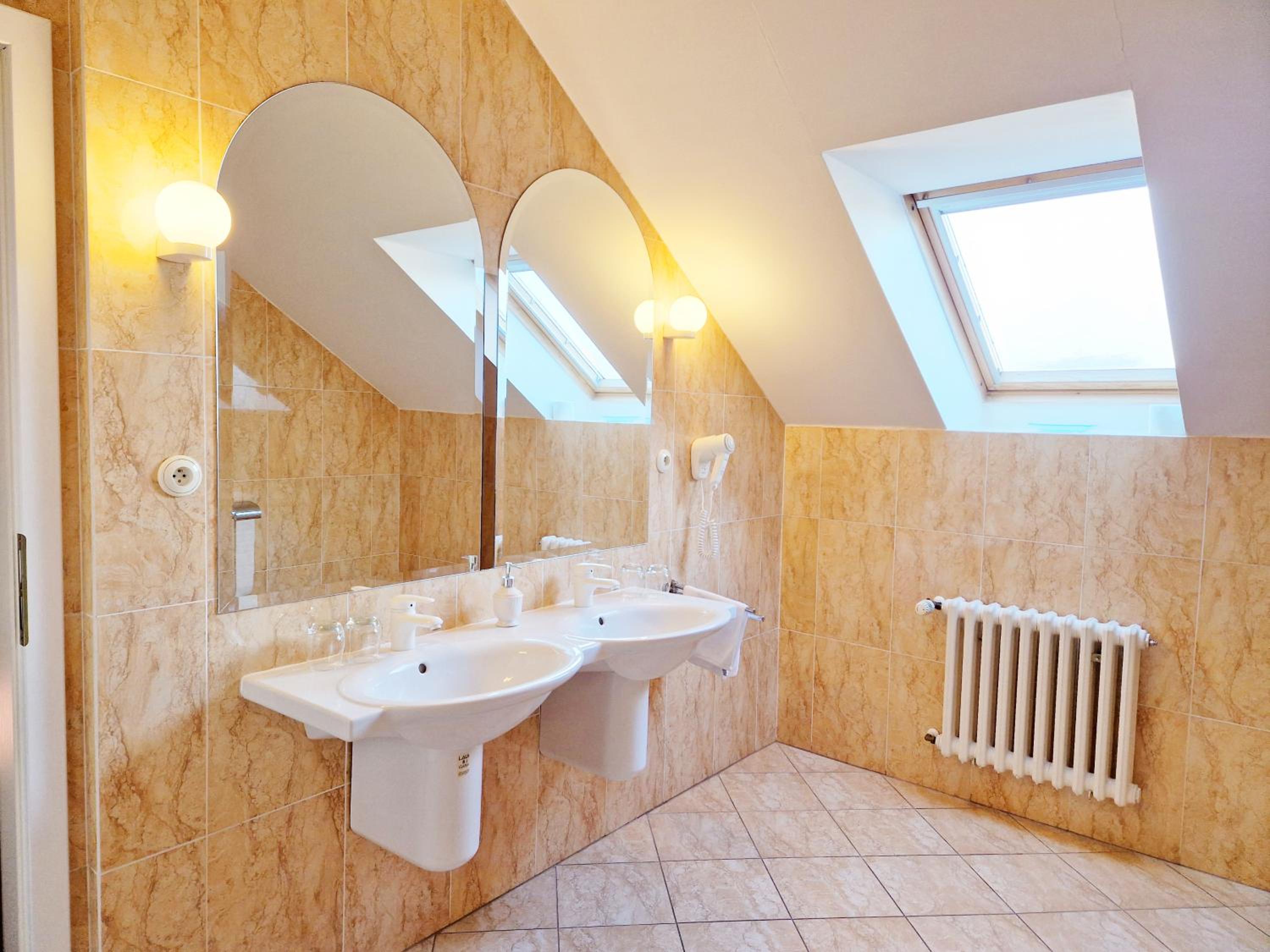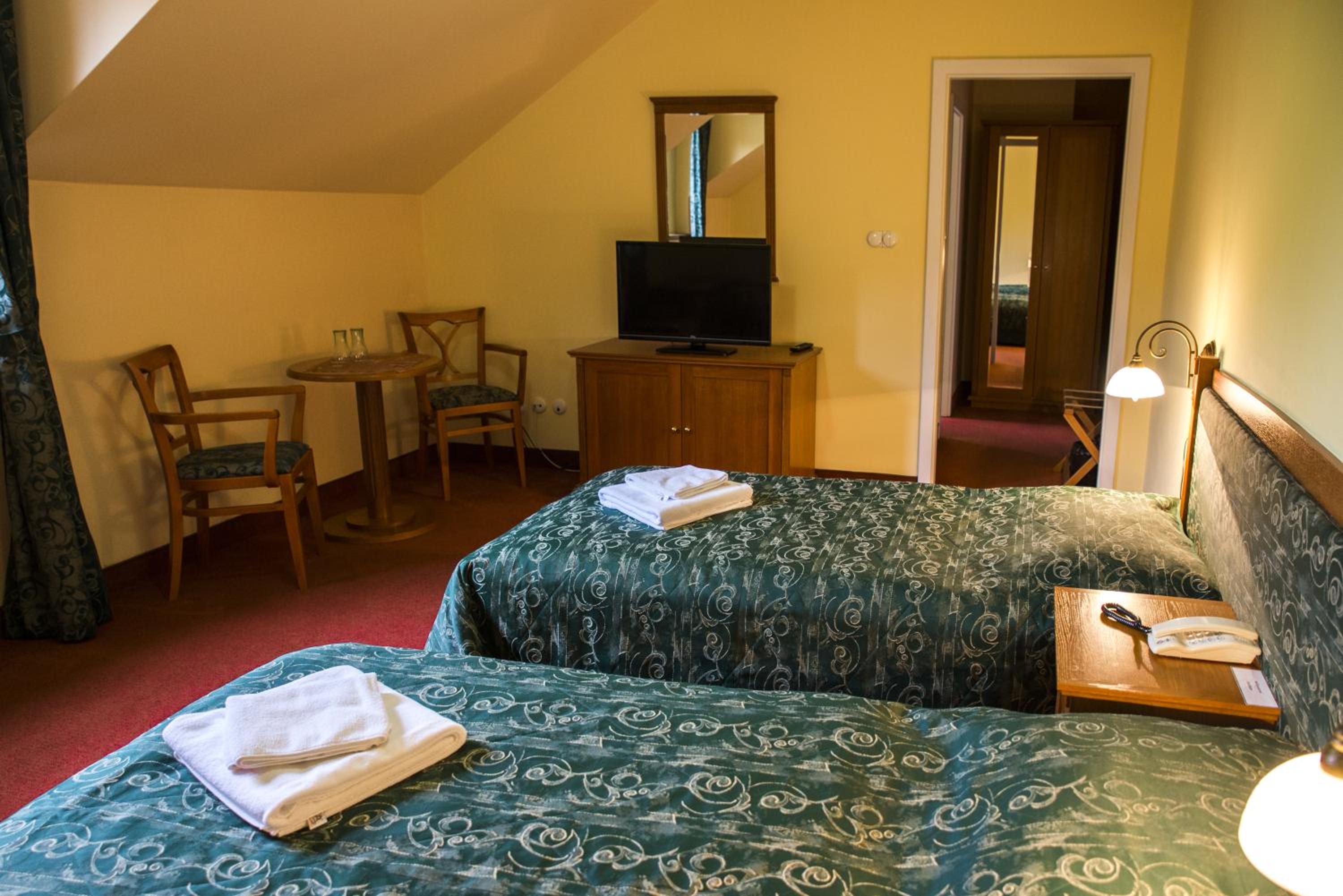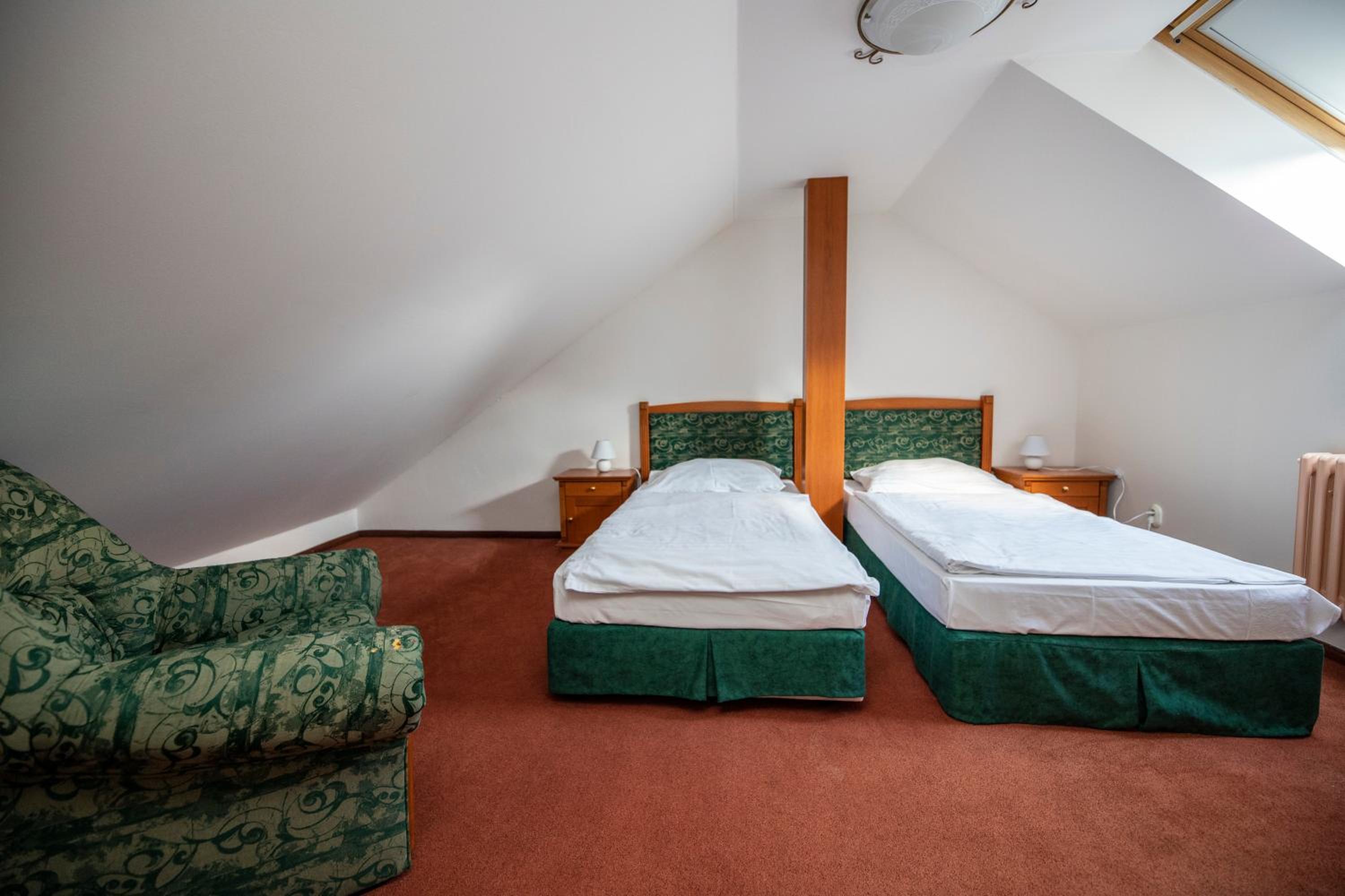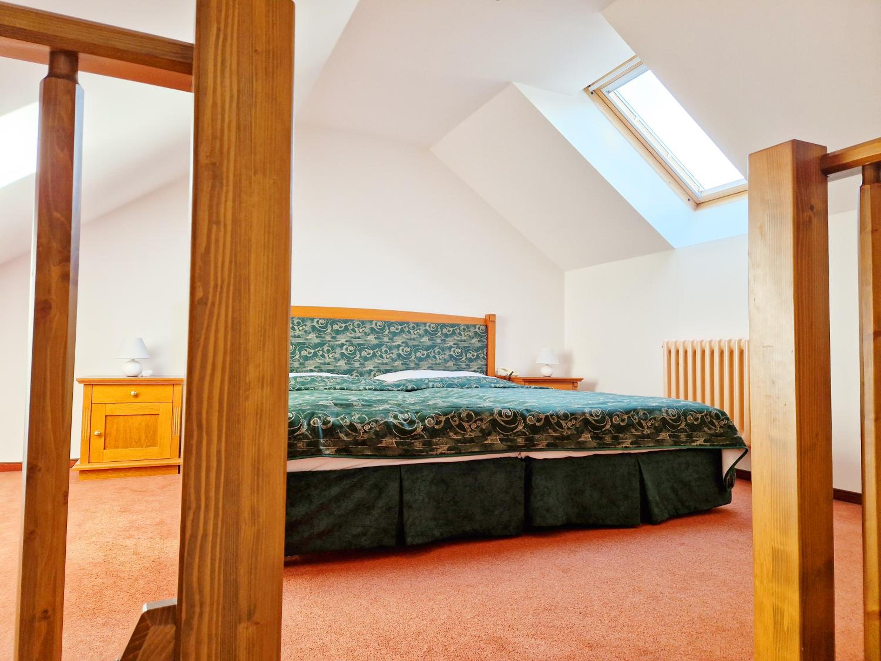 Ubytování na tom toho hotelu v zimě bohužel nemohu doporučit zvolili jsme to s dětmi jako náhradu za lyžování v Alpách chtěli jsme si užít bohaté snídaně, palačinky, volské oka, kvalitní marmeládu, čerstvé (případně domácí) pečivo,... Avšak hotel byl obsazený pouze částečně a potom už vůbec nikým - pouze námi, pokoje byly nevytopené, takže až třetí den nám začalo být na pokoji příjemně teplo, nábytek v pokoji neodpovídal tomu co jsme viděli na fotkách, snídaně byly velice podprůměrné - popraskané párky, studené lívance, jogurty v kelímkách a velmi podivný kavovar. A pokud chcete teplý nápoj na pokoji doneste si sebou vlastní varnou konvici. Takový hotel po česku. Infrasauna je v zimních měsících dostupná k večeru pouze v pátek a sobotu a ostatní dny pouze do pěti, biliard bychom si mohli objedna, ale vzhledem k tomu, že jsme neměli v plánu večeřet v restauraci hotelu a billiard byl v těchto prostorech... Zřejmě by nebylo na koho se obrátit na hotelu jsme byli večer zcela sami. Za penzion bych dala poloviční peníze a možná by byl servis lepší. Za případnou ztrátu klíče, který jsme k pokoji dostali jeden, hrozila pokuta 2000,- (to už se v době čipových vstupů málokdy vidí). Navíc při úklidu zhruba kolem poledne jsou hotelové chodby zaházené špinavým ložním prádlem, chemikáliemi a bohužel i odpadky v pytlích, a suší se zde i prádlo .. Je mi líto, že musím takovouto recenzi napsat, ale je to upřímné. V létě může být hotel s ohledem na destinaci a lepší počasí skvělý, věřím tomu.