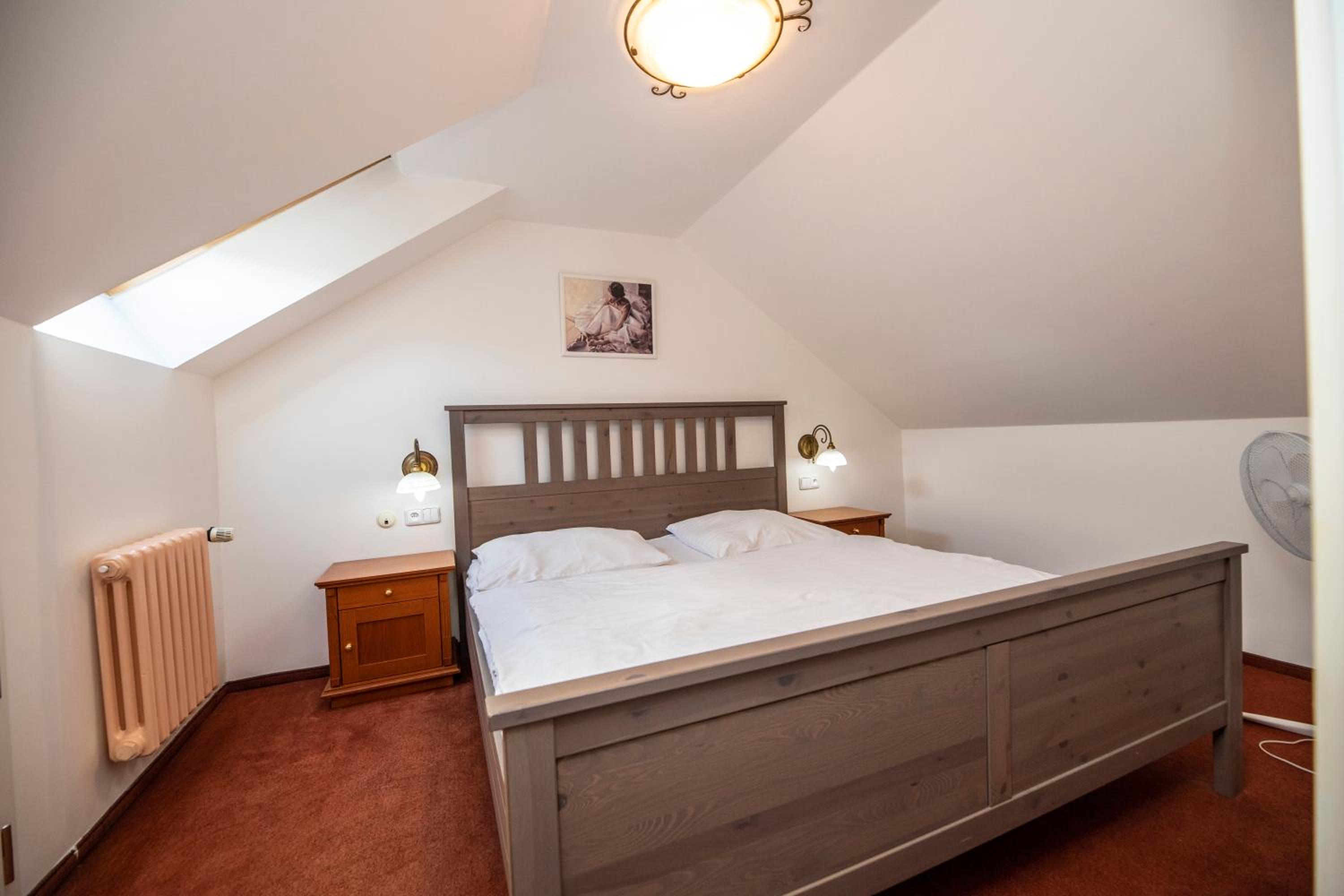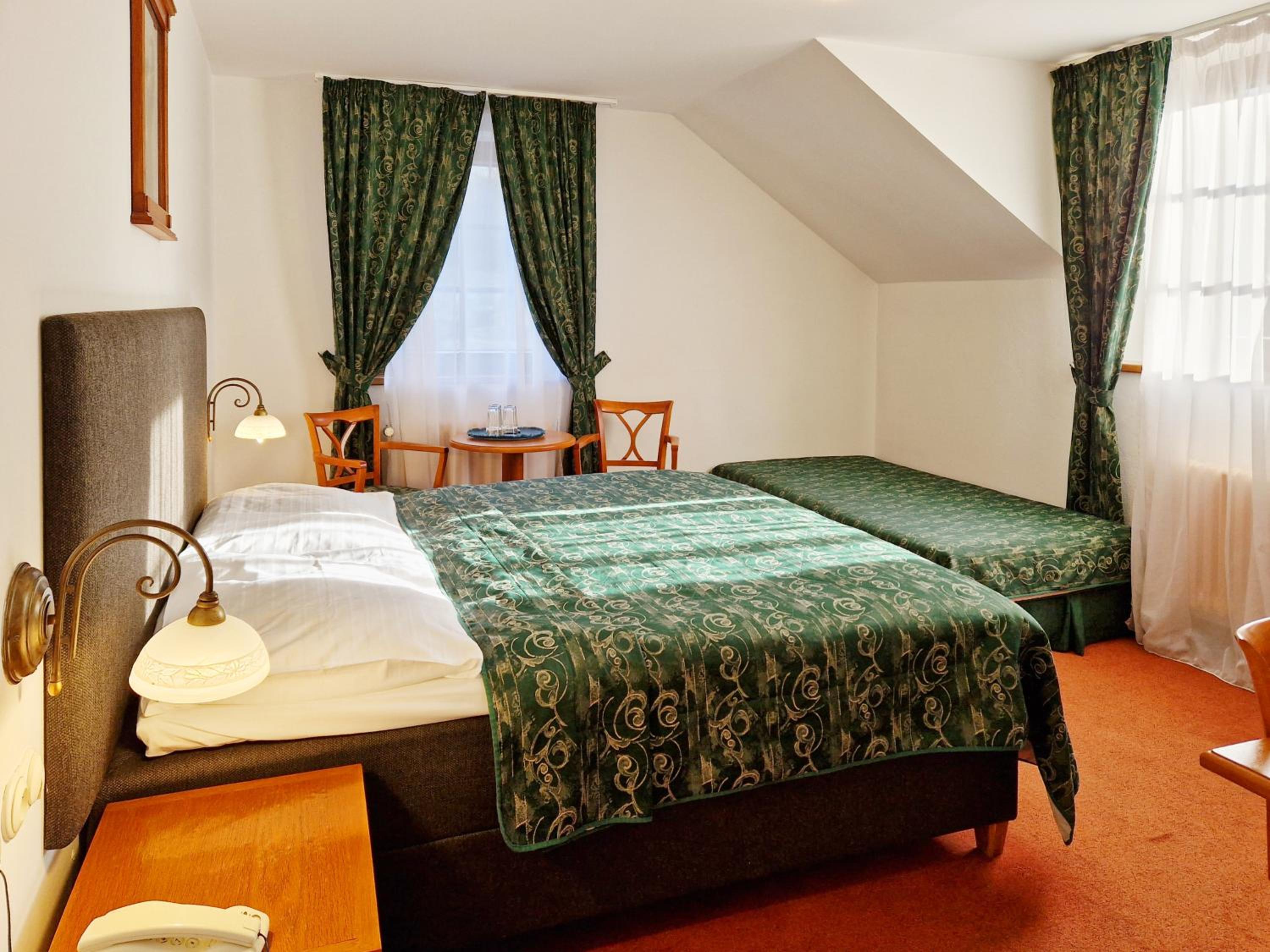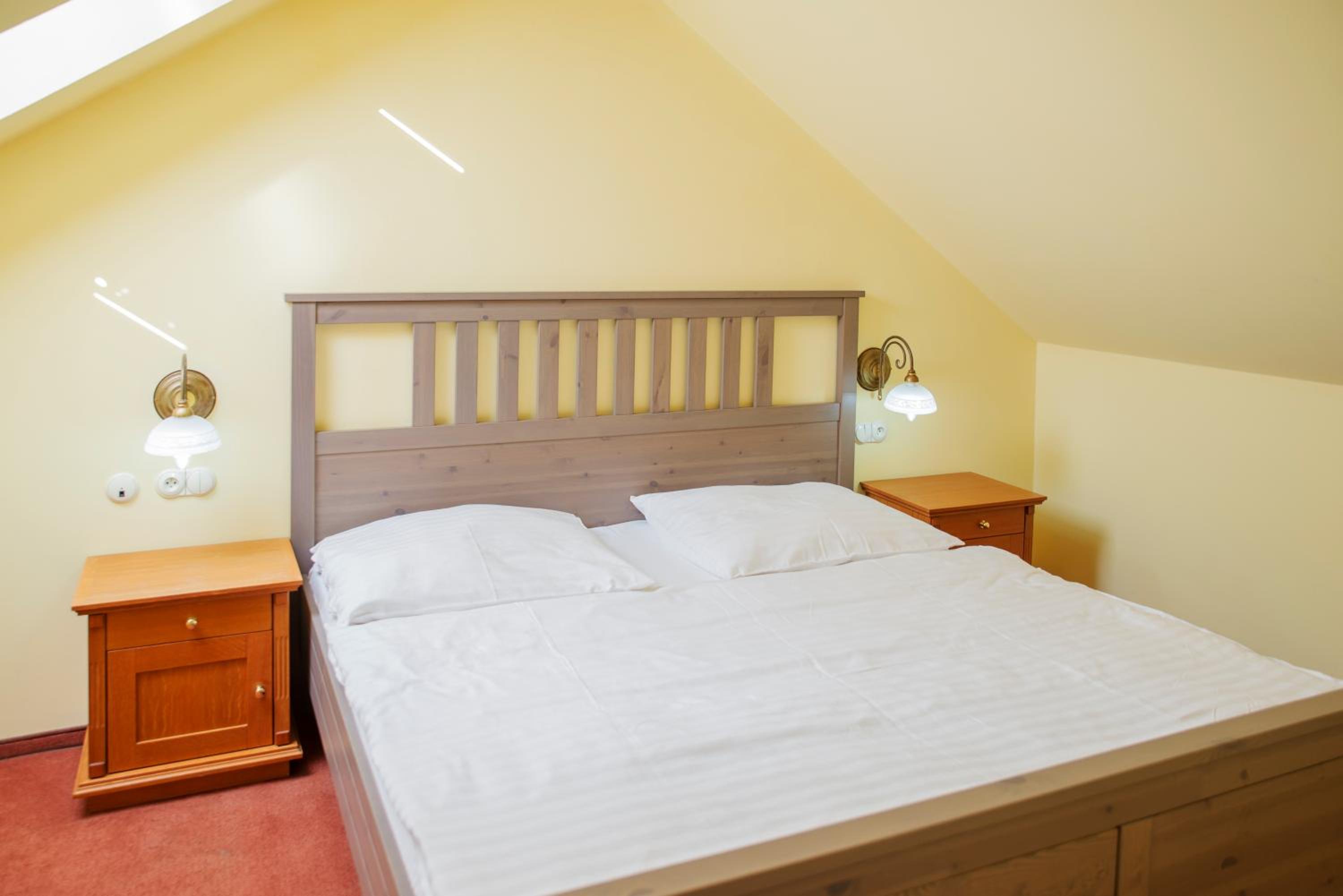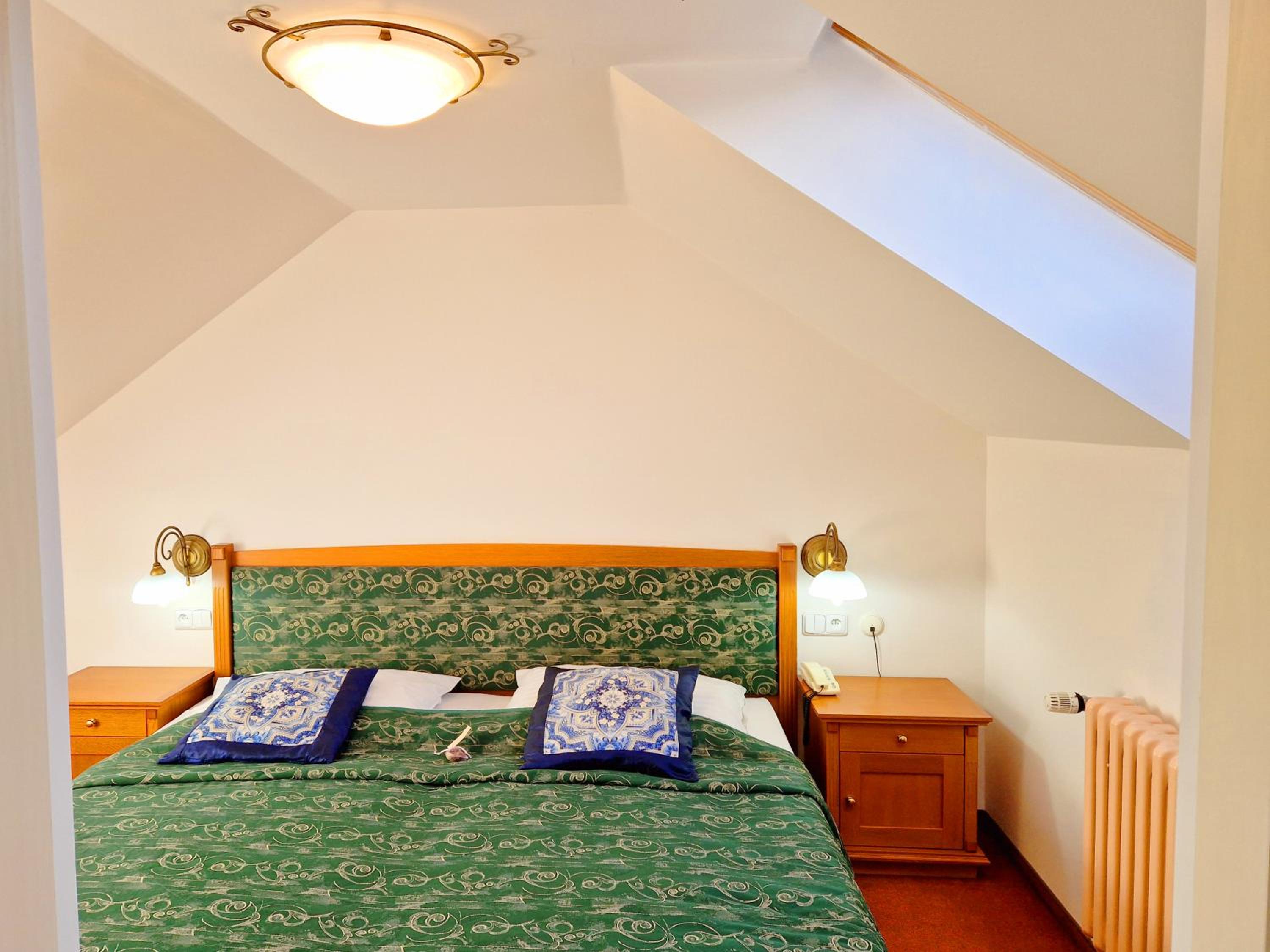 Ubytování na tom toho hotelu v zimě bohužel nemohu doporučit zvolili jsme to s dětmi jako náhradu za lyžování v Alpách chtěli jsme si užít bohaté snídaně, palačinky, volské oka, kvalitní marmeládu, čerstvé (případně domácí) pečivo,... Avšak hotel byl obsazený pouze částečně a potom už vůbec nikým - pouze námi, pokoje byly nevytopené, takže až třetí den nám začalo být na pokoji příjemně teplo, nábytek v pokoji neodpovídal tomu co jsme viděli na fotkách, snídaně byly velice podprůměrné - popraskané párky, studené lívance, jogurty v kelímkách a velmi podivný kavovar. A pokud chcete teplý nápoj na pokoji doneste si sebou vlastní varnou konvici. Takový hotel po česku. Infrasauna je v zimních měsících dostupná k večeru pouze v pátek a sobotu a ostatní dny pouze do pěti, biliard bychom si mohli objedna, ale vzhledem k tomu, že jsme neměli v plánu večeřet v restauraci hotelu a billiard byl v těchto prostorech... Zřejmě by nebylo na koho se obrátit na hotelu jsme byli večer zcela sami. Za penzion bych dala poloviční peníze a možná by byl servis lepší. Za případnou ztrátu klíče, který jsme k pokoji dostali jeden, hrozila pokuta 2000,- (to už se v době čipových vstupů málokdy vidí). Navíc při úklidu zhruba kolem poledne jsou hotelové chodby zaházené špinavým ložním prádlem, chemikáliemi a bohužel i odpadky v pytlích, a suší se zde i prádlo .. Je mi líto, že musím takovouto recenzi napsat, ale je to upřímné. V létě může být hotel s ohledem na destinaci a lepší počasí skvělý, věřím tomu.
