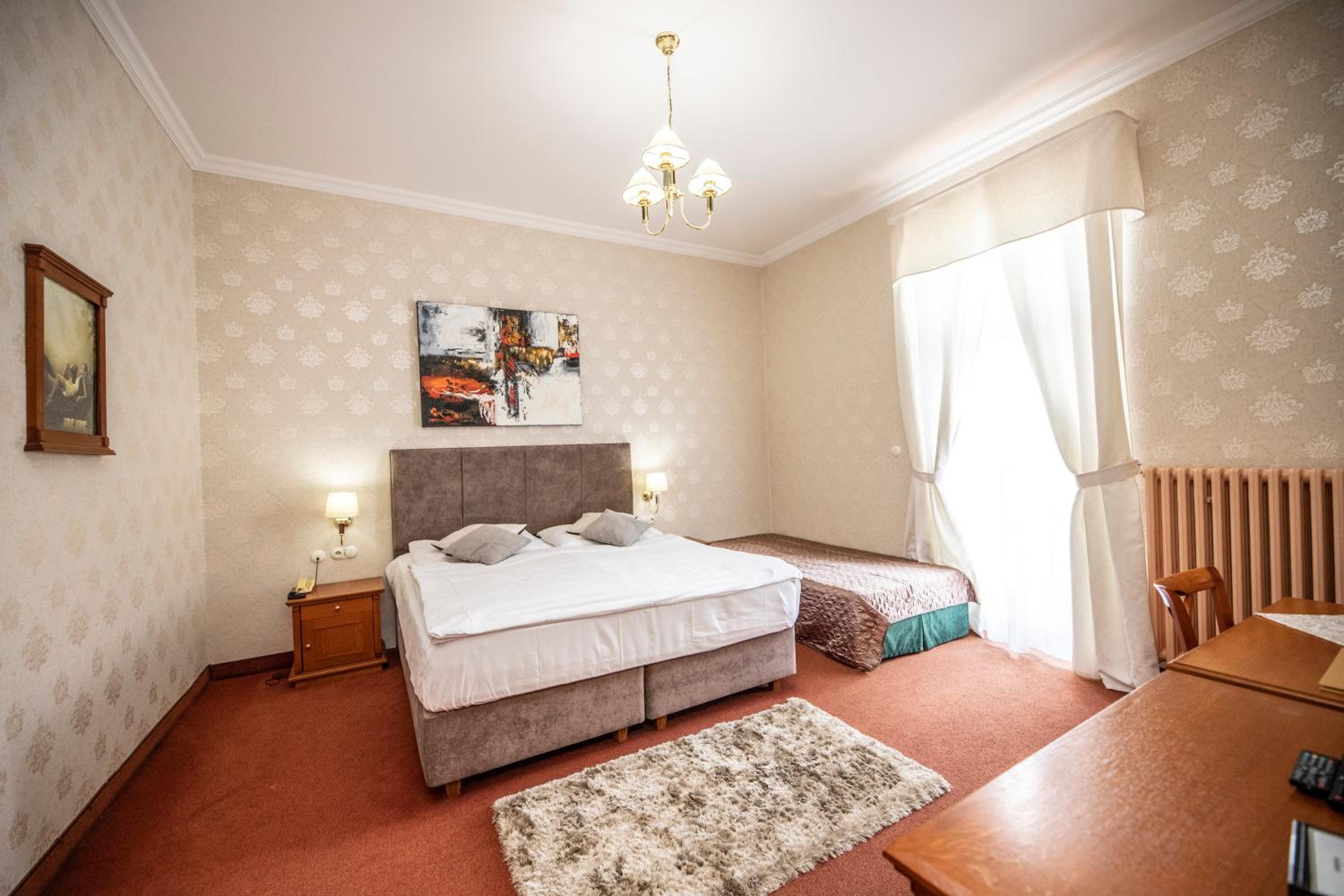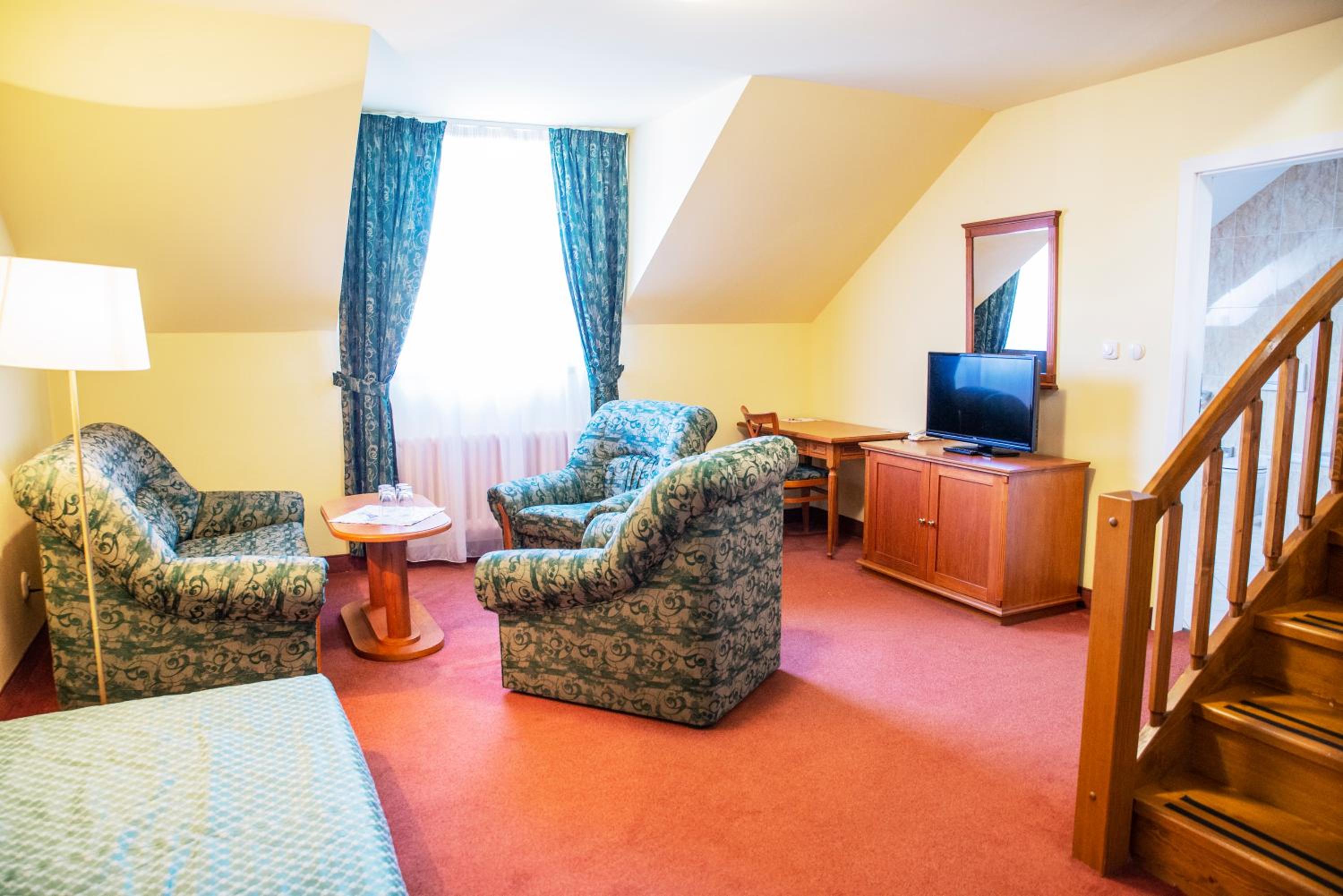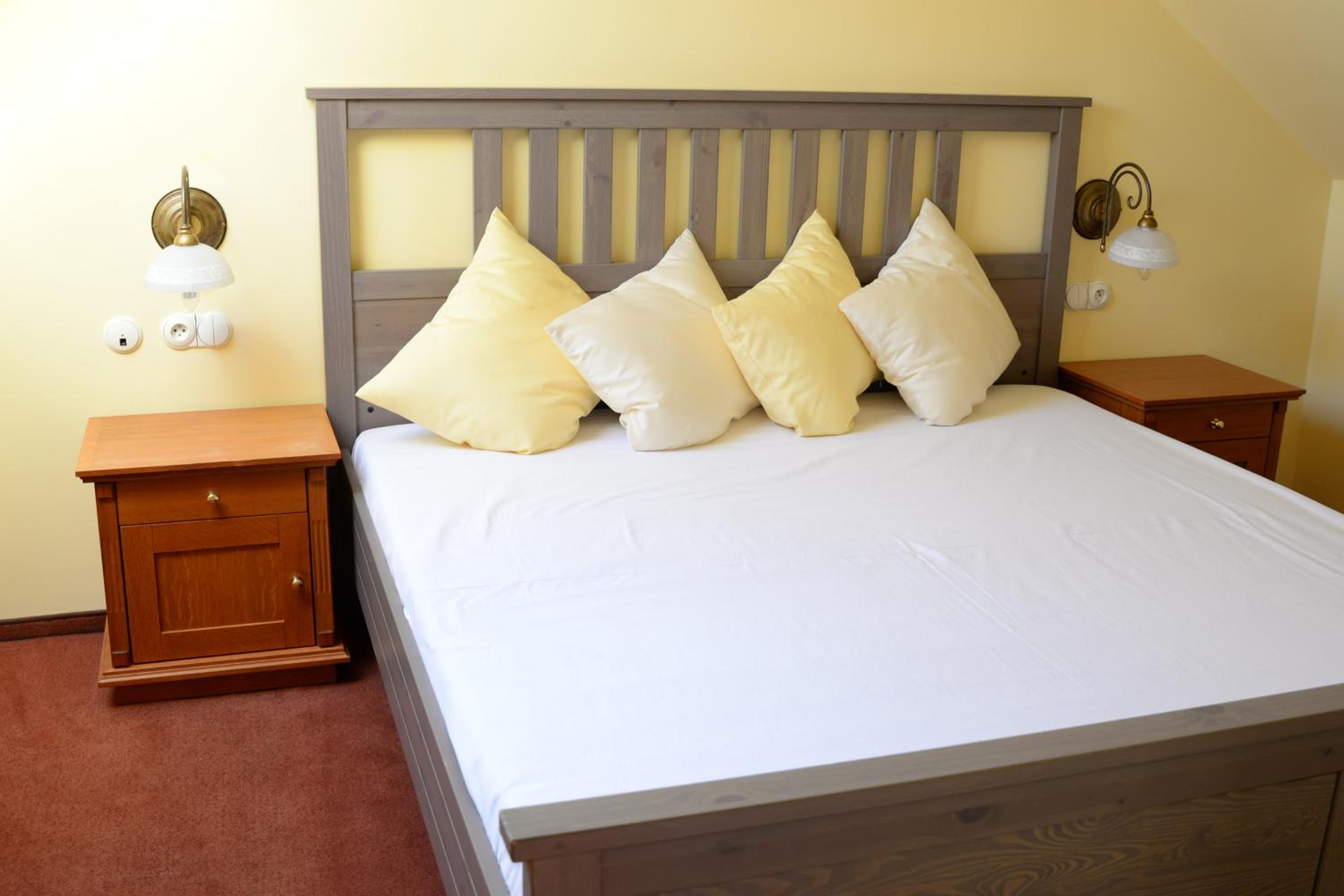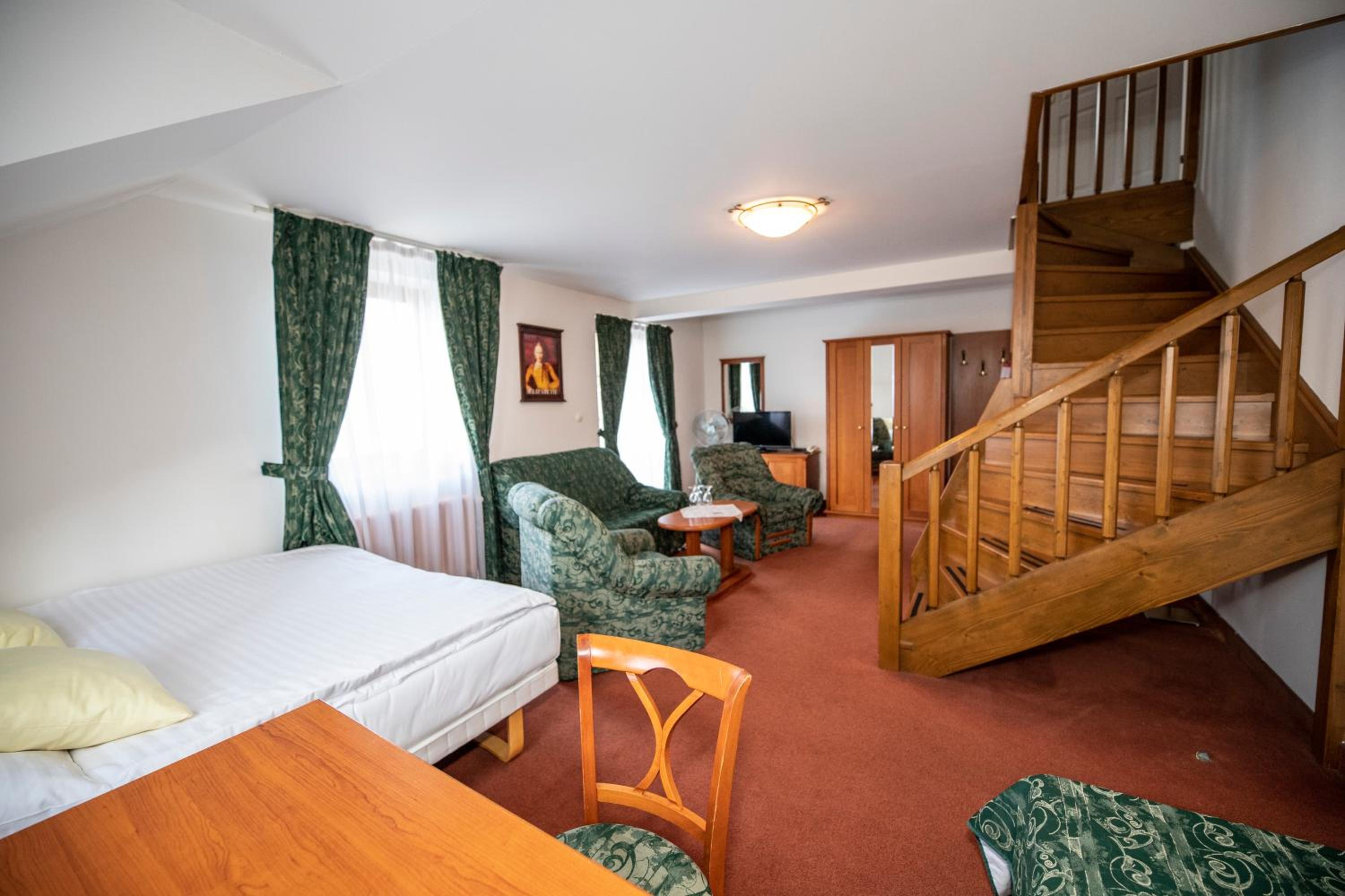 Ubytování na tom toho hotelu v zimě bohužel nemohu doporučit zvolili jsme to s dětmi jako náhradu za lyžování v Alpách chtěli jsme si užít bohaté snídaně, palačinky, volské oka, kvalitní marmeládu, čerstvé (případně domácí) pečivo,... Avšak hotel byl obsazený pouze částečně a potom už vůbec nikým - pouze námi, pokoje byly nevytopené, takže až třetí den nám začalo být na pokoji příjemně teplo, nábytek v pokoji neodpovídal tomu co jsme viděli na fotkách, snídaně byly velice podprůměrné - popraskané párky, studené lívance, jogurty v kelímkách a velmi podivný kavovar. A pokud chcete teplý nápoj na pokoji doneste si sebou vlastní varnou konvici. Takový hotel po česku. Infrasauna je v zimních měsících dostupná k večeru pouze v pátek a sobotu a ostatní dny pouze do pěti, biliard bychom si mohli objedna, ale vzhledem k tomu, že jsme neměli v plánu večeřet v restauraci hotelu a billiard byl v těchto prostorech... Zřejmě by nebylo na koho se obrátit na hotelu jsme byli večer zcela sami. Za penzion bych dala poloviční peníze a možná by byl servis lepší. Za případnou ztrátu klíče, který jsme k pokoji dostali jeden, hrozila pokuta 2000,- (to už se v době čipových vstupů málokdy vidí). Navíc při úklidu zhruba kolem poledne jsou hotelové chodby zaházené špinavým ložním prádlem, chemikáliemi a bohužel i odpadky v pytlích, a suší se zde i prádlo .. Je mi líto, že musím takovouto recenzi napsat, ale je to upřímné. V létě může být hotel s ohledem na destinaci a lepší počasí skvělý, věřím tomu.