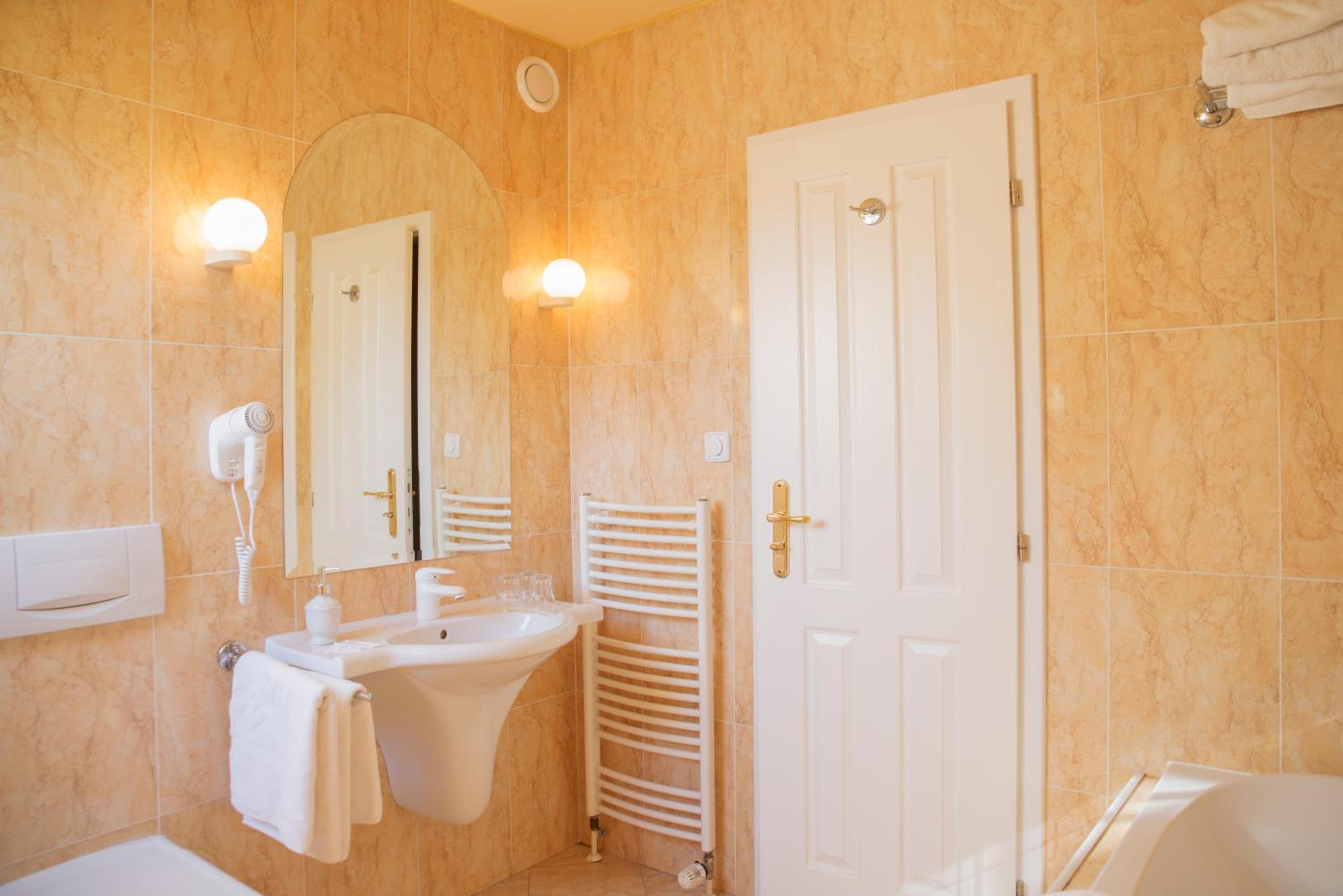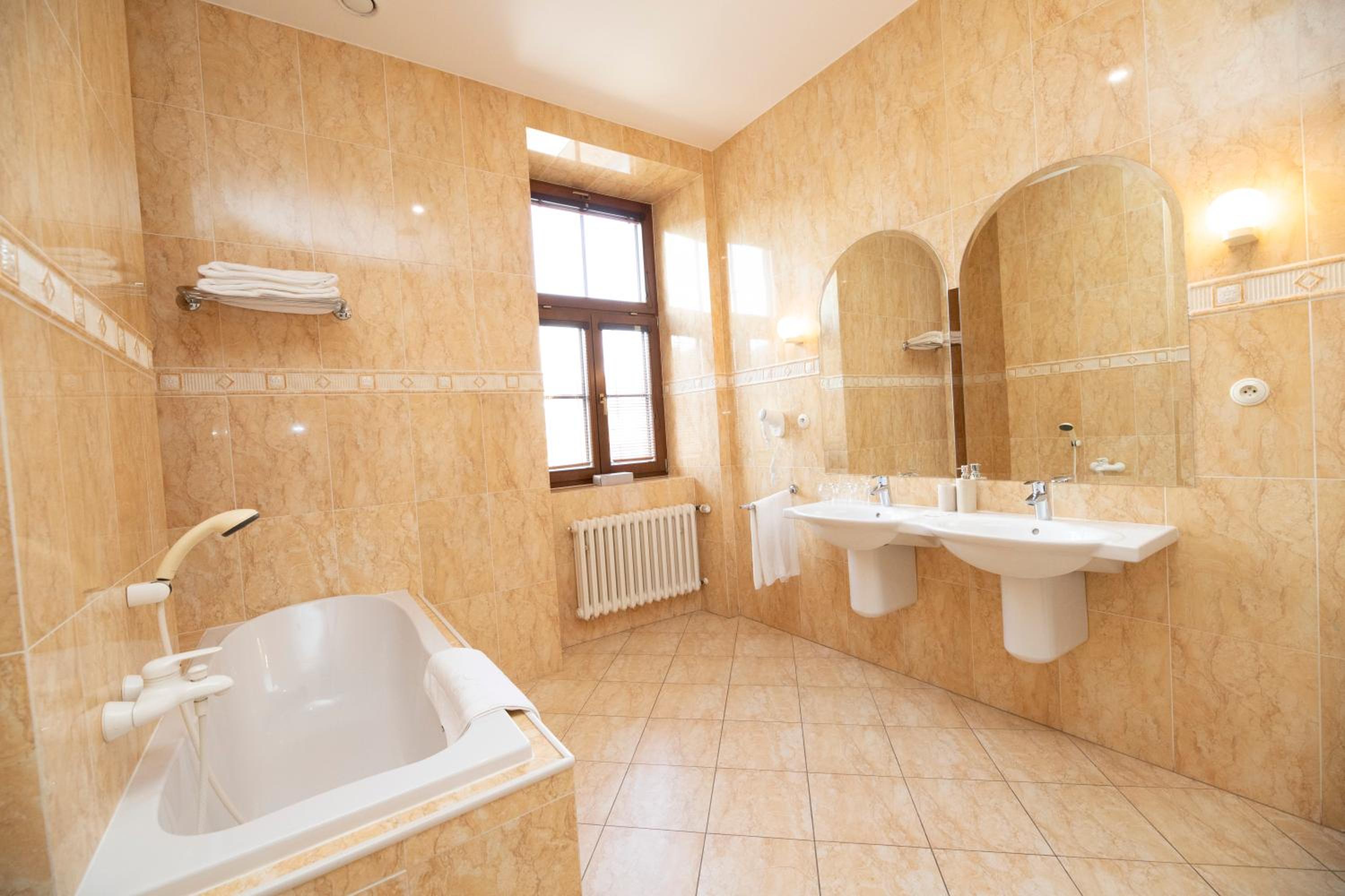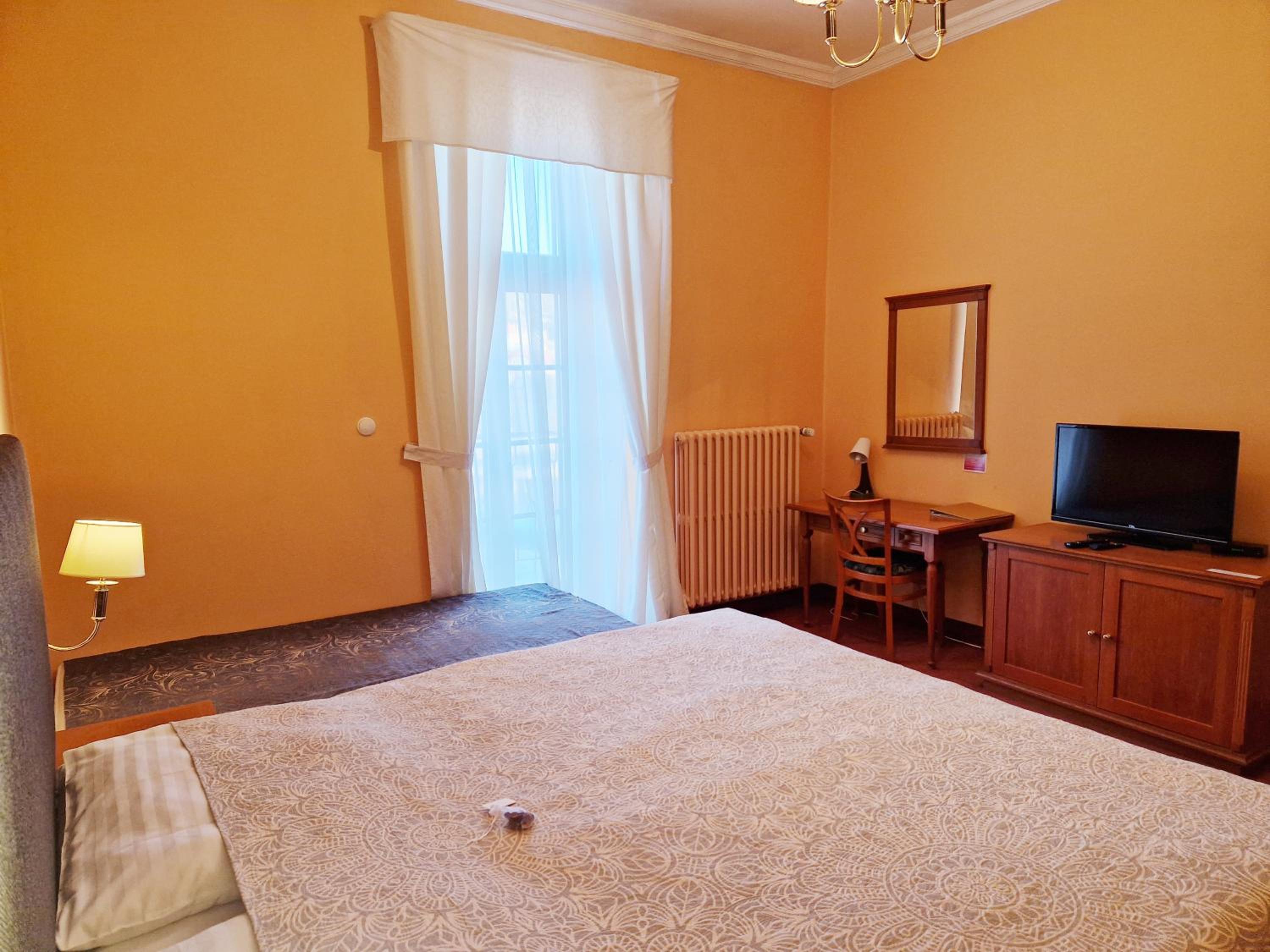 The room attached to the booking.com booking didn’t have a shower (bath only). And the bathroom floor tiles were cracked. Decor is outdated. We upgraded spending an extra 300 Czk to get a room facing the river and a shower in the bathroom. The shower cubicle was very very small but fortunately usable. I have mobility problems so can’t use a bath.