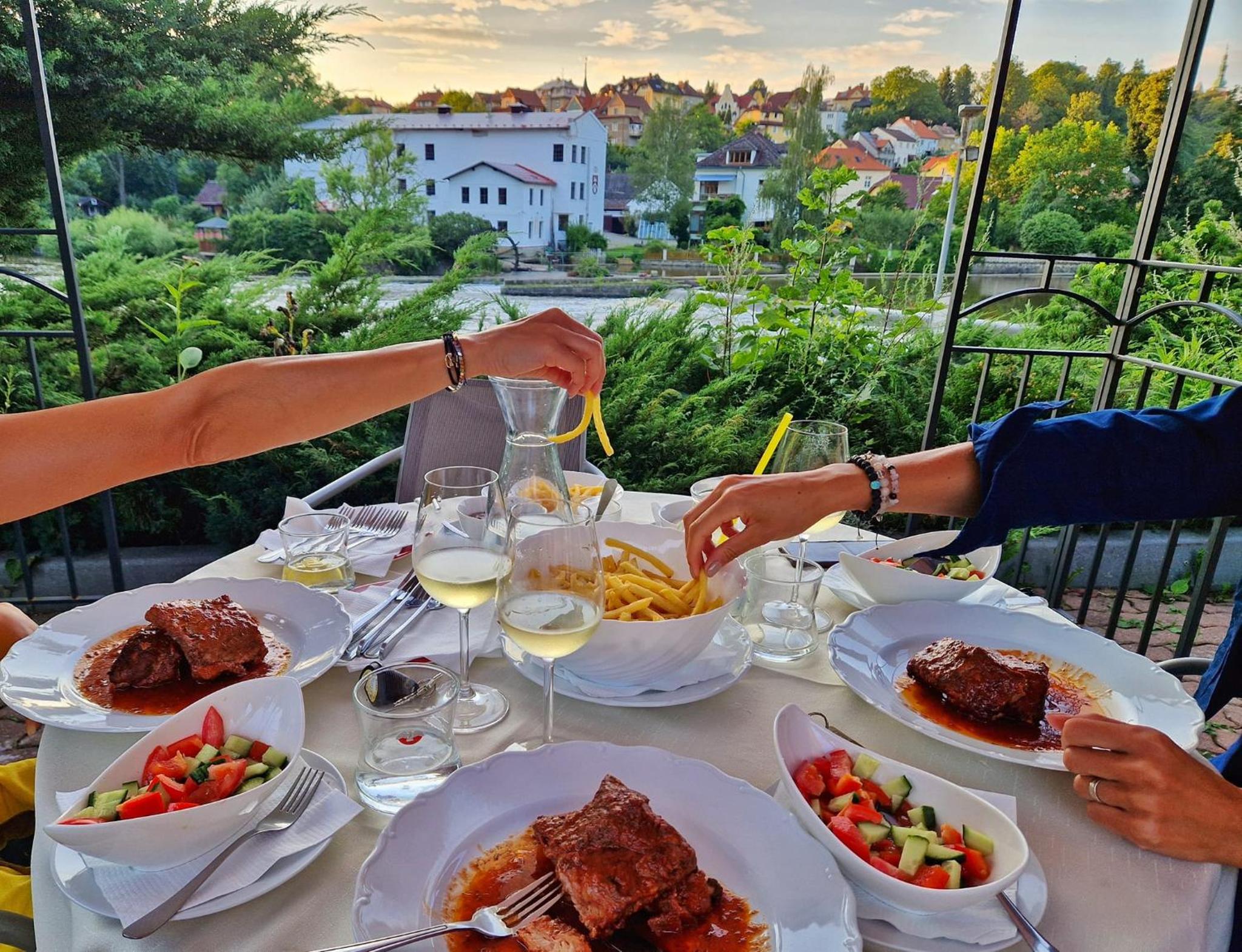 Relax in our en-suite rooms equipped with modern amenities including flat-screen TVs, minibars, and some with balconies overlooking the tranquil river Lužnice.