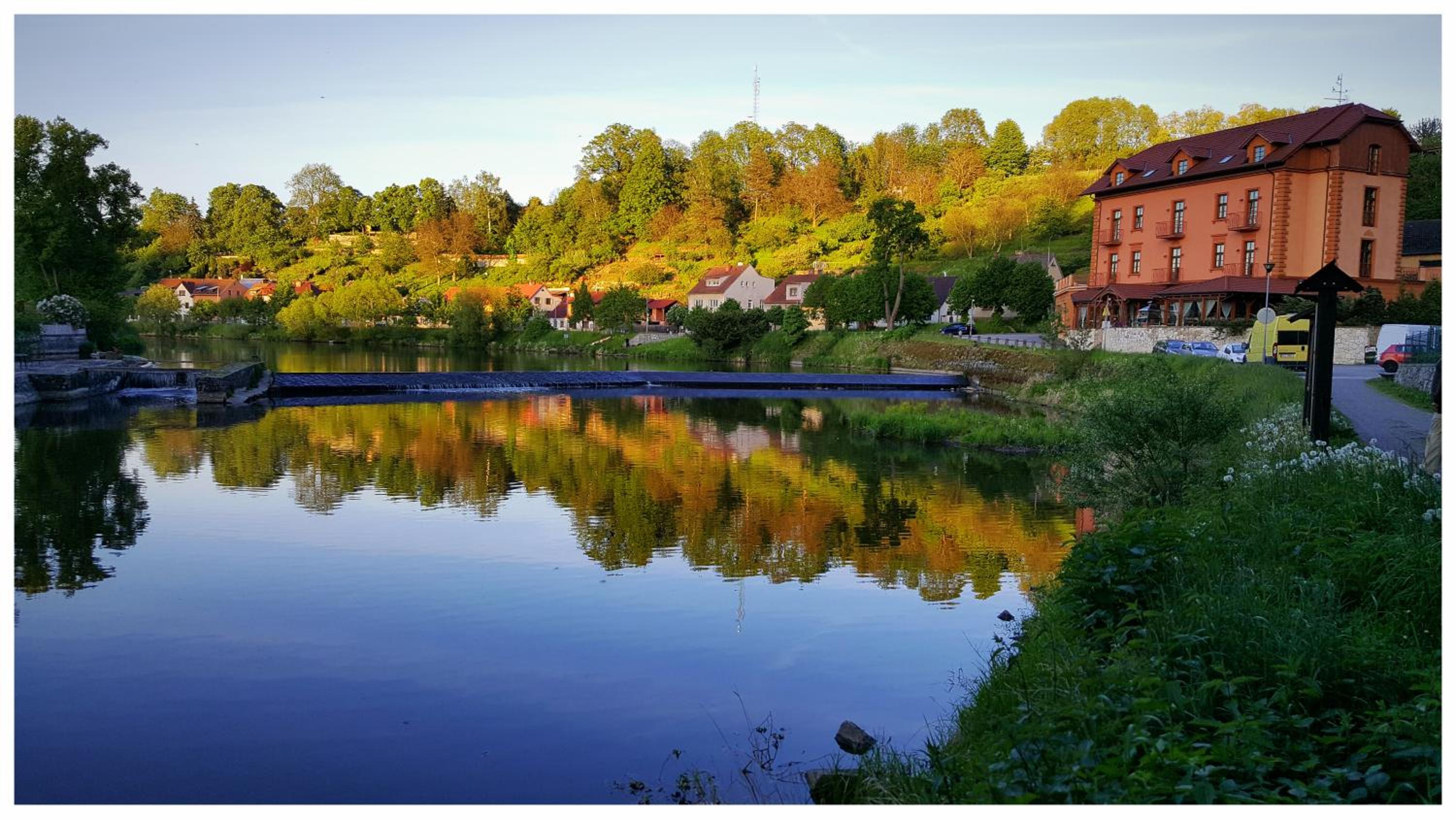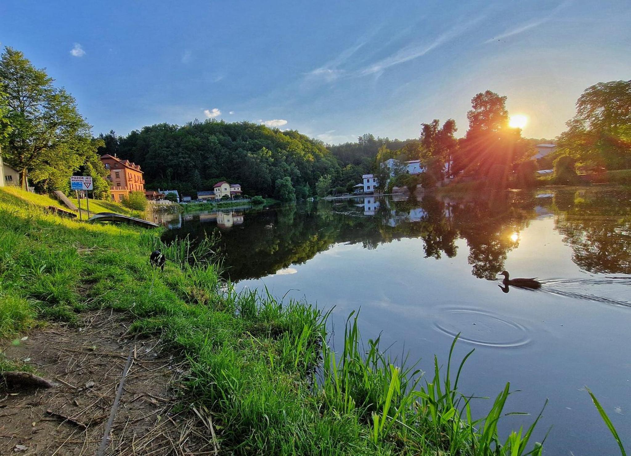 Příjemný hotýlek na břehu Lužnice, výhled z pokoje na řeku, neuvěřitelně ochotný pan Honza (?), dobré snídaně, výborné večeře, pobyt jsme si moc užili