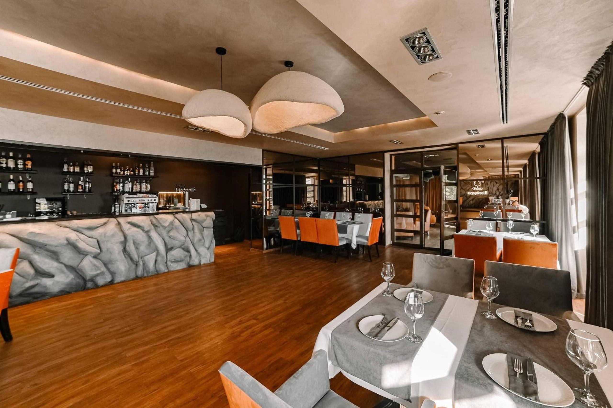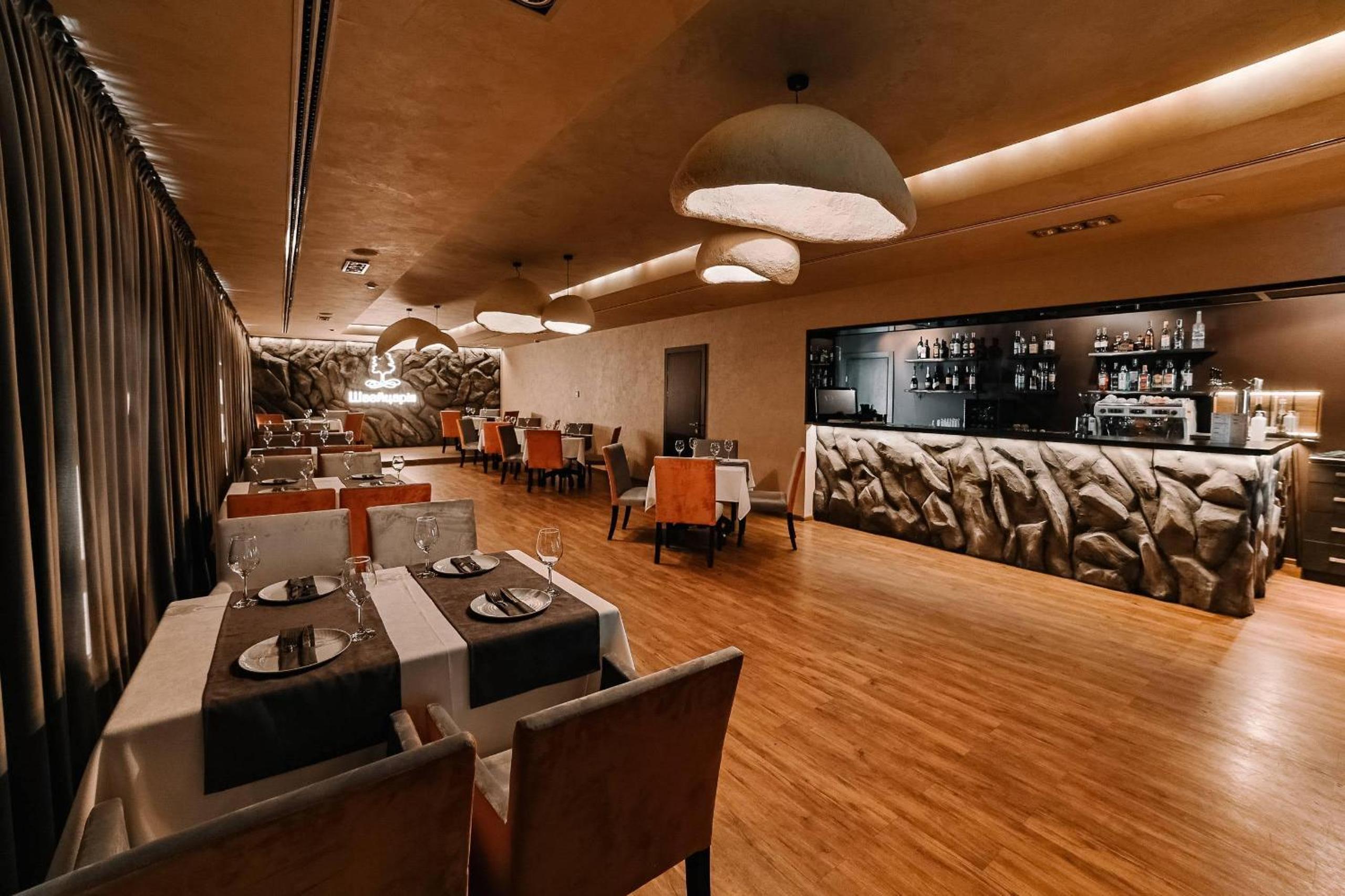 Satisfy your culinary cravings with a diverse range of European, Ukrainian, and Japanese cuisine at the hotel's restaurant, open round the clock. Unwind with a drink at the bar or admire the lake panorama from the shaded terrace. To end the day on a high note, guests can showcase their singing talents at the Vysotsky Karaoke Club.