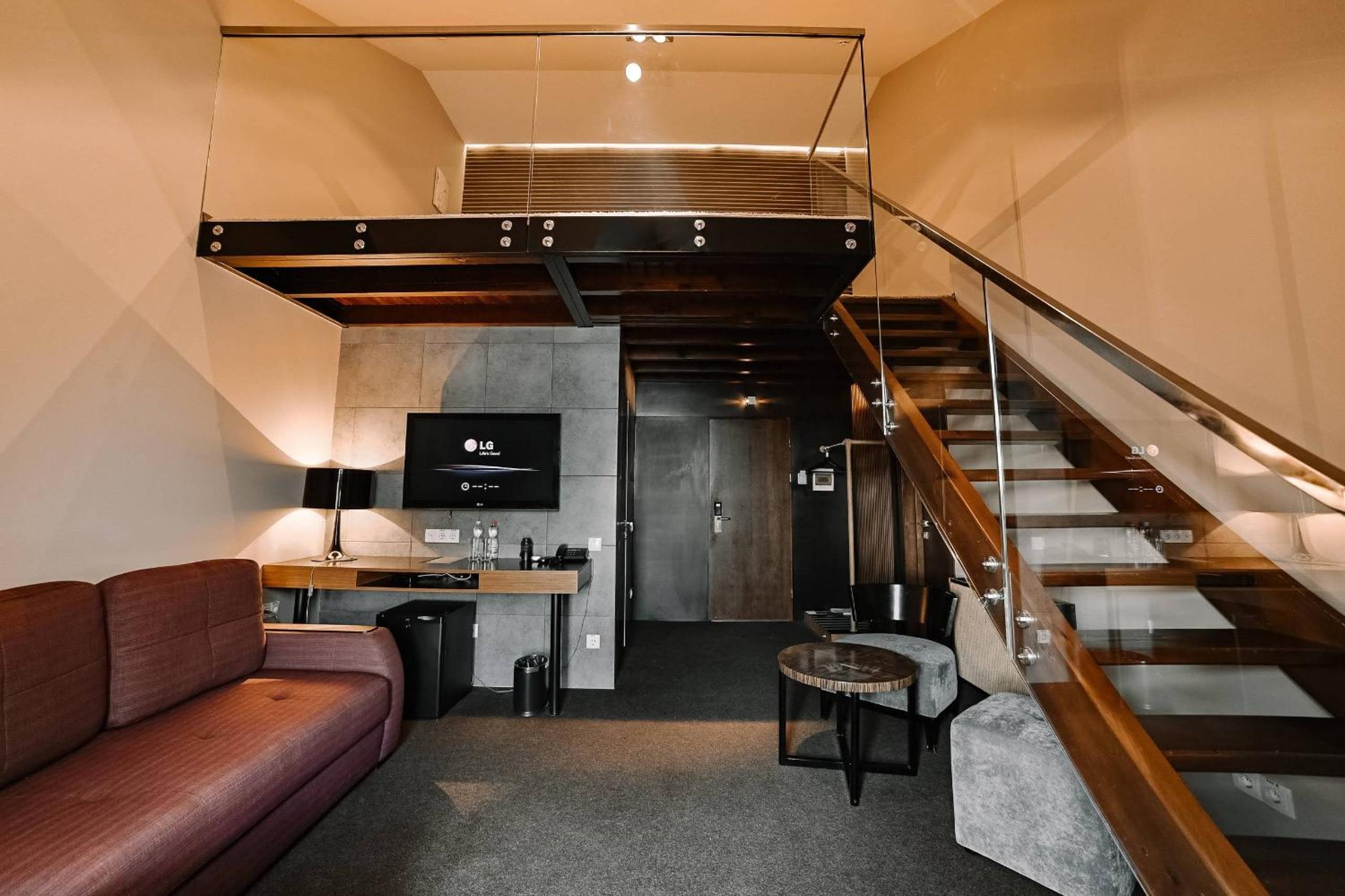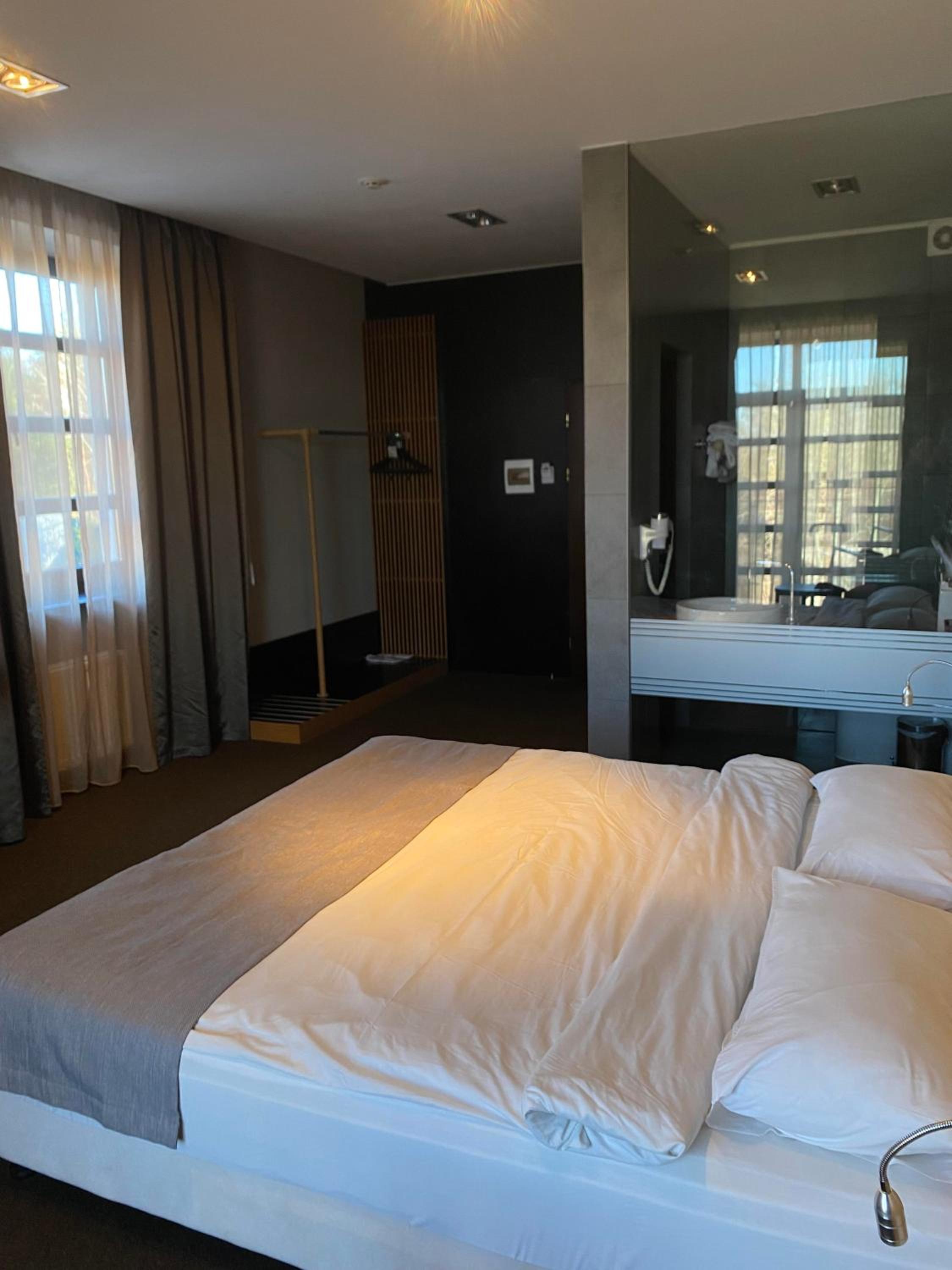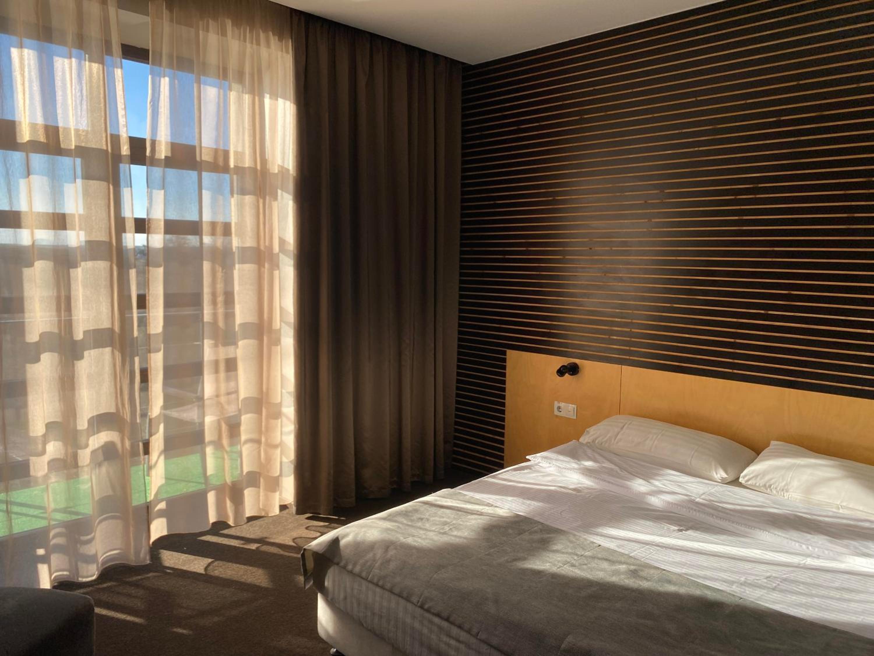 Зручні ліжка, балкон, вид з вікна (уявляю, як це класно виглядає влітку!). Стильне оформлення готелю. Безкоштовна зручна парковка.