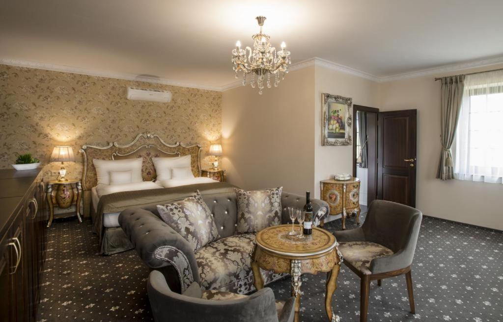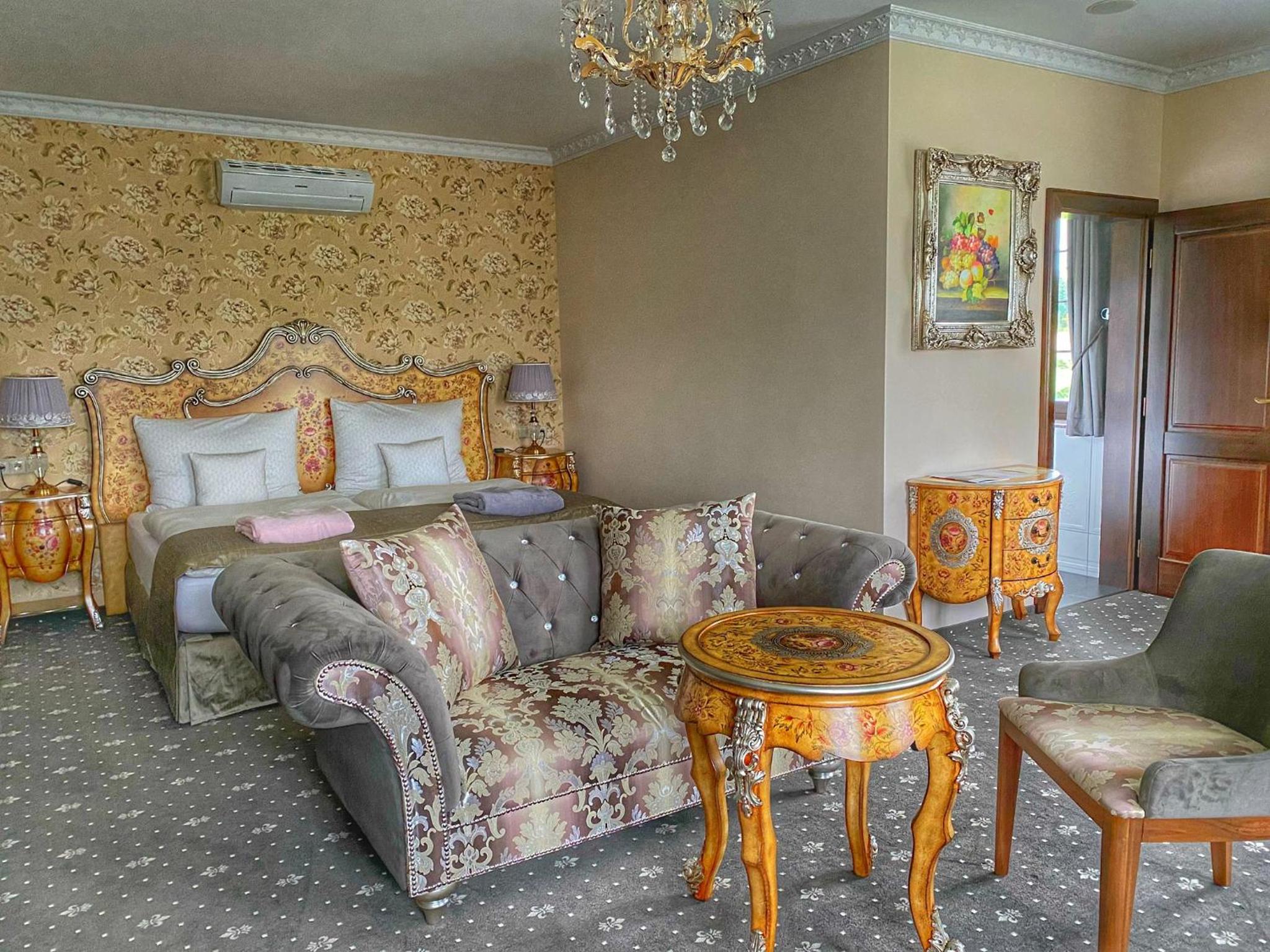 Château Šanov offers 5-star air-conditioned rooms with modern amenities, ensuring a comfortable stay. Each room features a desk, safety deposit box, flat-screen TV, and a private bathroom, providing the perfect retreat for guests.