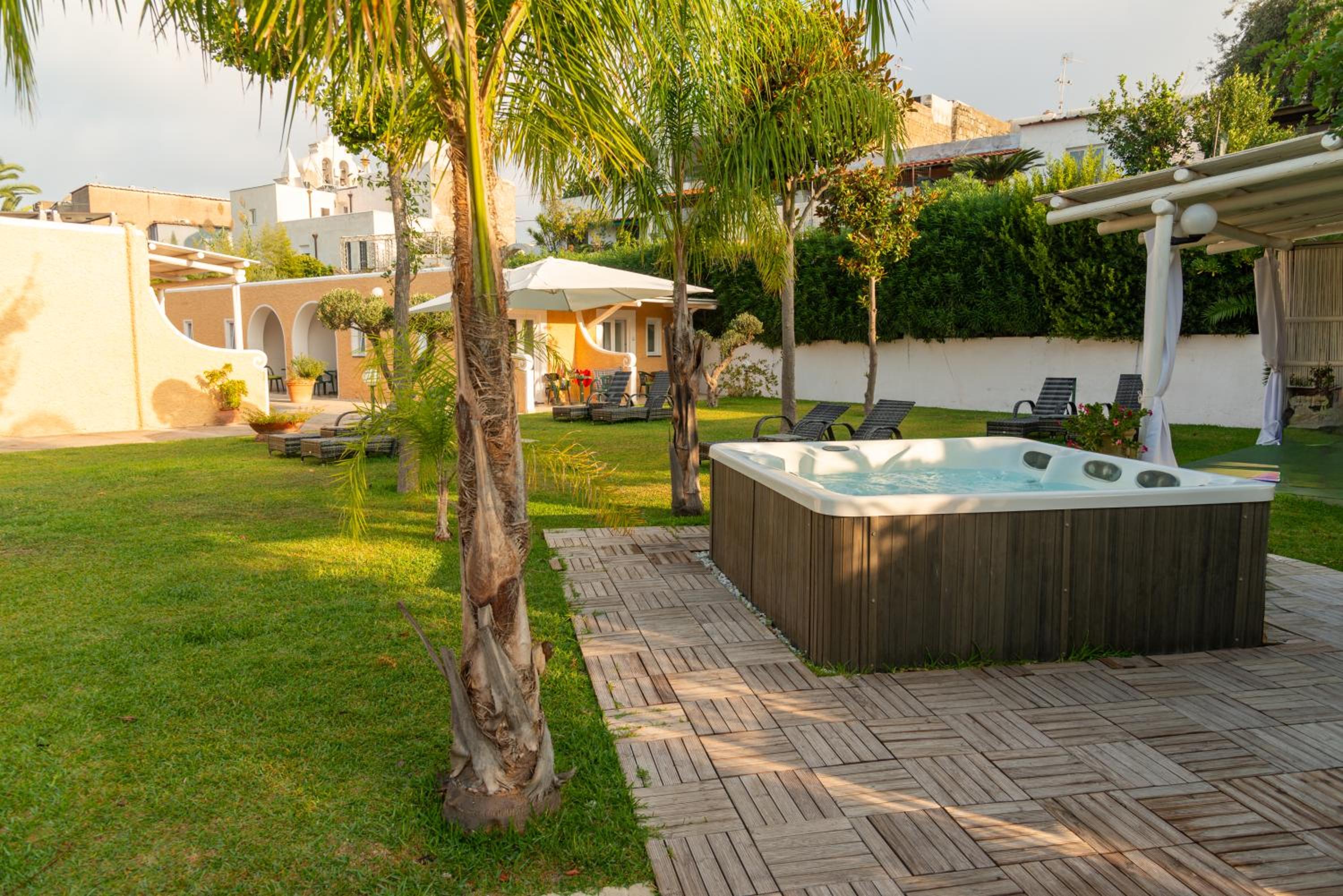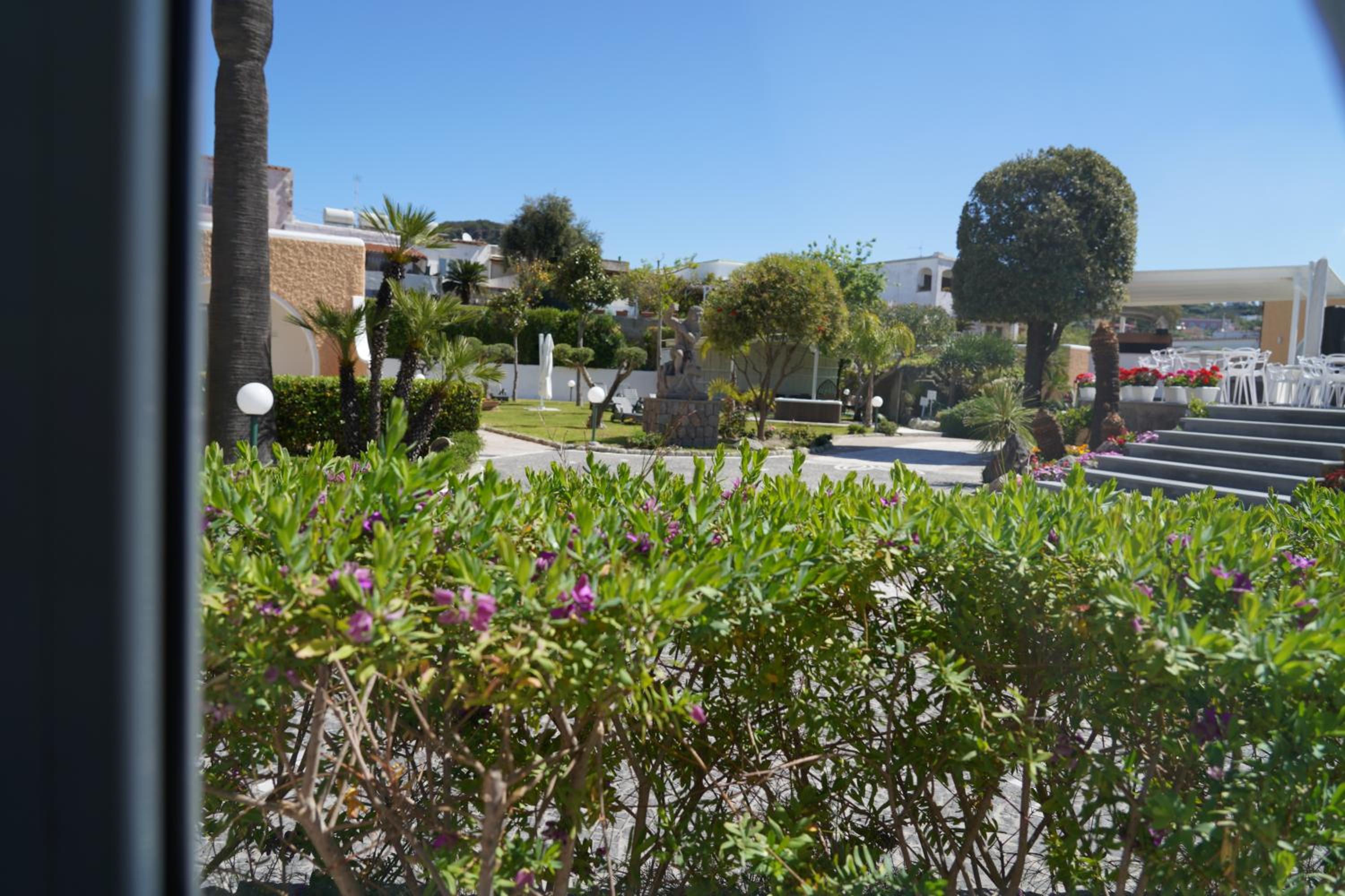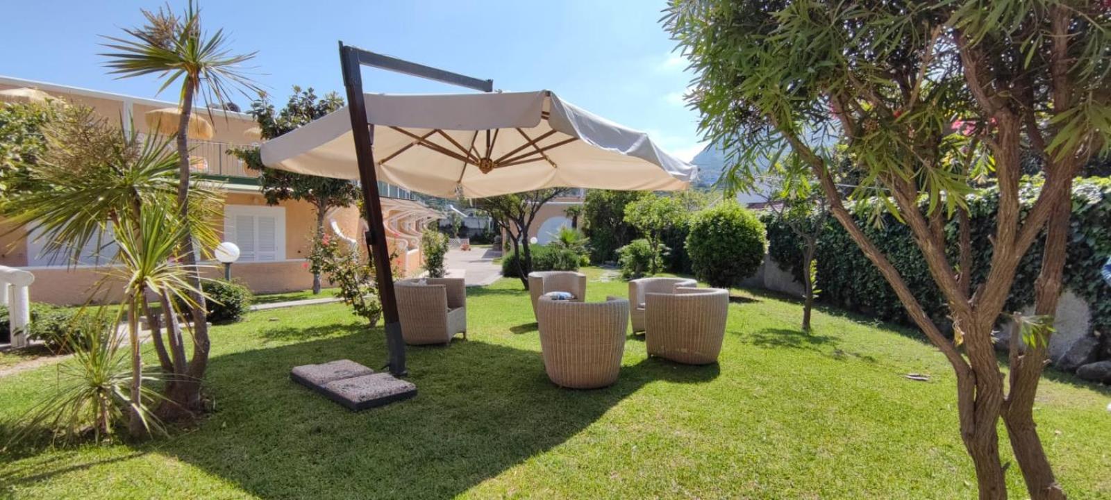 Escape to Albergo Parco delle Agavi's green oasis, boasting 2000m² of parkland with vibrant plants and trees. Each room features a private balcony overlooking the serene gardens, creating a peaceful retreat.