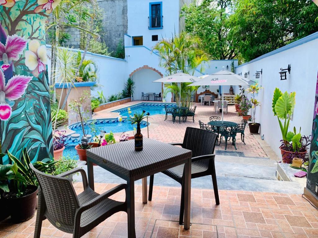 Esta a 1 cuadra del centro. Lindo el hotel. Hay alberca, pero no necesitaba usarla, pero vi siempre estaba solo el espacio.