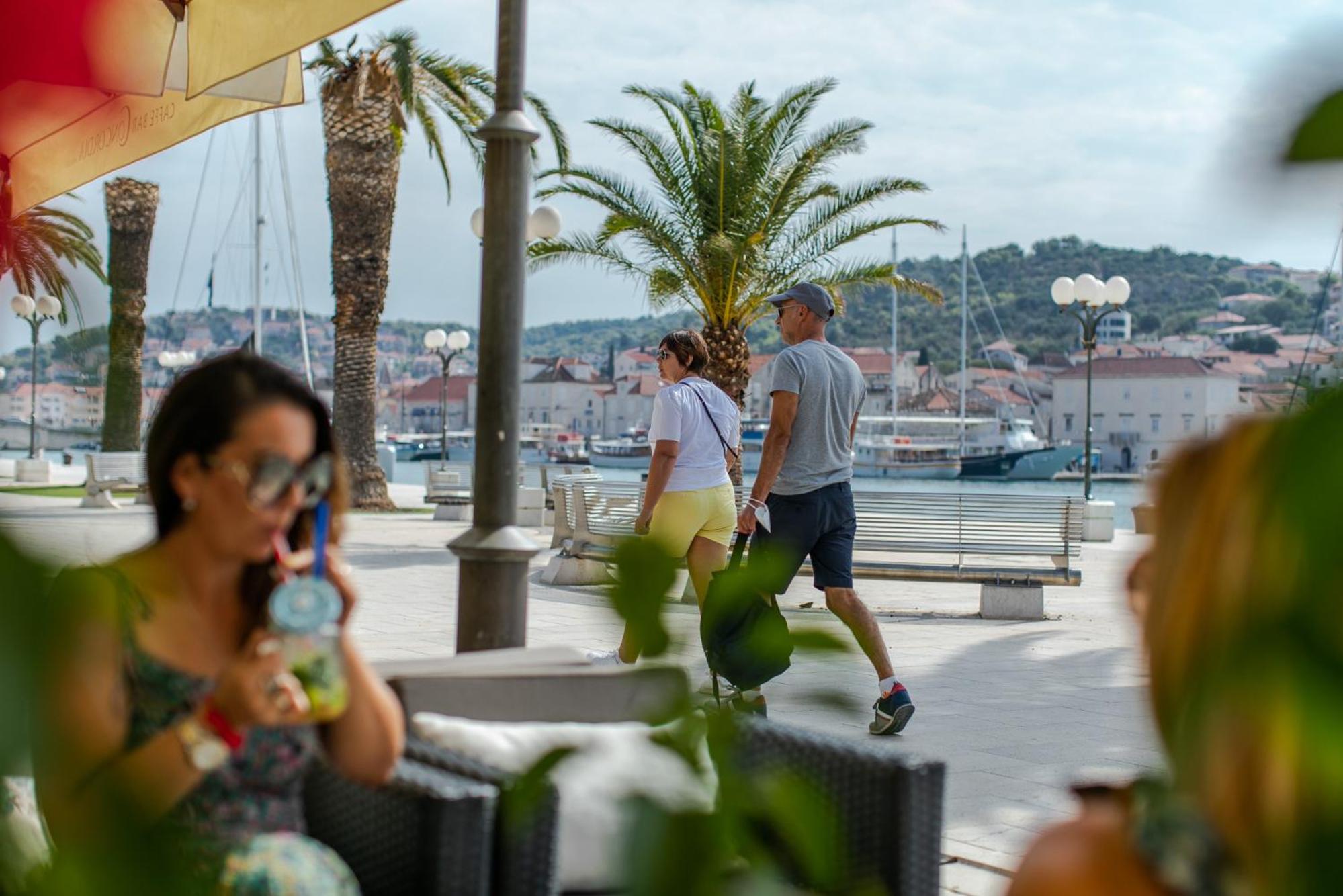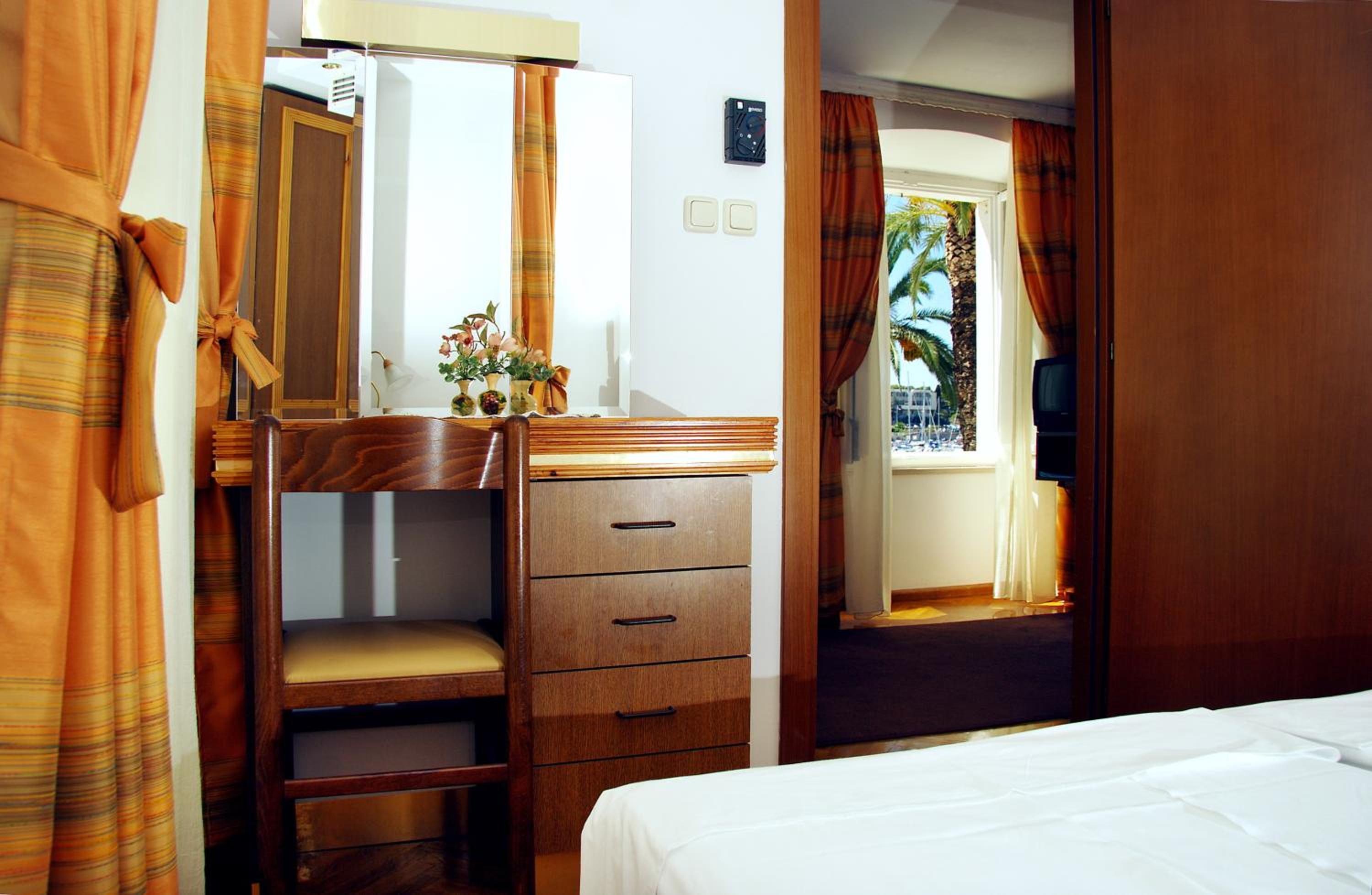 La situation exceptionnelle. Le port est aux pieds de l'hôtel ainsi que la promenade piétonne le long du quai,la vieille ville également. La gare routière et les taxis baots sont à 5 mn à pieds (1/2 h pour accéder à l'aéroport ou à la ville de Split) . Accès aux plages d'Okrug , l'île en face, en bus 15mn, à pieds 30 mn. La chambre environ 20 M2 avec sa salle de bain est très propre, la literie très confortable et donne sur la promenade du port. La fenêtre bien isolée protège du bruit extérieur.