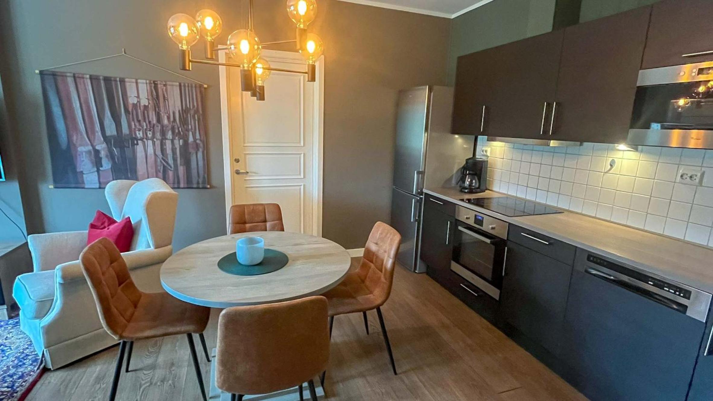 Apparment had many small faults and poor lighting in the bedrooms. Wall light in the lounge/kitchen didnt work as the lead didn't reach the socket so just decorative.Just enough pots but not enough oven dishes/ baking trays and no oven gloves. Dishwasher worked but didn't wash well.