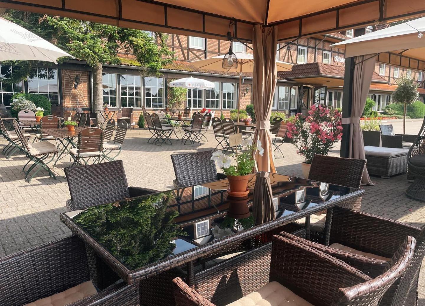 Haags Hotel Niedersachsenhof is nestled next to the picturesque Stadtwald forest in Verden, offering a serene escape for nature lovers. The elegant rooms boast classic décor and dark wooden furniture, providing a cozy and comfortable stay.