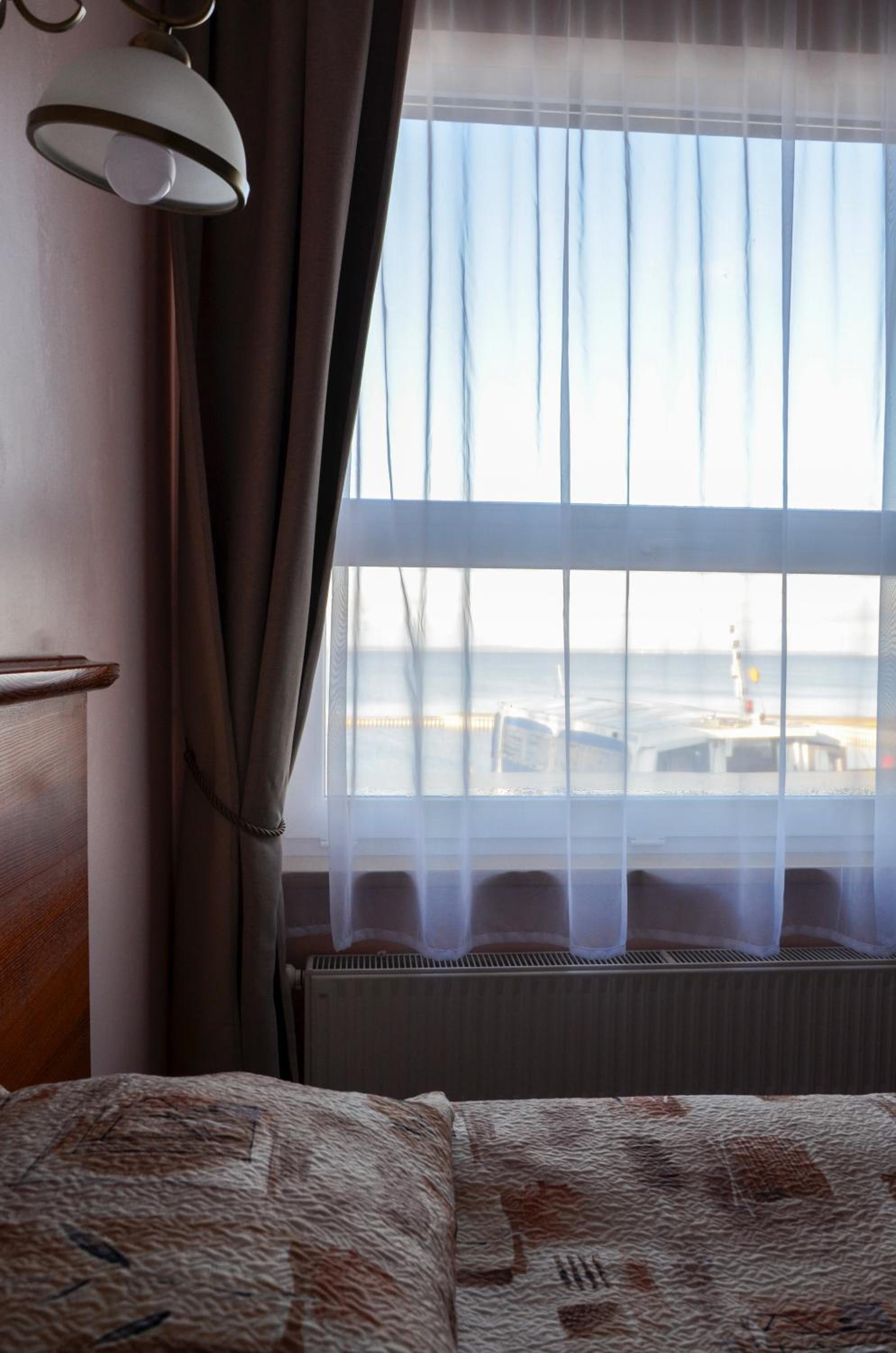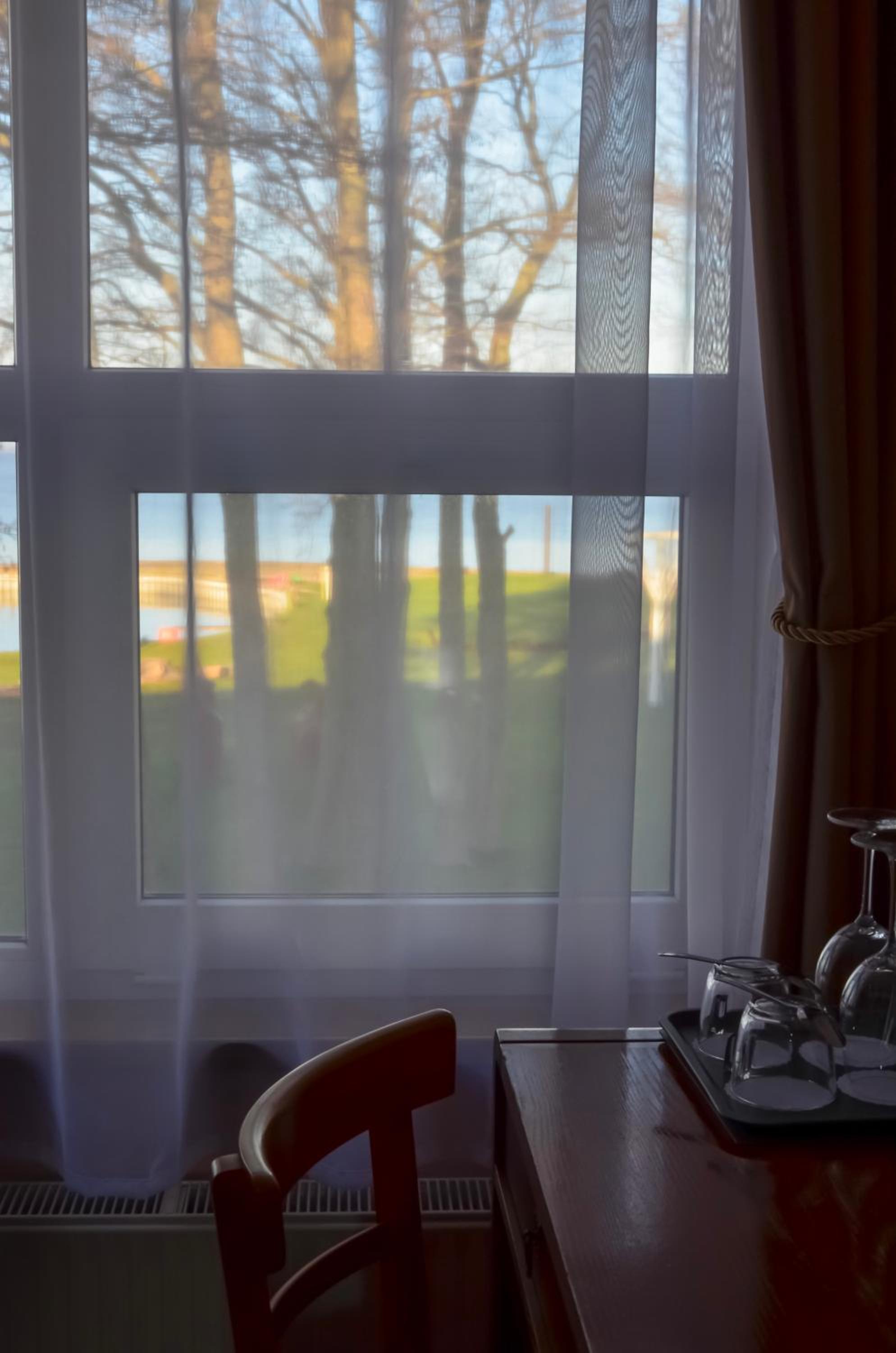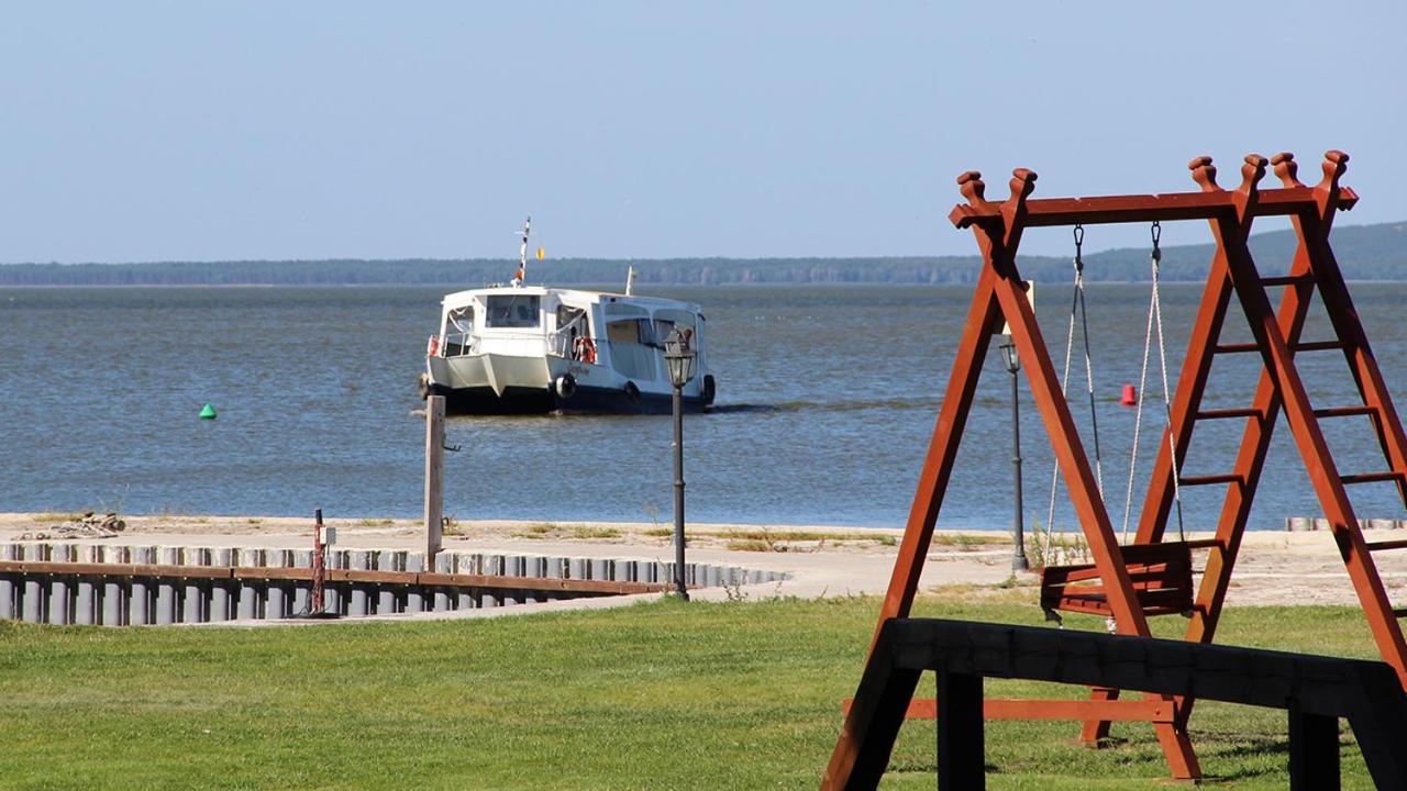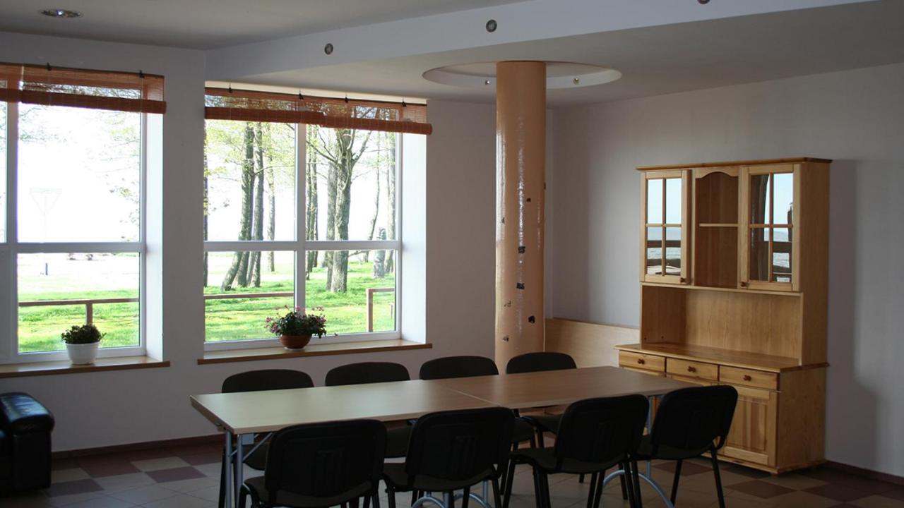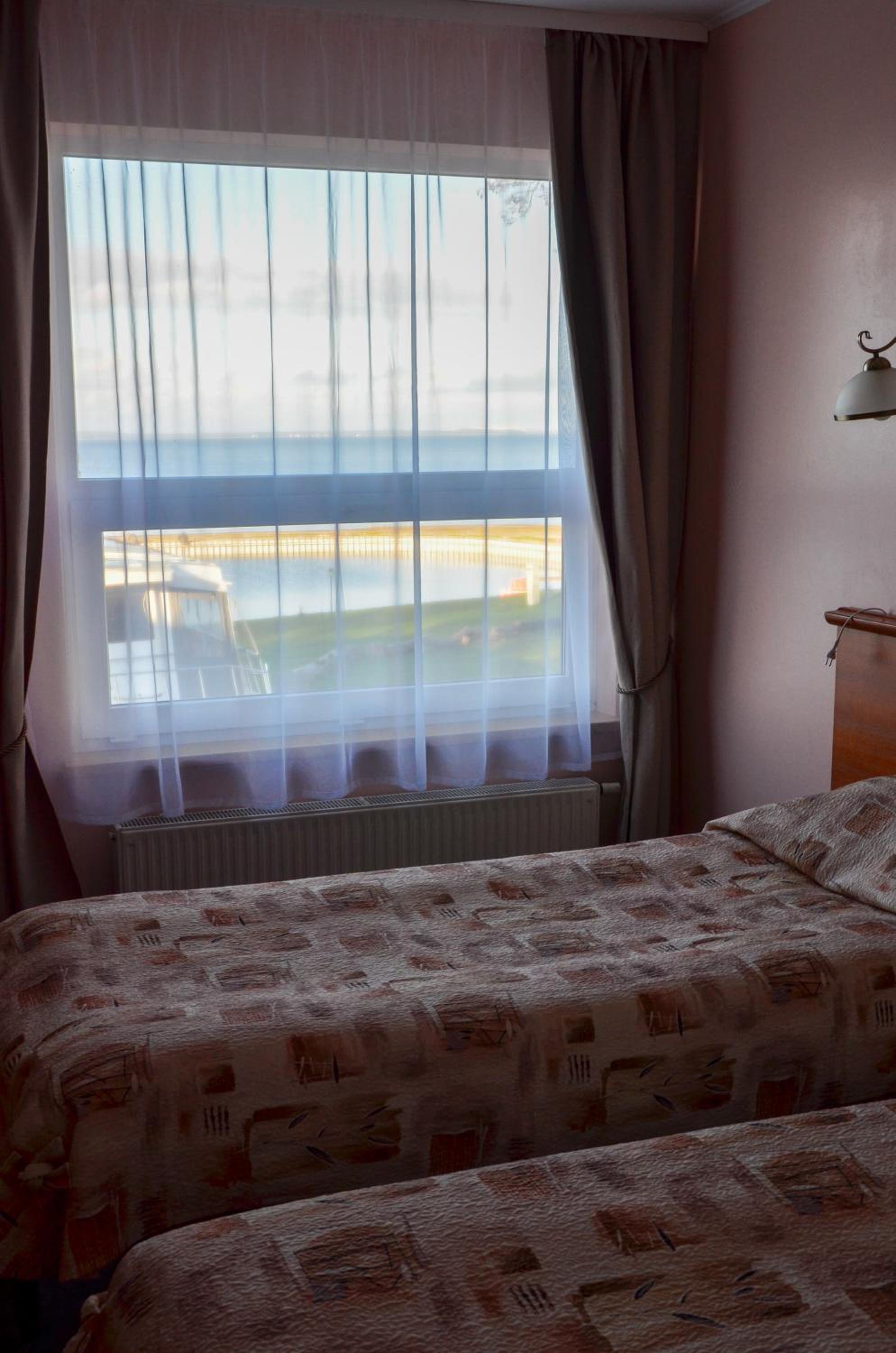 Direkter Blick auf das Kurische Haff und die Wanderdünen der Nehrung aus dem Zimmer, Ausstattung u.a. mit Kühlschrank und Wasserkocher, was beides sehr hilfreich war, Unterstellmöglichkeit für die Fahrräder, netter Service, es fehlte an nichts. Absolut empfehlenswert, auch Übernachtung im Zelt, Bungalow etc. möglich. Wer möchte, kann direkt vom Hotel mit einer kleinen Fähre nach Nidden auf die Nehrung fahren.