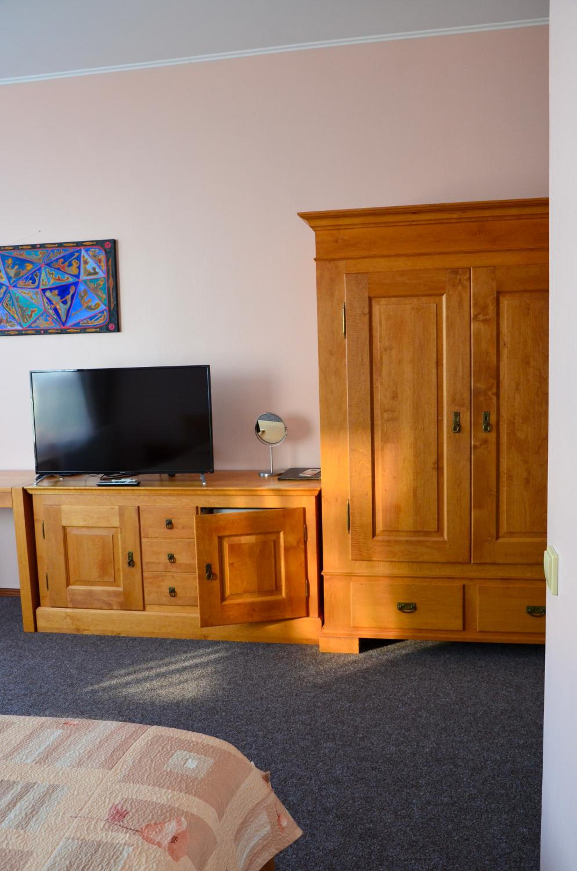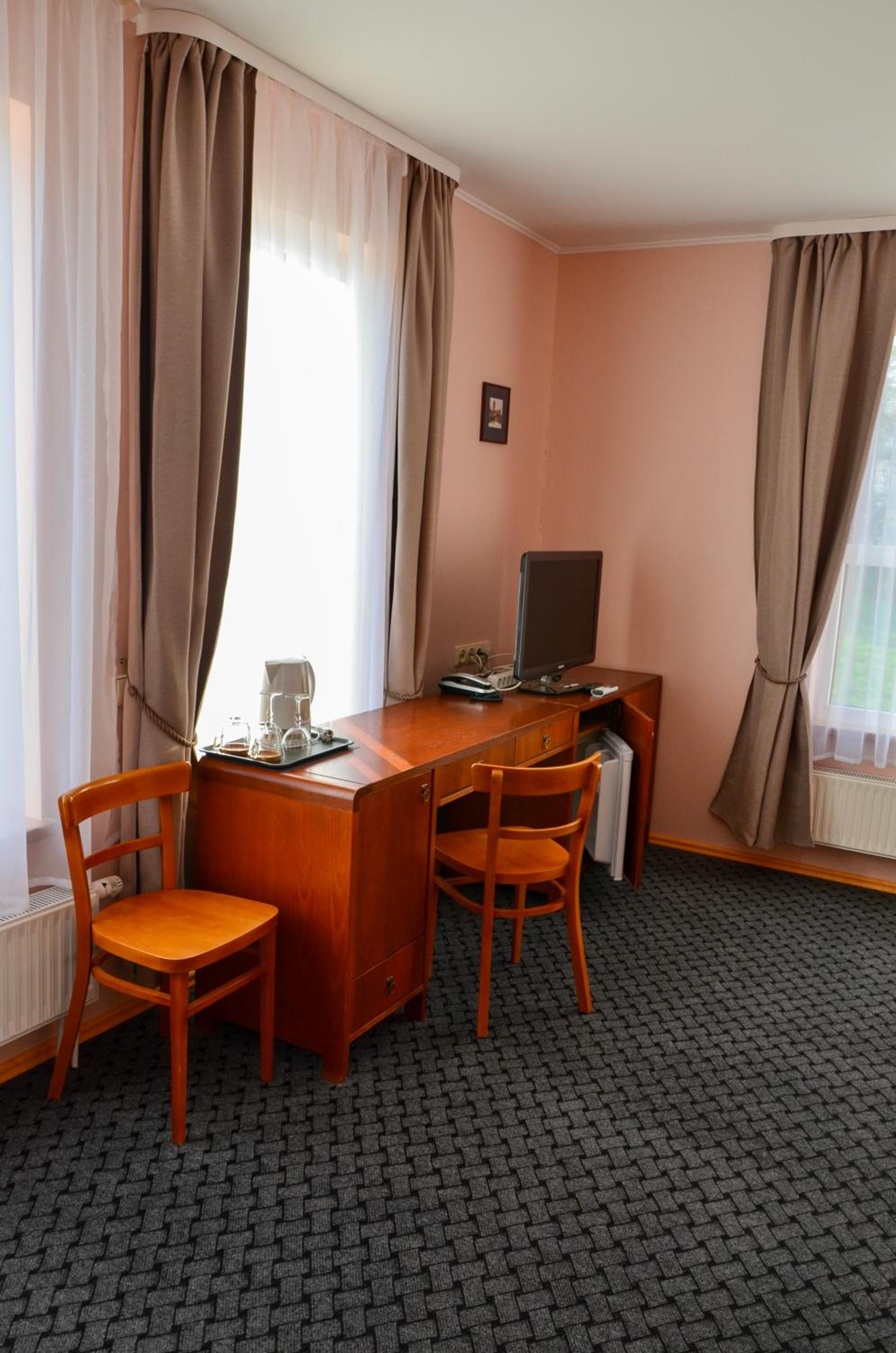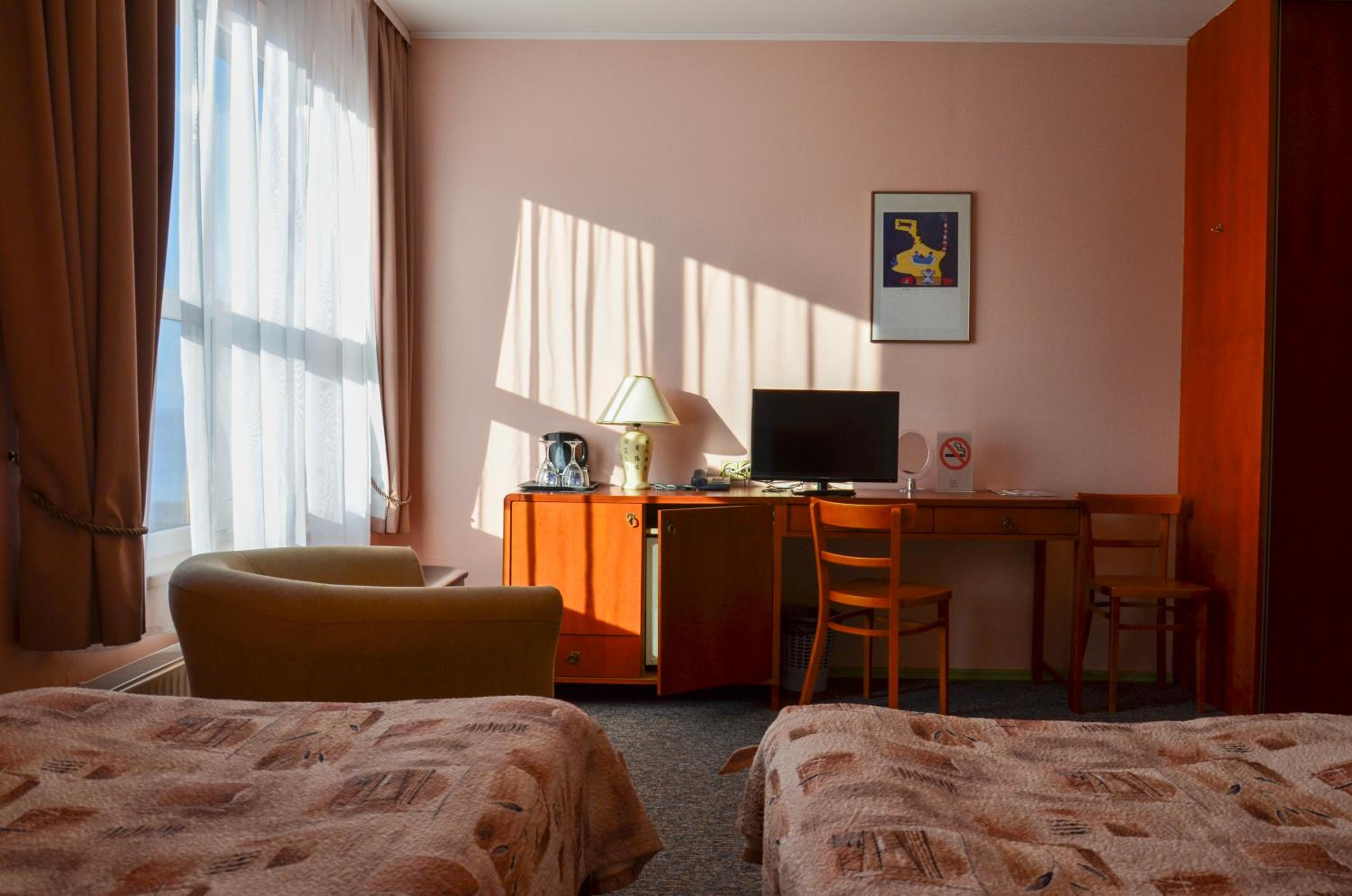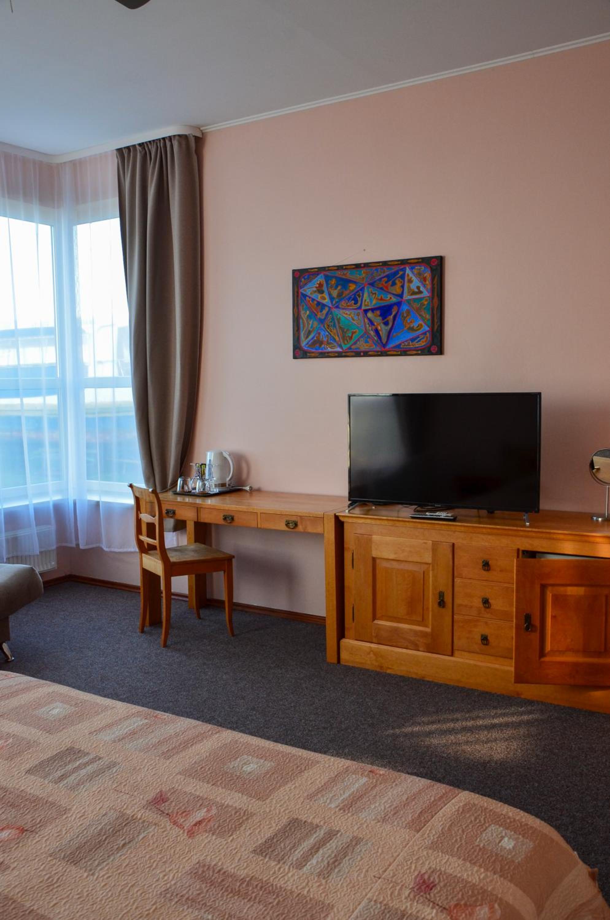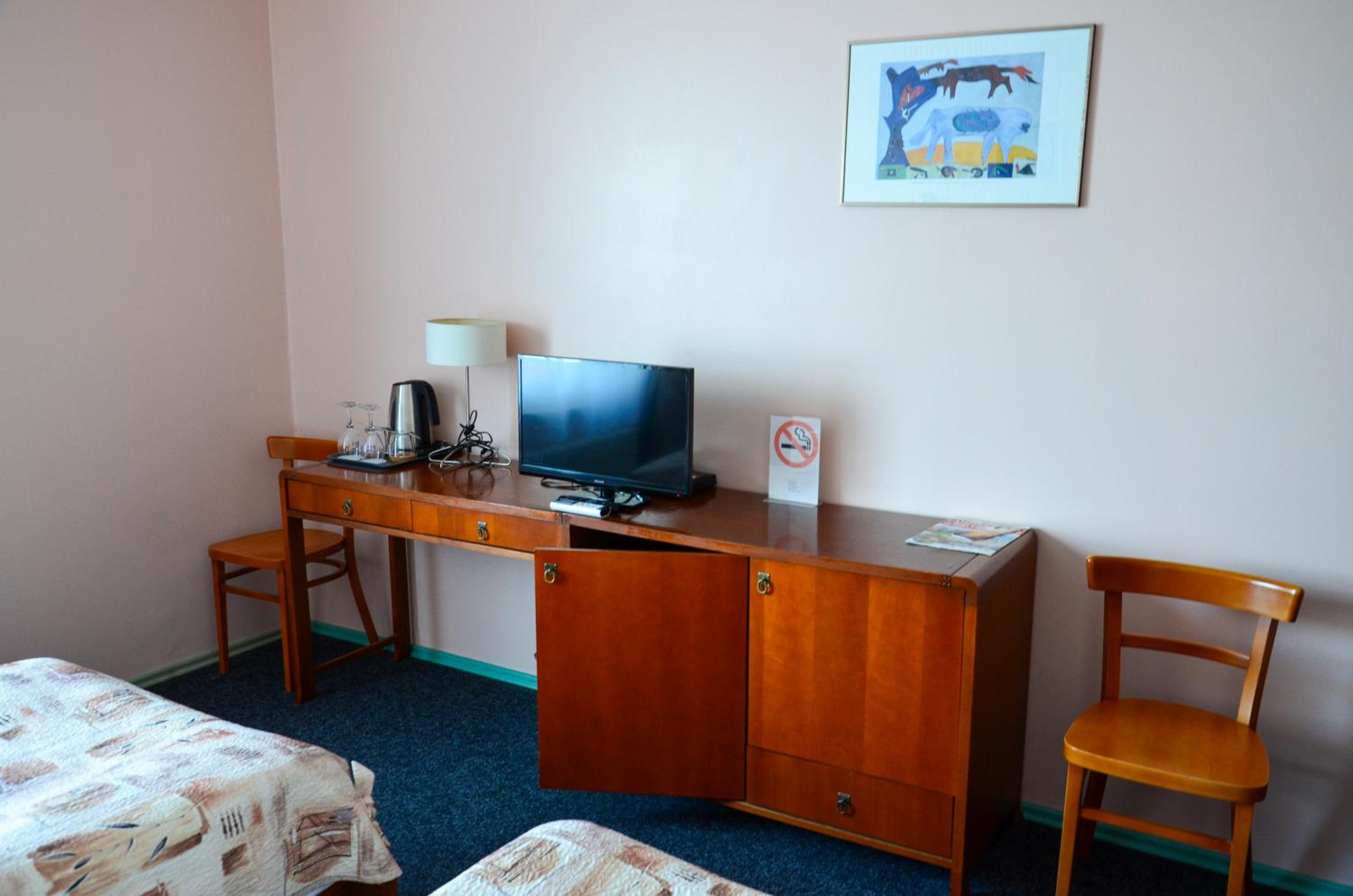 Direkter Blick auf das Kurische Haff und die Wanderdünen der Nehrung aus dem Zimmer, Ausstattung u.a. mit Kühlschrank und Wasserkocher, was beides sehr hilfreich war, Unterstellmöglichkeit für die Fahrräder, netter Service, es fehlte an nichts. Absolut empfehlenswert, auch Übernachtung im Zelt, Bungalow etc. möglich. Wer möchte, kann direkt vom Hotel mit einer kleinen Fähre nach Nidden auf die Nehrung fahren.