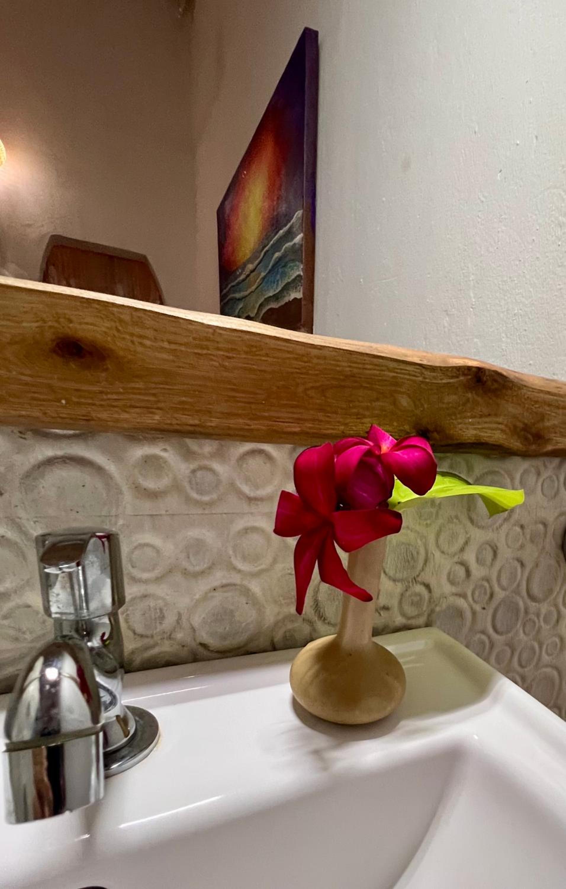 The peaceful setting while sitting on the balcony, overlooking trees with the sound of the waves in the background.