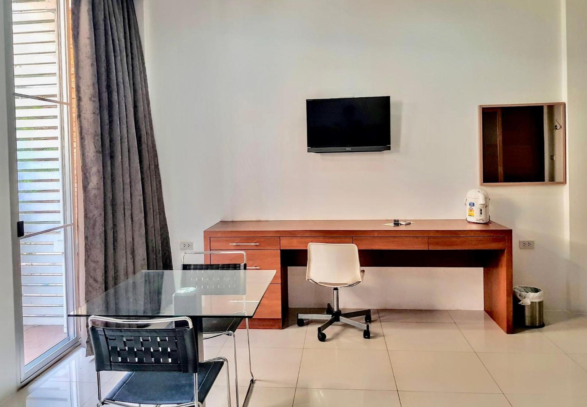 nice reception, polite efficient staff. room was dated but clean. amenities are adequate, with smartTV and a hot water dispenser. plenty of hot water in shower. everything works well. very close to green line station N14. 20mins drive to airport. bfast for 150B next door (pretty average but polite staff)