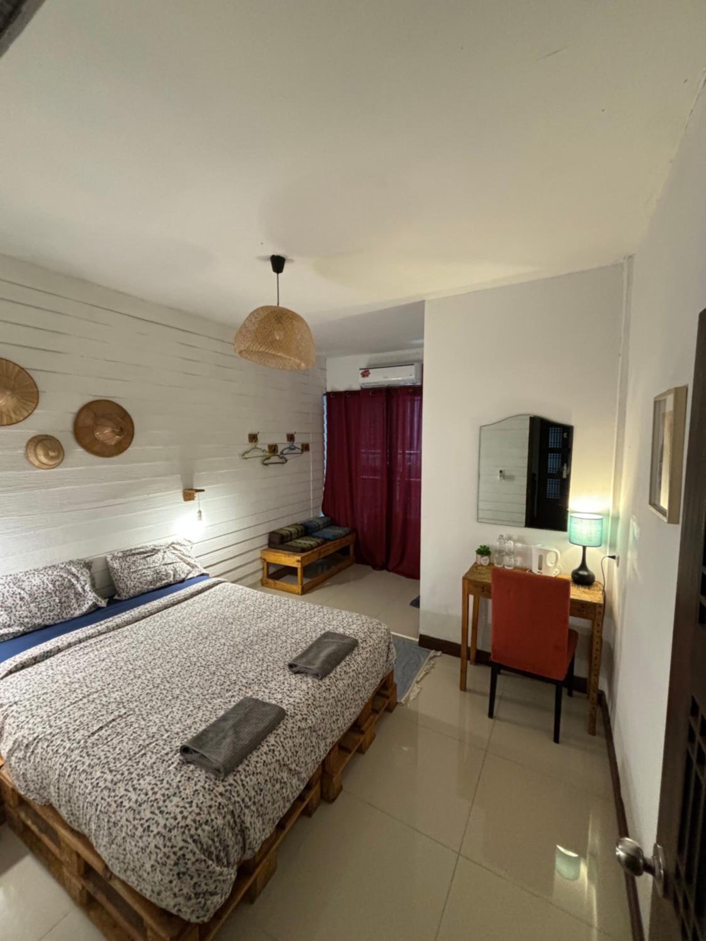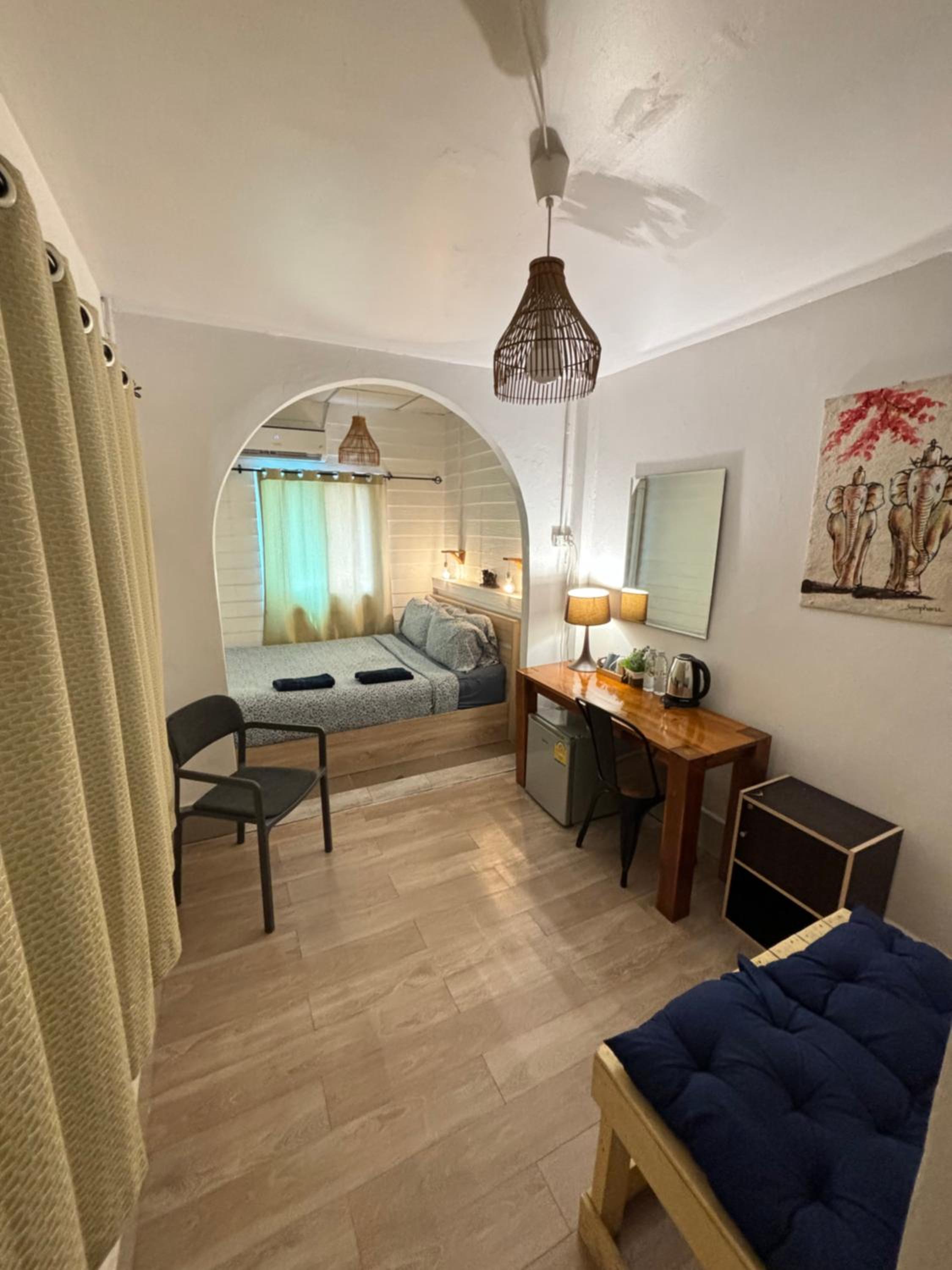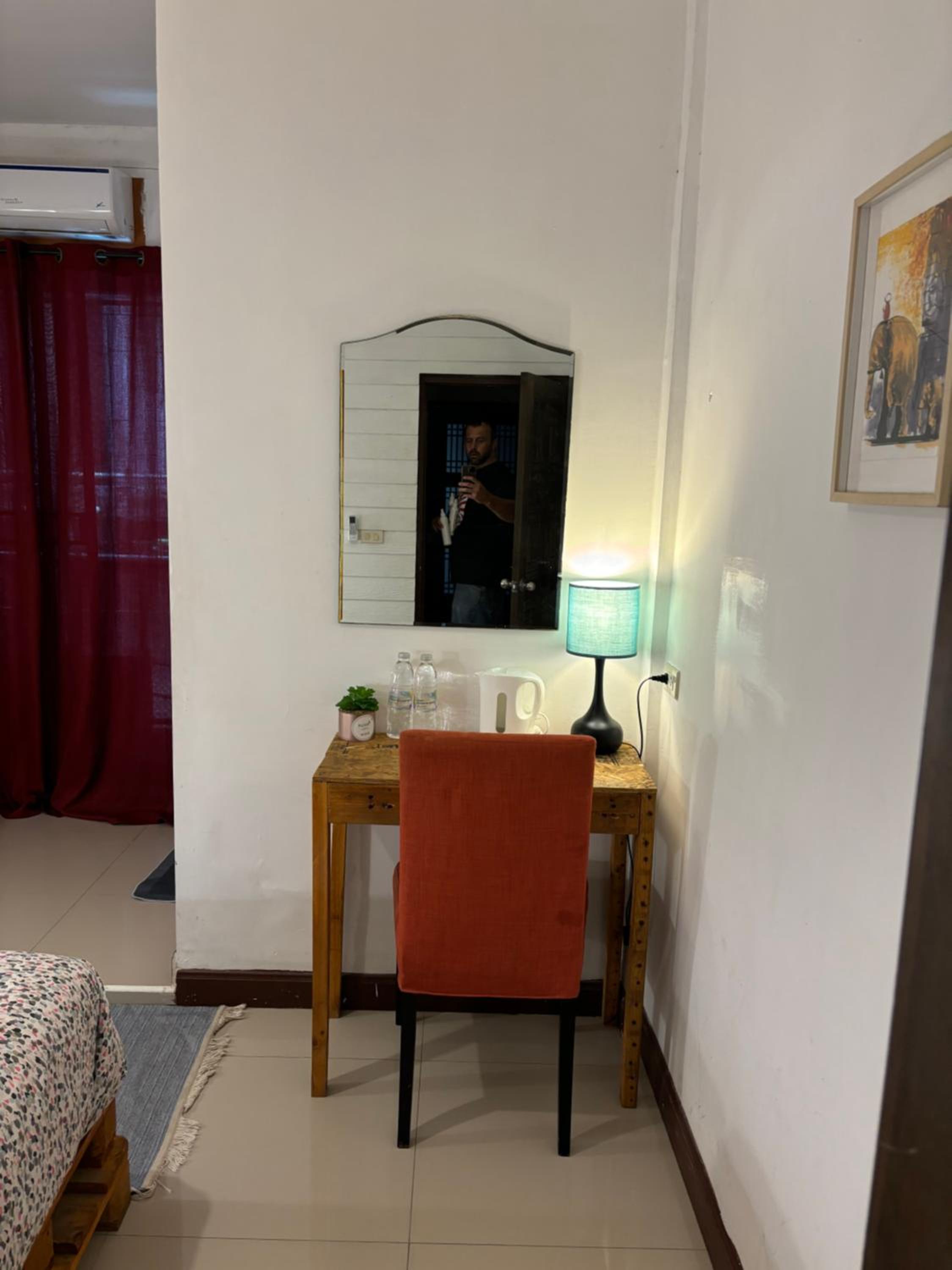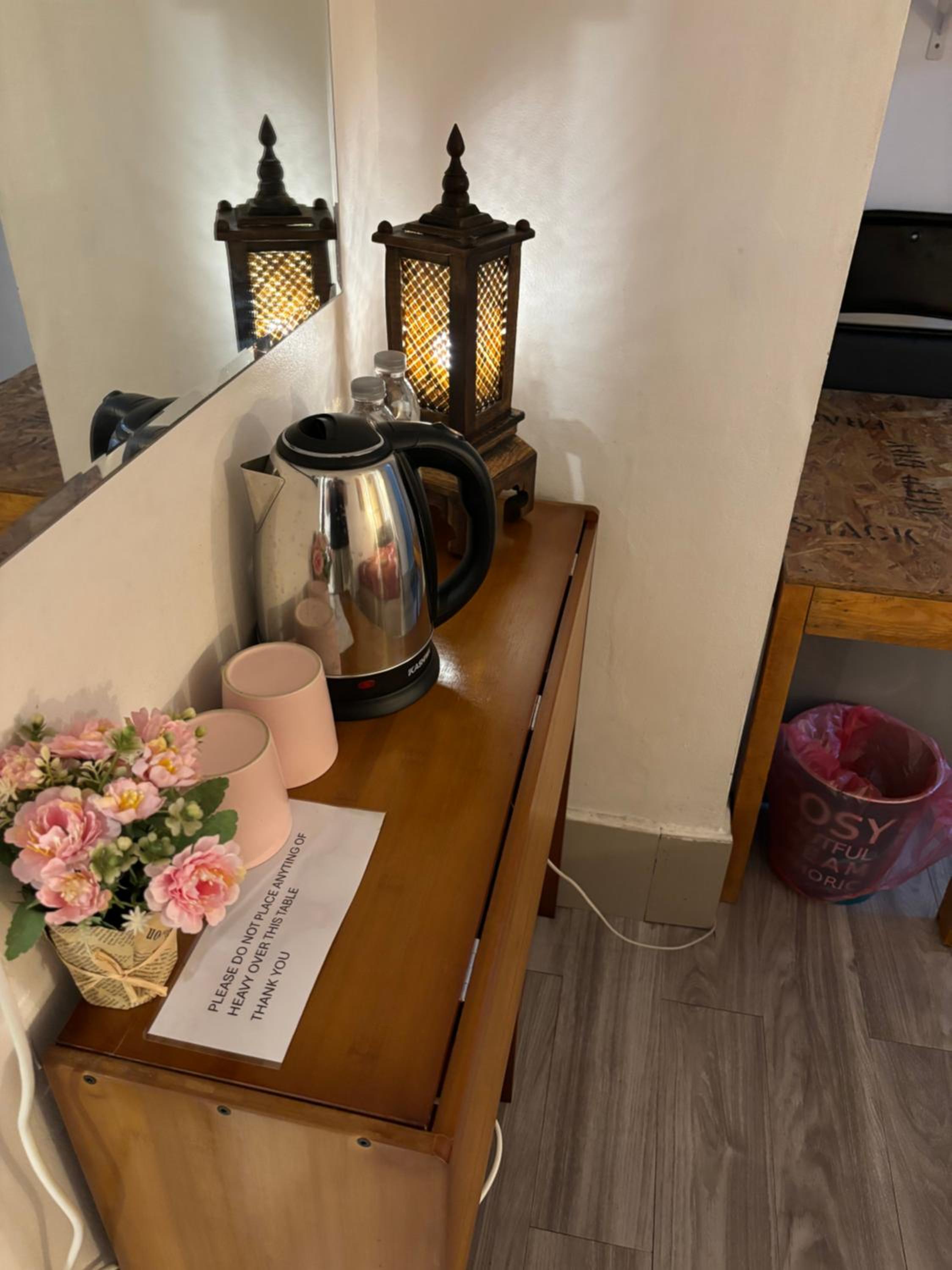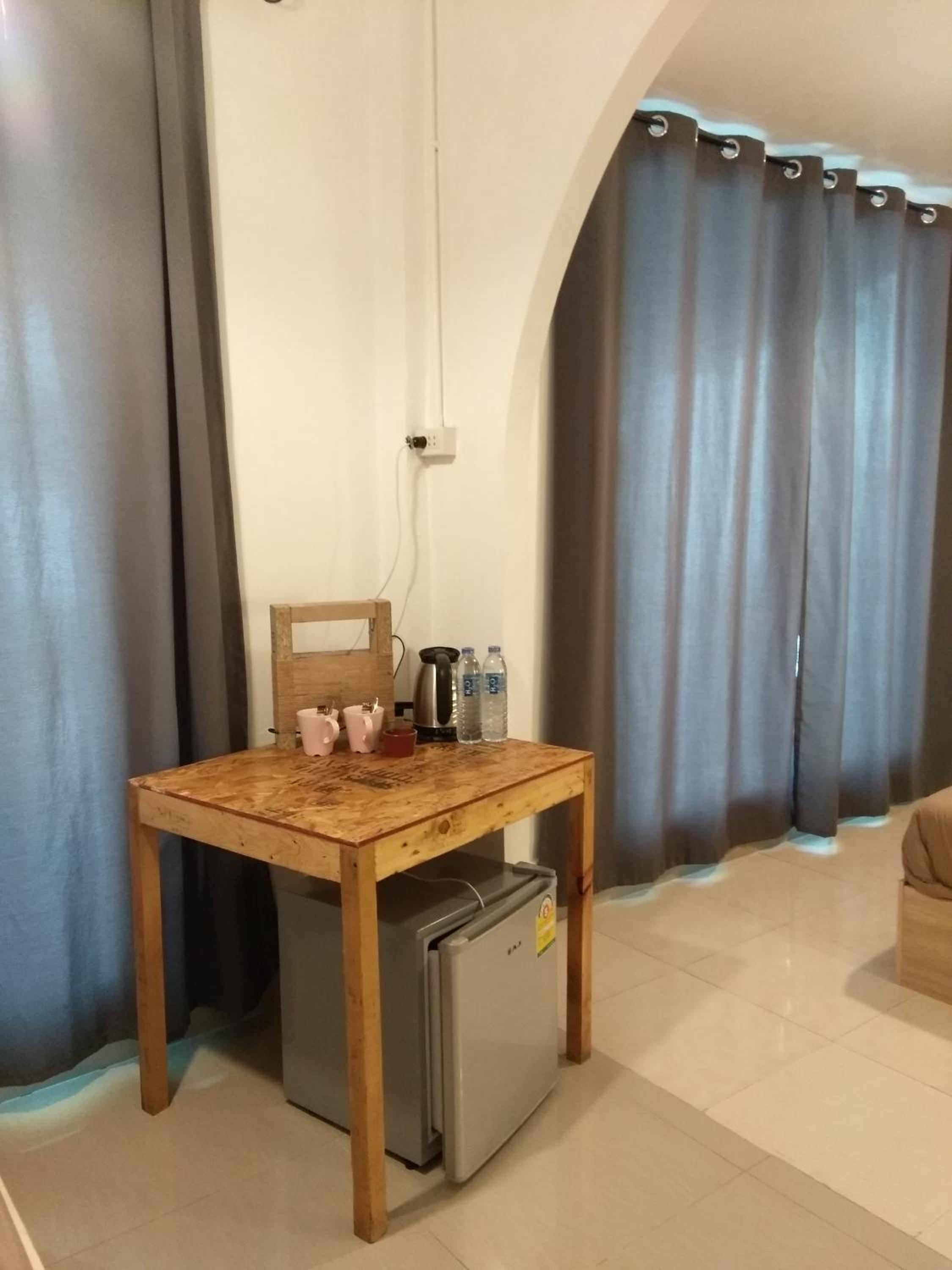We booked a room for 4 nights. We stayed one night but couldn't stay any longer. Not our kind of place. There were no facilities. No tea or coffee maker, no glasses, no cups. The mini bar had nothing in it. No room service, by that I mean towels etc weren't changed. The location was poor, very little nearby. A water pipe ran across the entrance, about 2 inches above the floor. The stairs up to our room were very dark, narrow and uneven steps, a bit dangerous especially when carrying rucksacks etc. we left after one night.