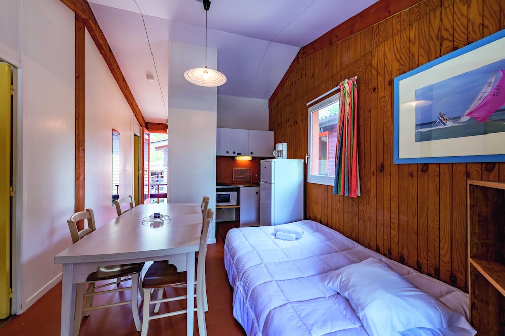 Accueil très sympa, à la réception, flyer avec le plan du domaine, répond à toutes nos questions, et très disponibles. Le chalet que nous avons occupé, était très bien, pas de vis à vis, face à la forêt, terrasse très agréable, chalet très propre, tout ce qu'il faut pour cuisiner, aménagement des chambres parfait, literie confortable. Prévoir juste la caution demandée par empreinte bancaire à l'arrivée mais restituée très rapidement à la fin du séjour. Draps fournis, pensez juste à amener vos serviettes et torchons( autrement facturés) et du papier WC(non fourni). Tout est cependant indiqué dans la réservation... donc aucune mauvaise surprise... Nous avons passé un excellent séjour, merci pour cet accueil à tout le personnel. Endroit parfait au milieu de la nature pour se reposer, et à proximité du lac et du Centre ville. Parking pour se garer sur la Résidence gratuit, et équipement sur place pour amener vos valises sur votre chalet si loin dans le domaine. Isabelle S