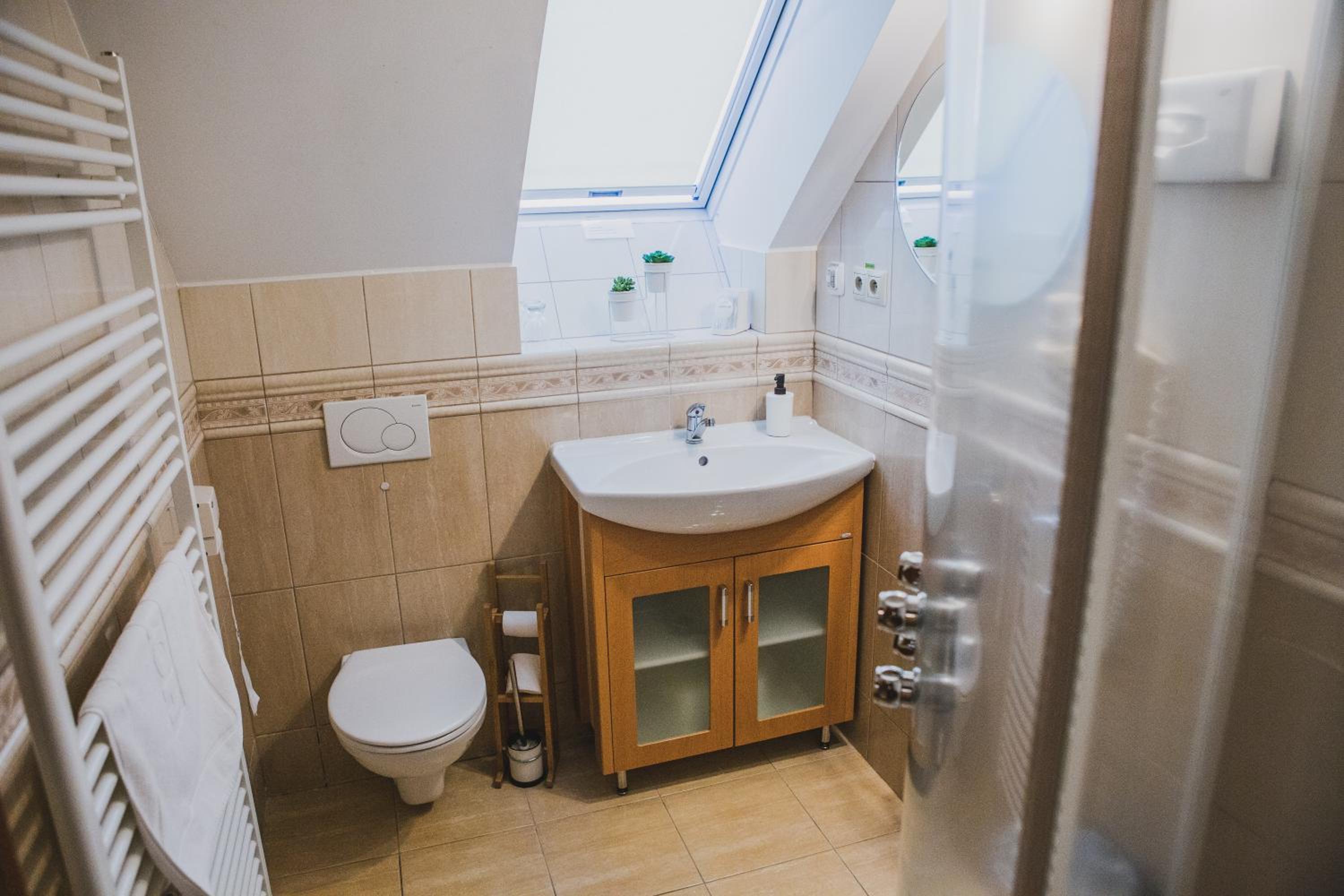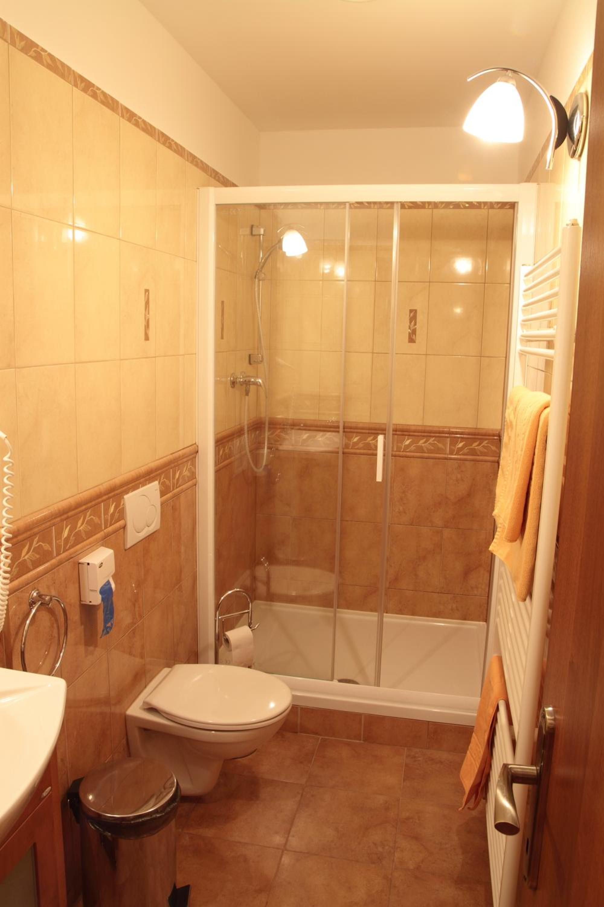 Prijemne ubytovanie priamo v centre, bohuzial v starsej budove bez vytahu. Kedze sme blli s malym babatkom, kocik bolo potrebne neustale vynasat. Vybavenie izby dobre a ciste. Ranajky dobre. Bohuzial cena je vysoka, ale to v Bojniciach asi vsade.