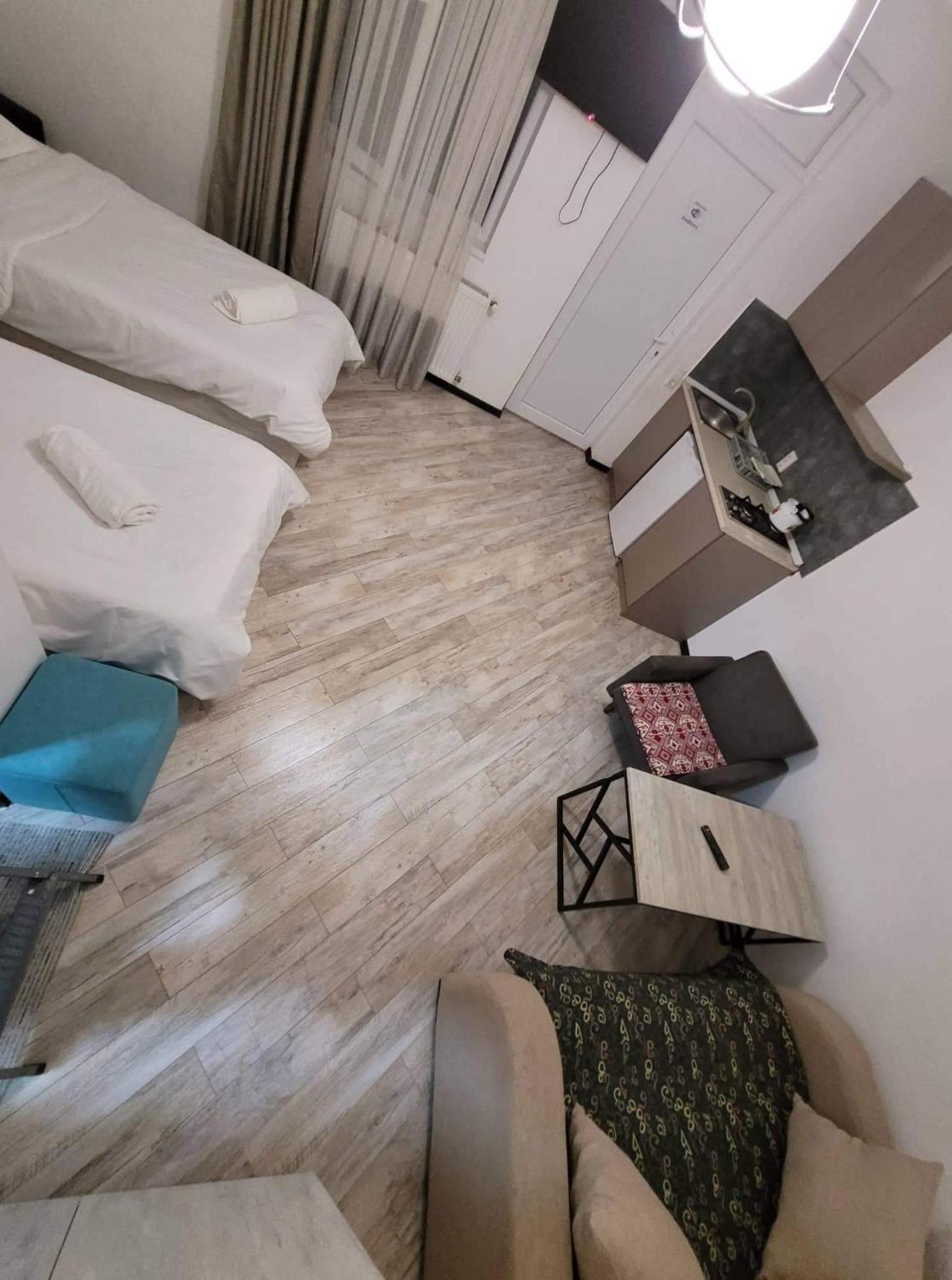 The room we had is on second flor with a cute balcony, clean, well mantained. There is everything you need around (grossery, hsops, cafés etc) and it's very close (15 min) from the main Borjomi park, walking distance, as well as 5 min from the "small park". The hosts are absolutely kind and attentive. Very nice place to stay in family, in couple, or alone.