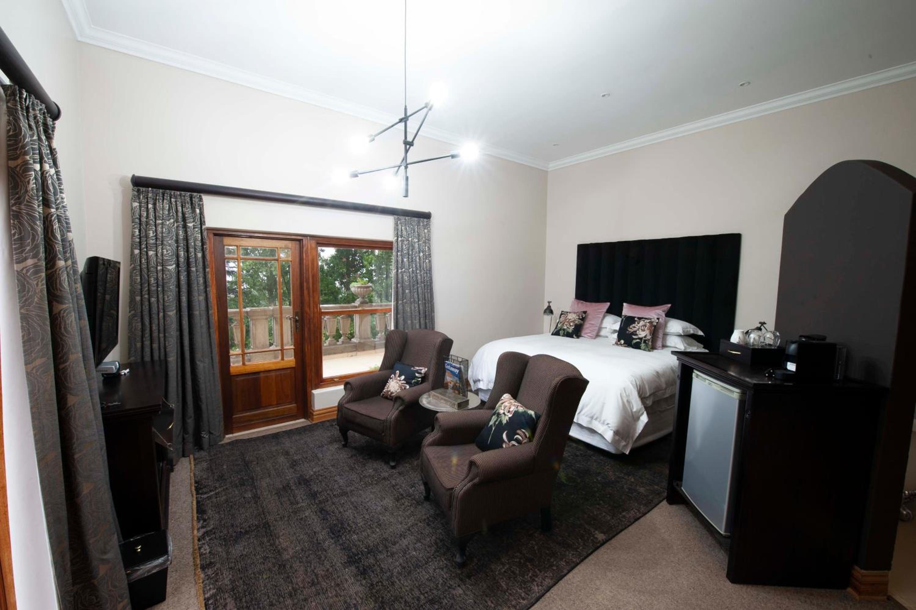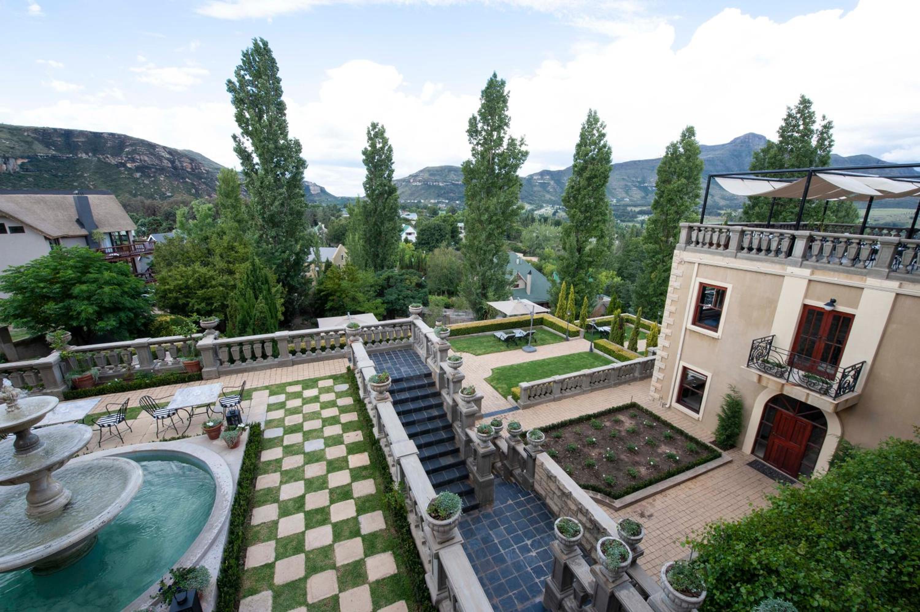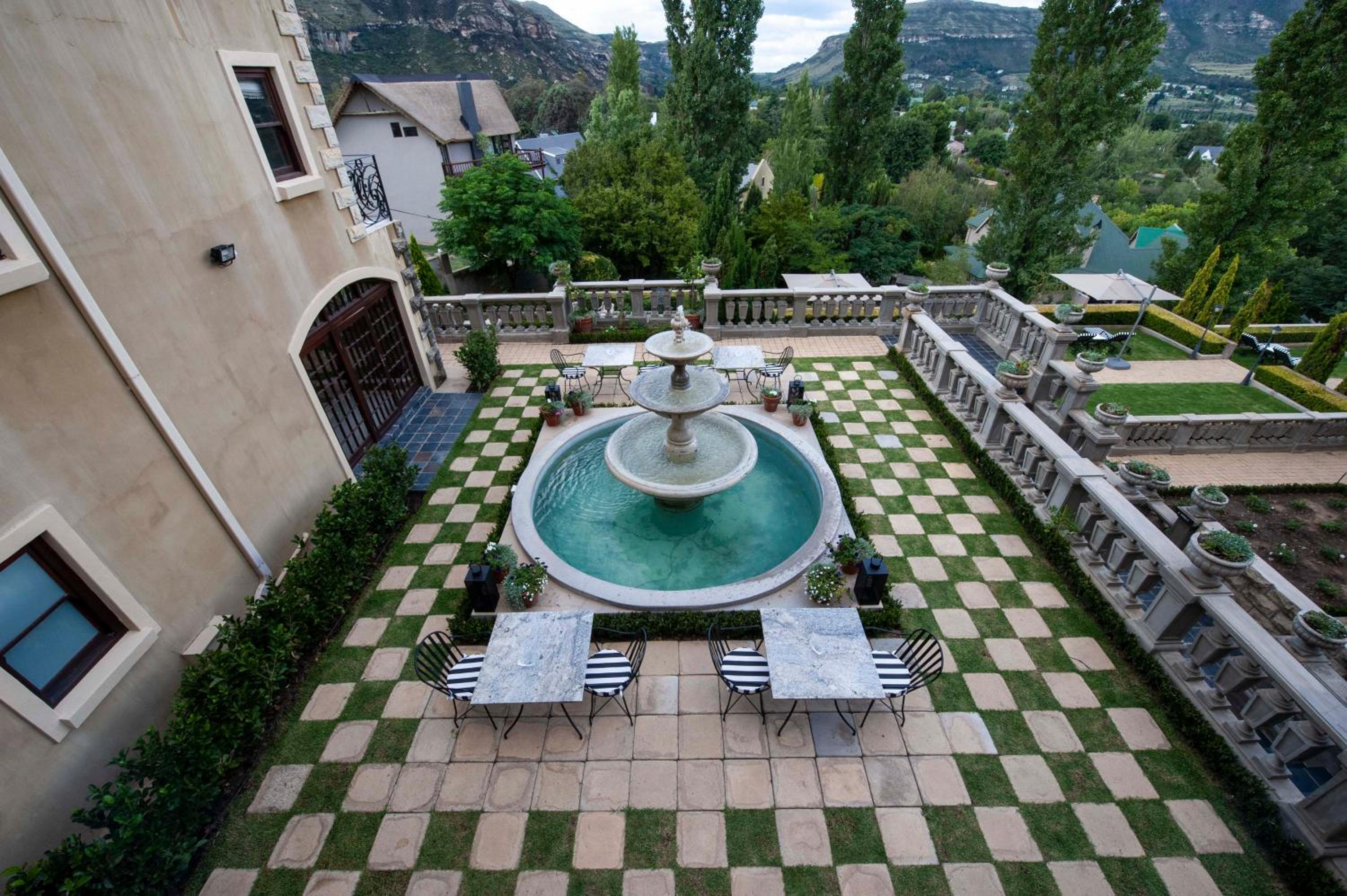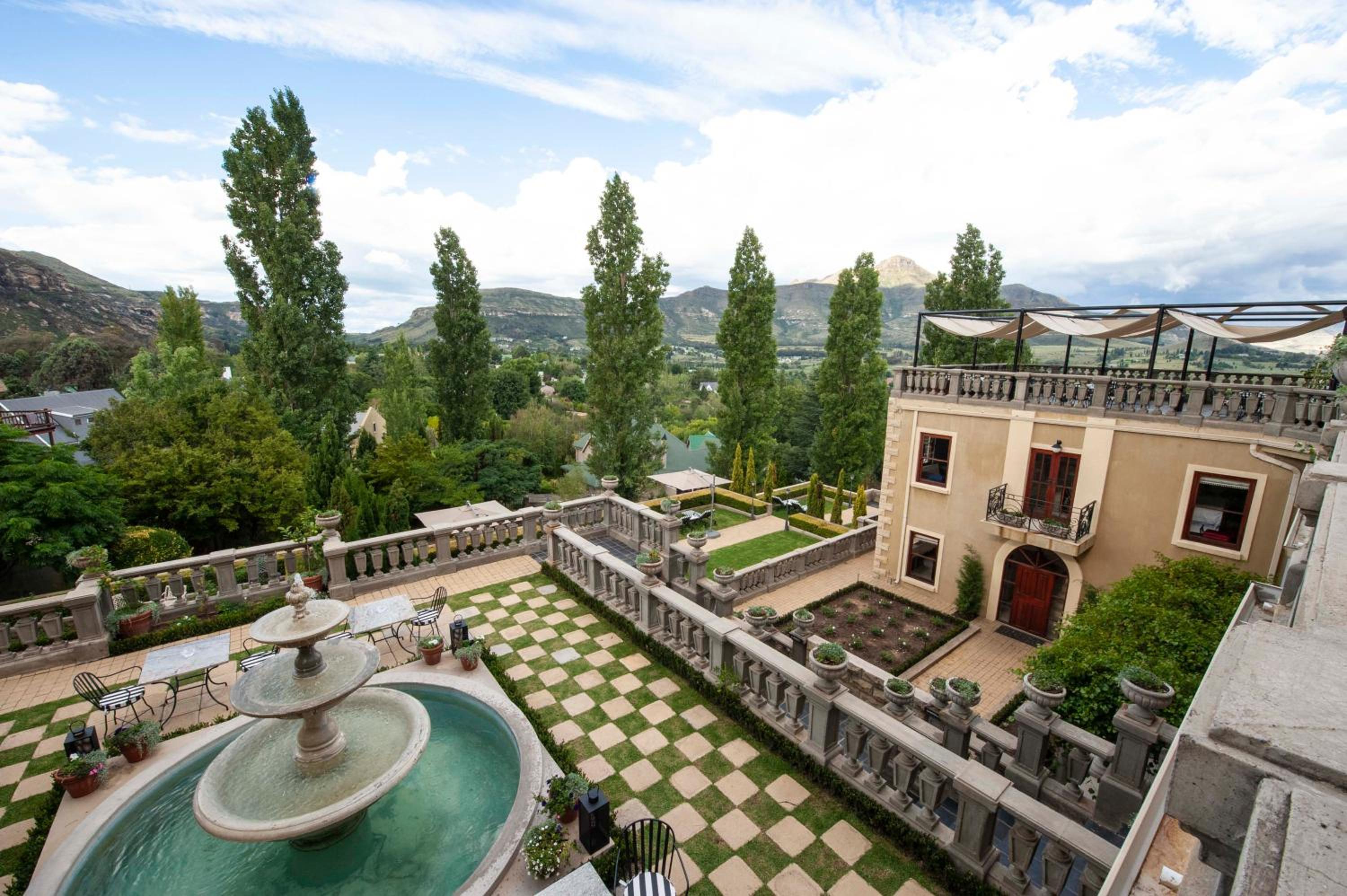 IL Castello, nestled in Clarens, offers elegant rooms with modern amenities like air-conditioning, flat-screen TVs, and private bathrooms. Some rooms even provide stunning mountain views from a private balcony.