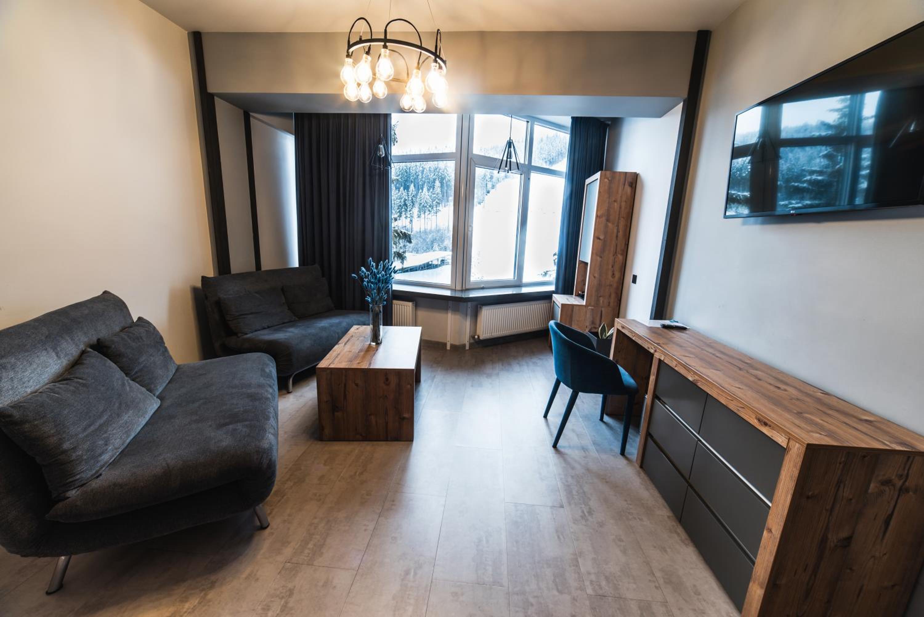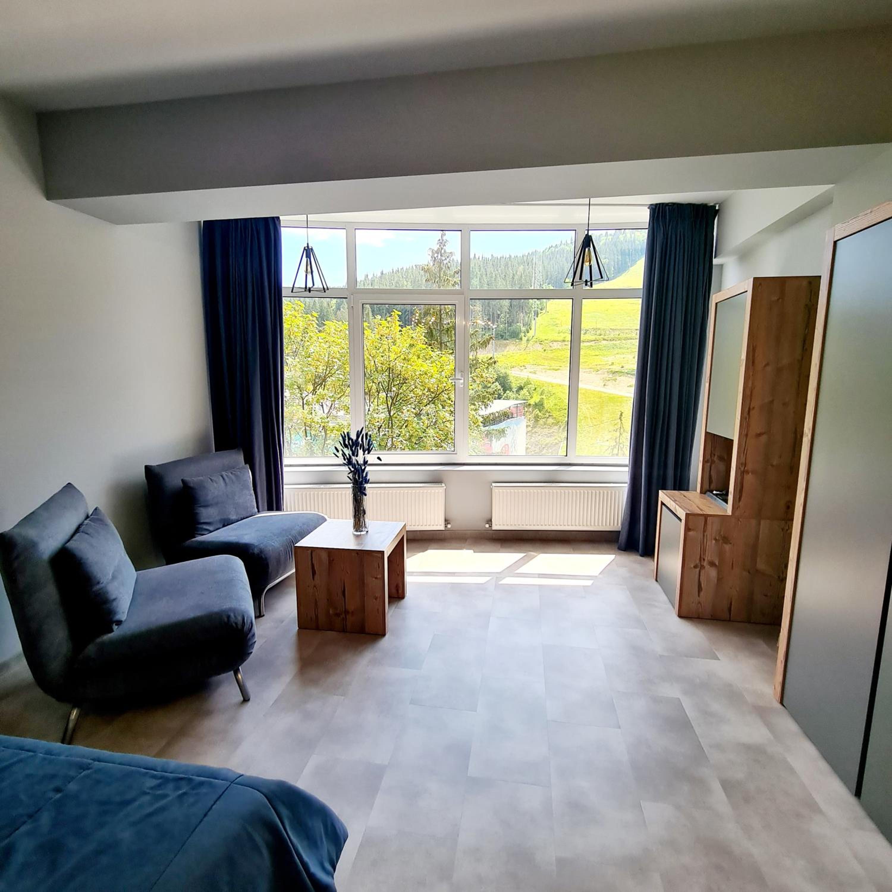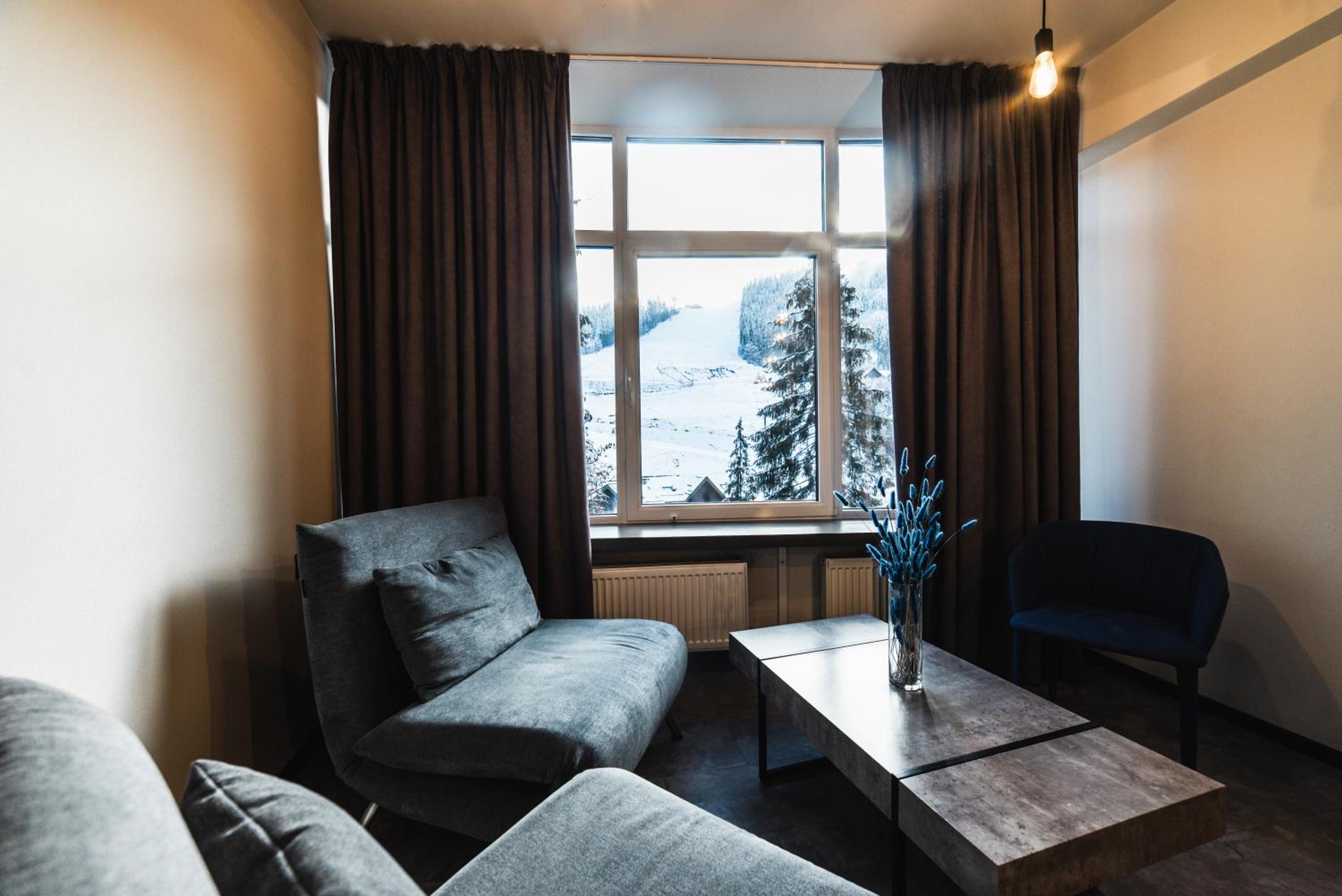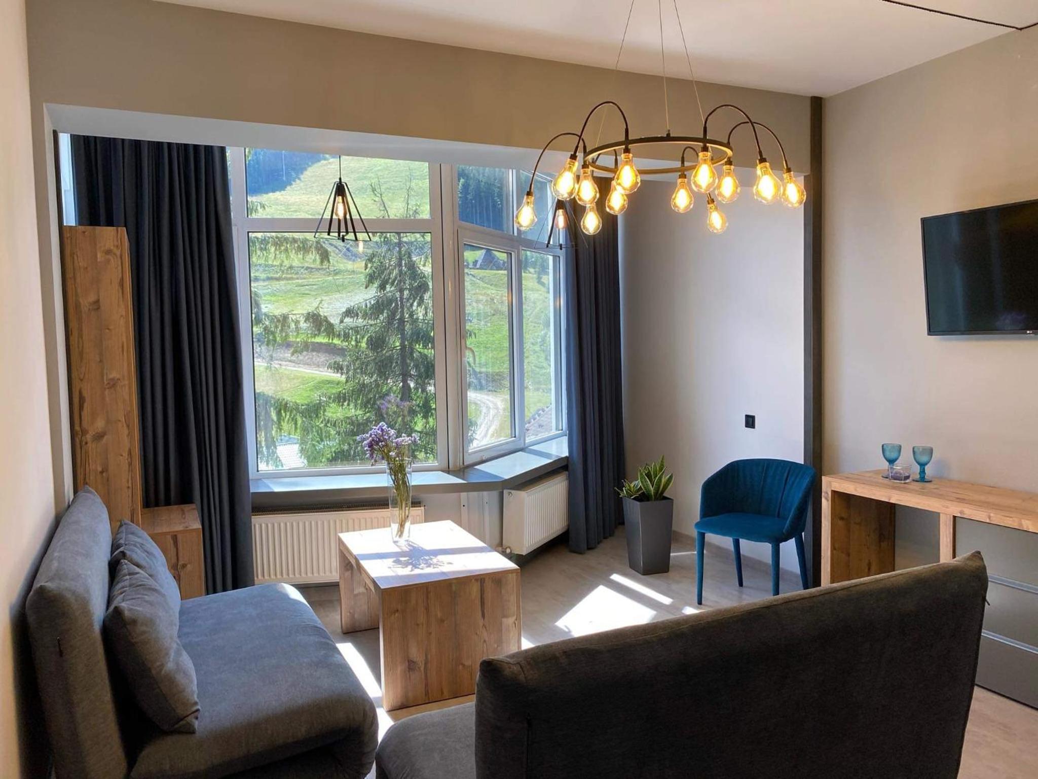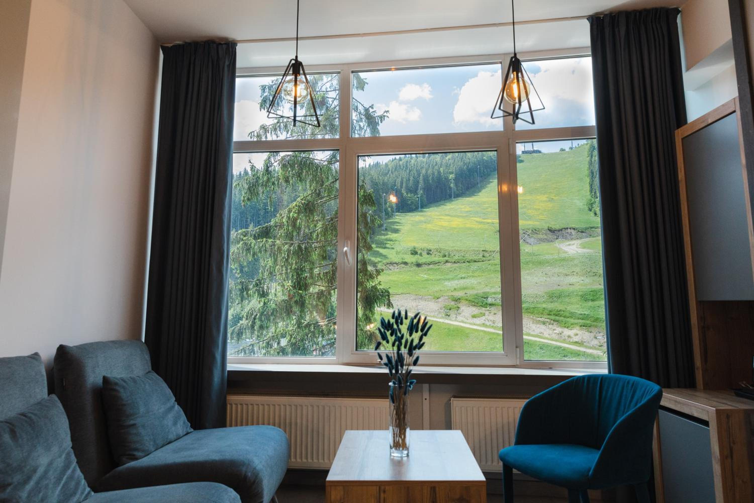 Located in Bukovel, BLUE mountain offers a luxurious stay with rooms featuring modern amenities like free WiFi, flat-screen TVs, and private bathrooms. Some rooms even boast stunning mountain views, providing a truly immersive experience.