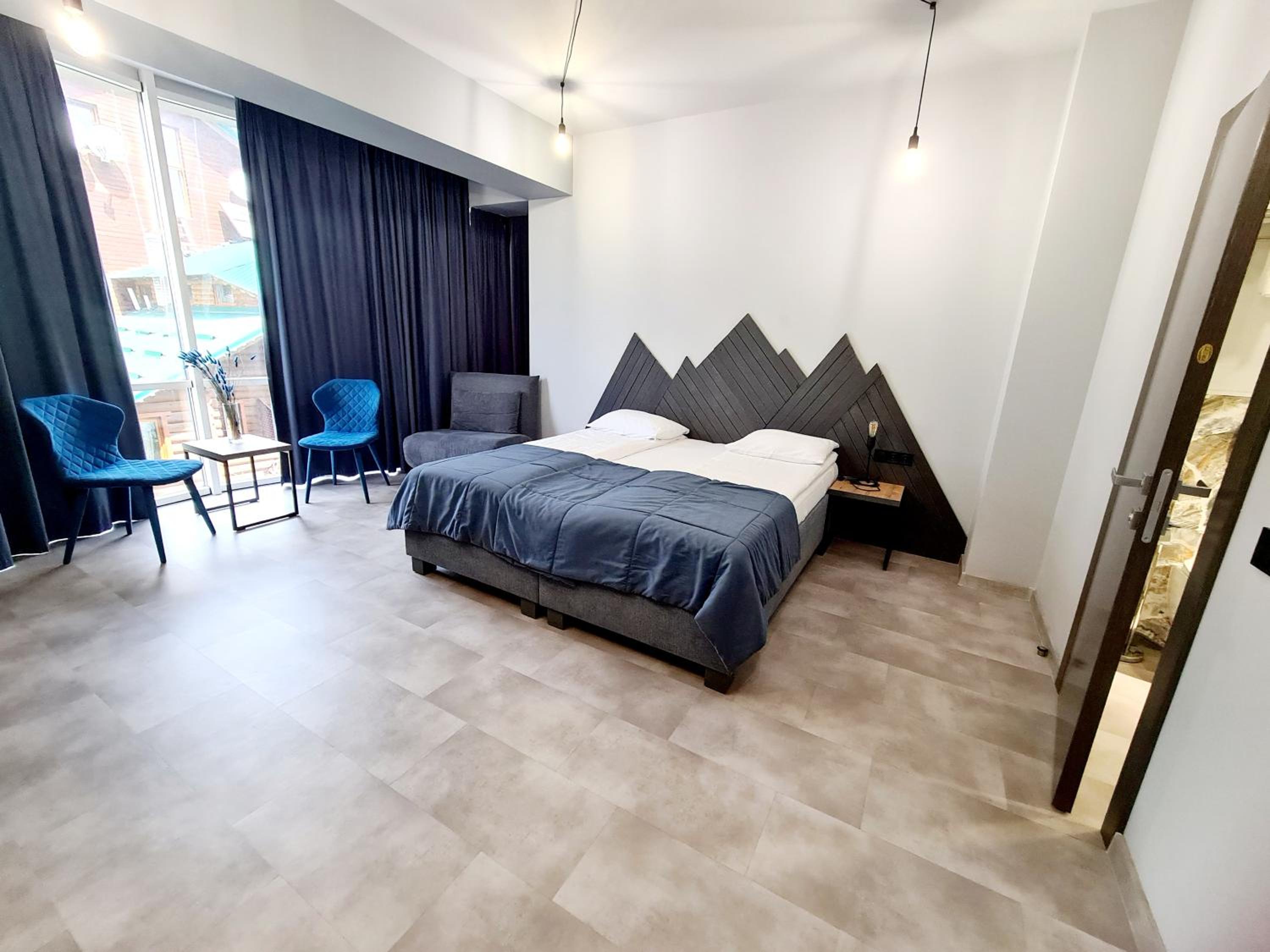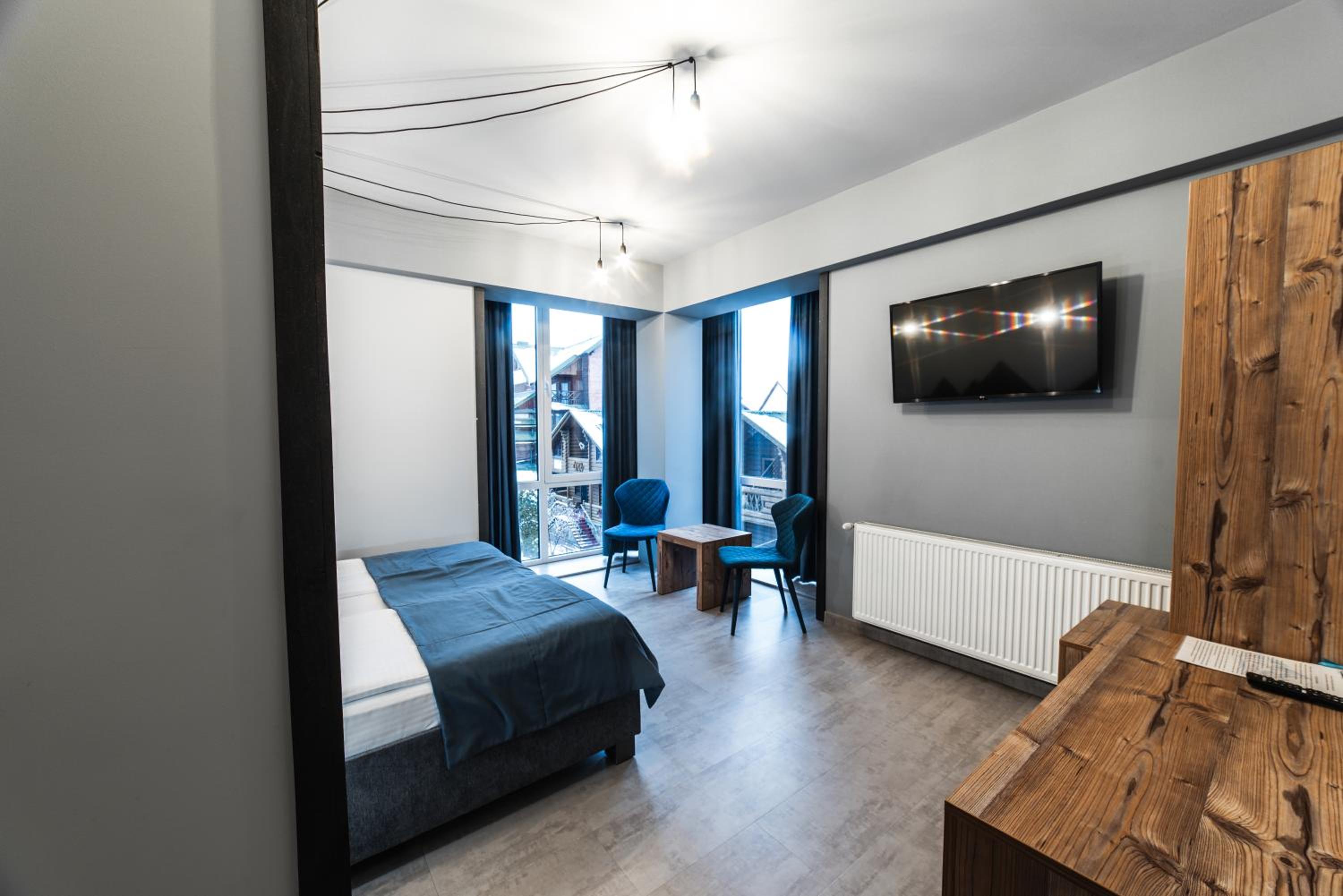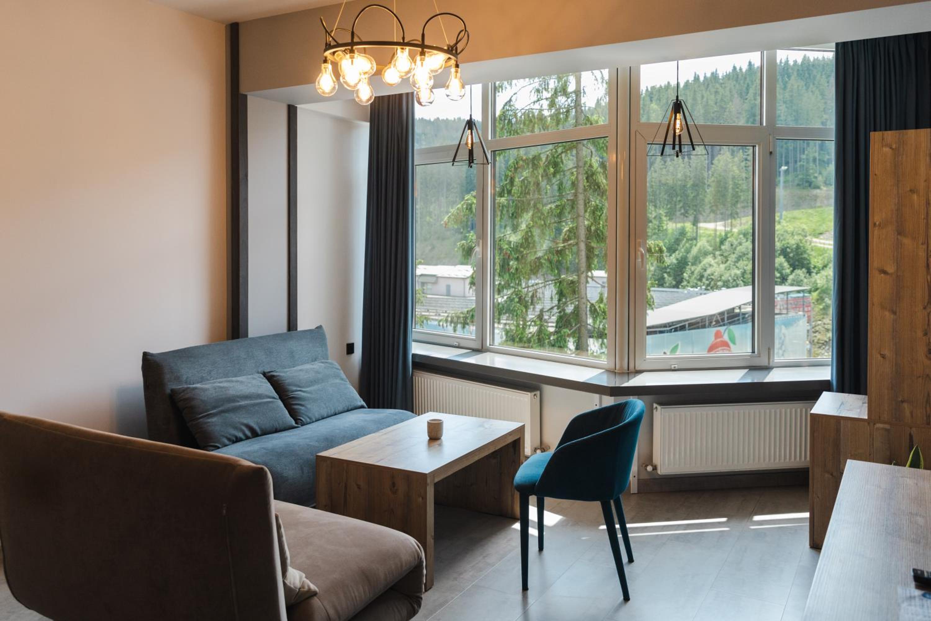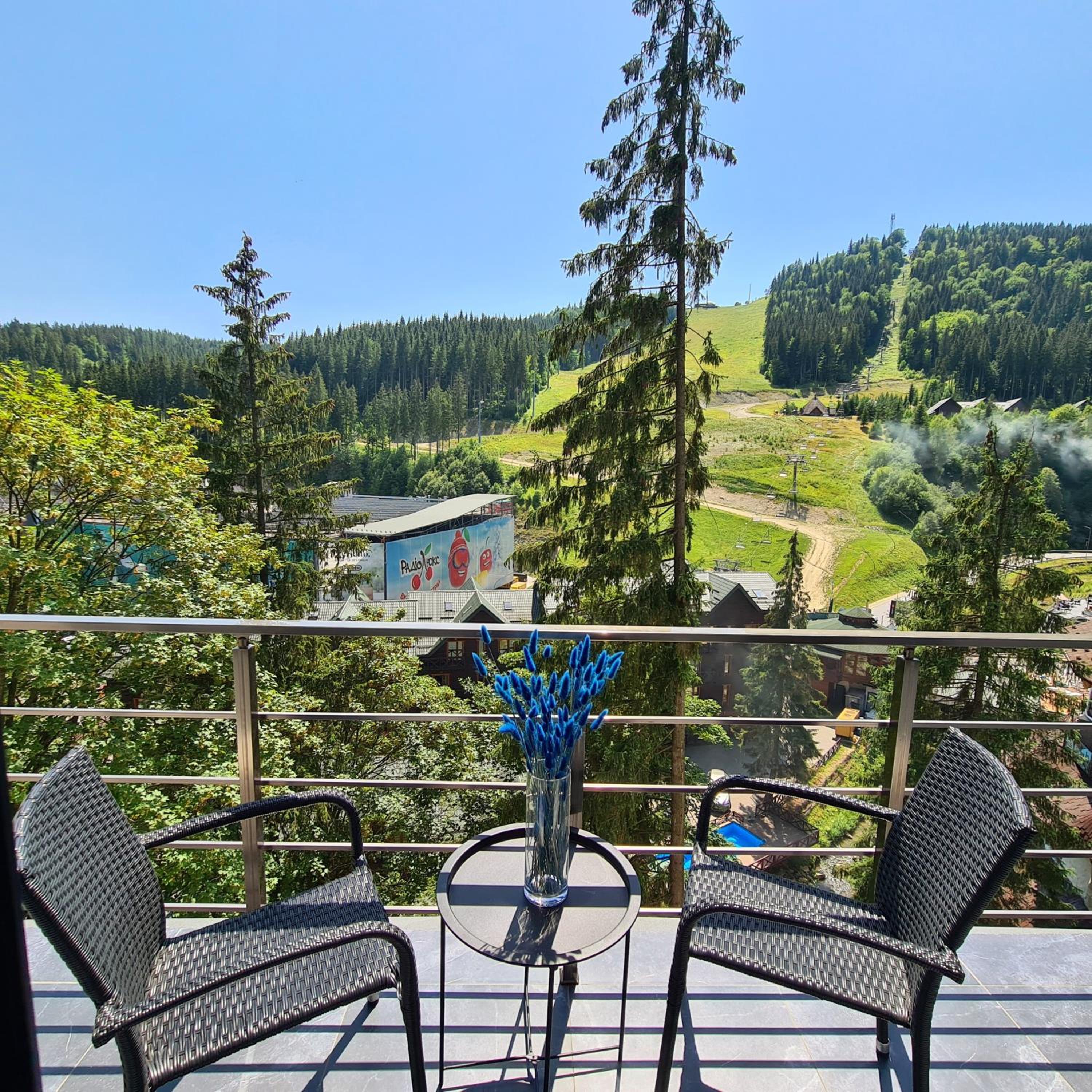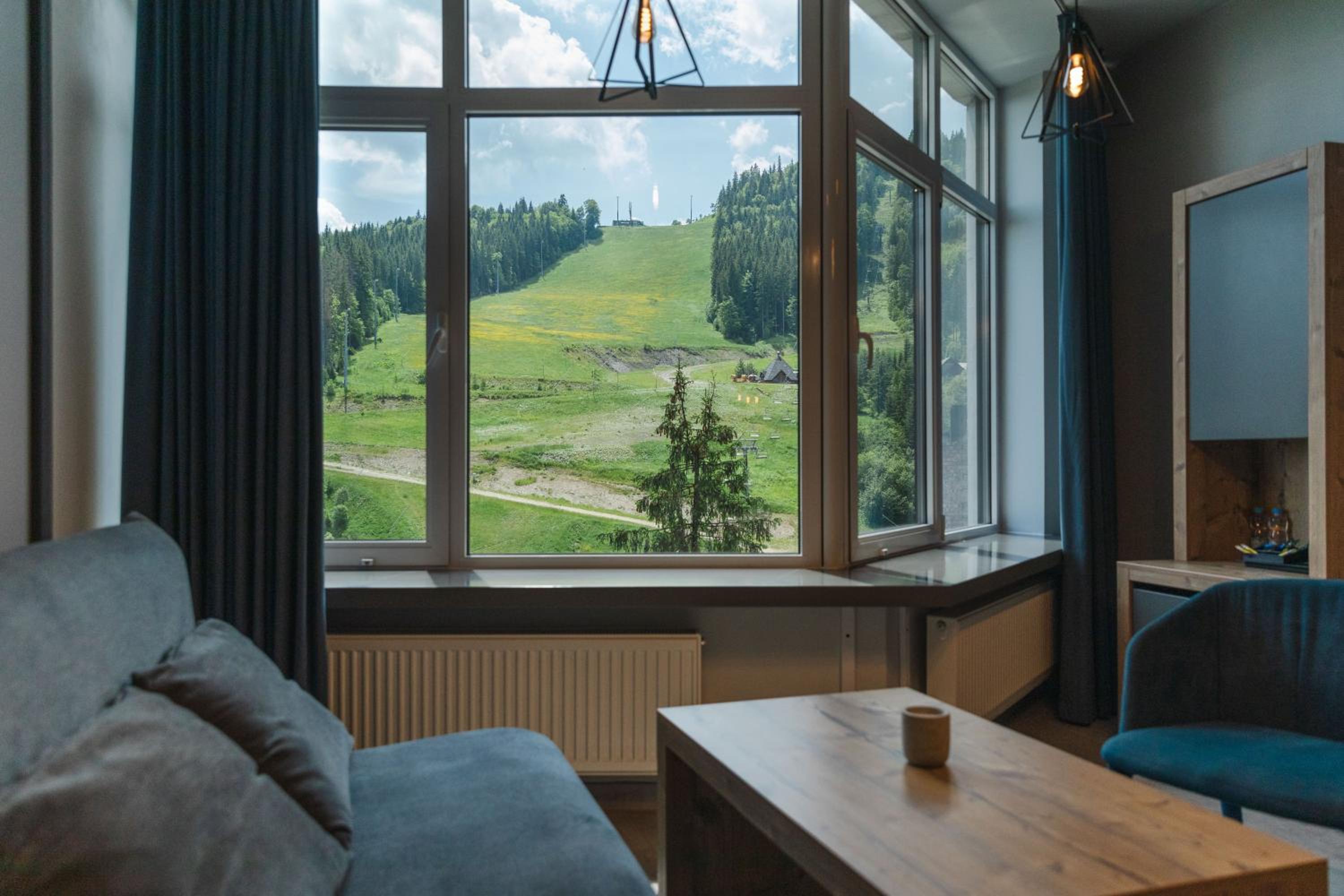 Located in Bukovel, BLUE mountain offers a luxurious stay with rooms featuring modern amenities like free WiFi, flat-screen TVs, and private bathrooms. Some rooms even boast stunning mountain views, providing a truly immersive experience.