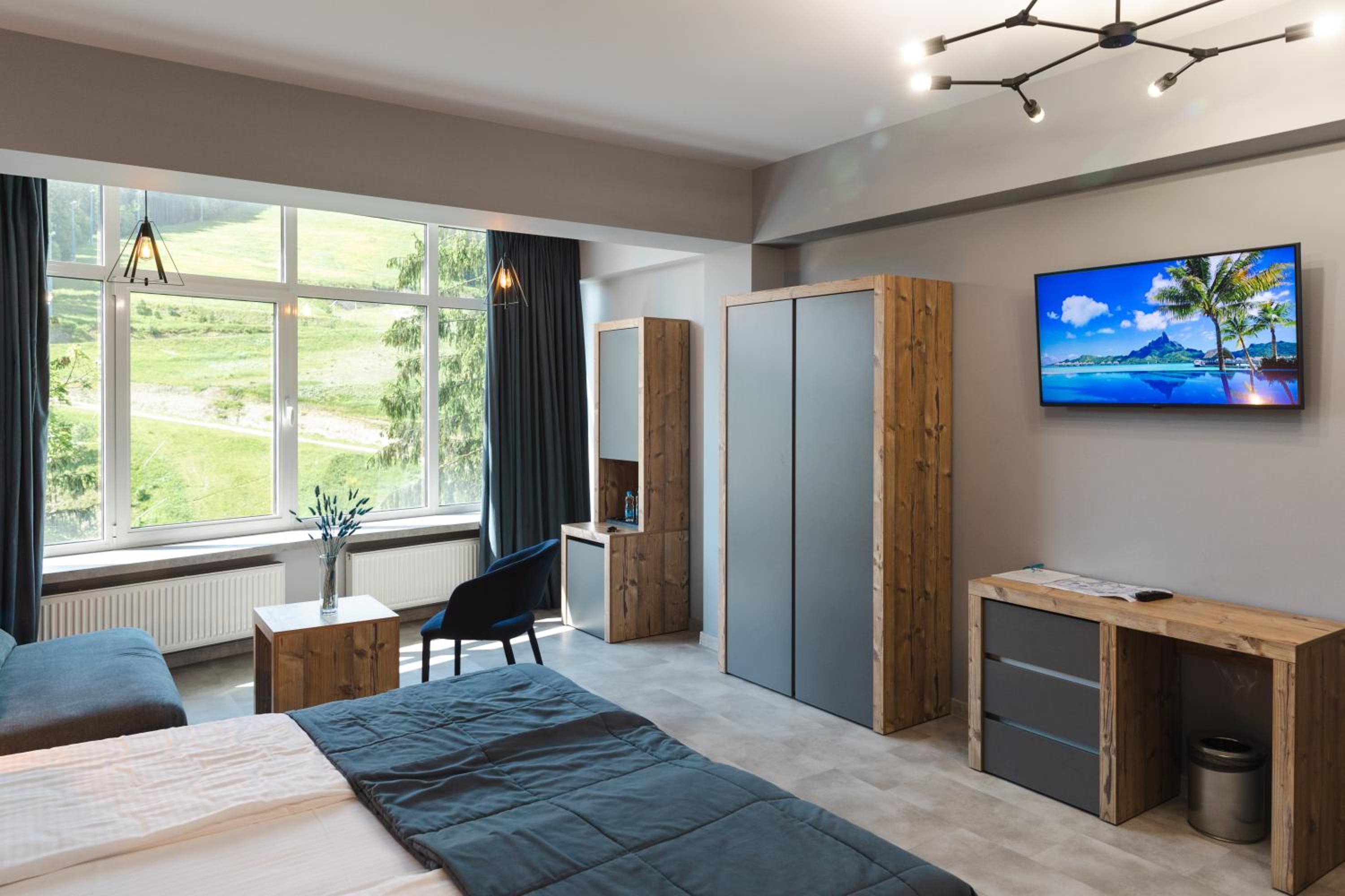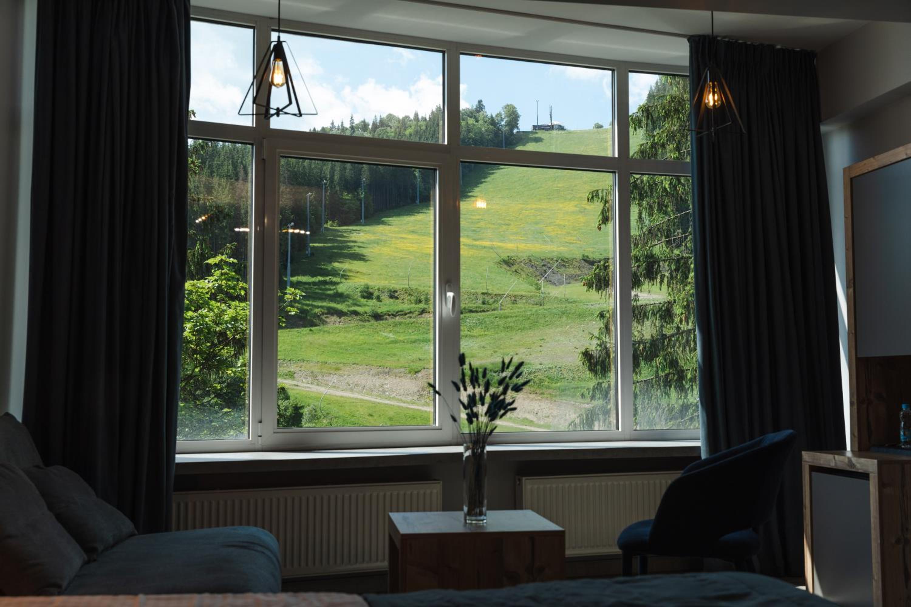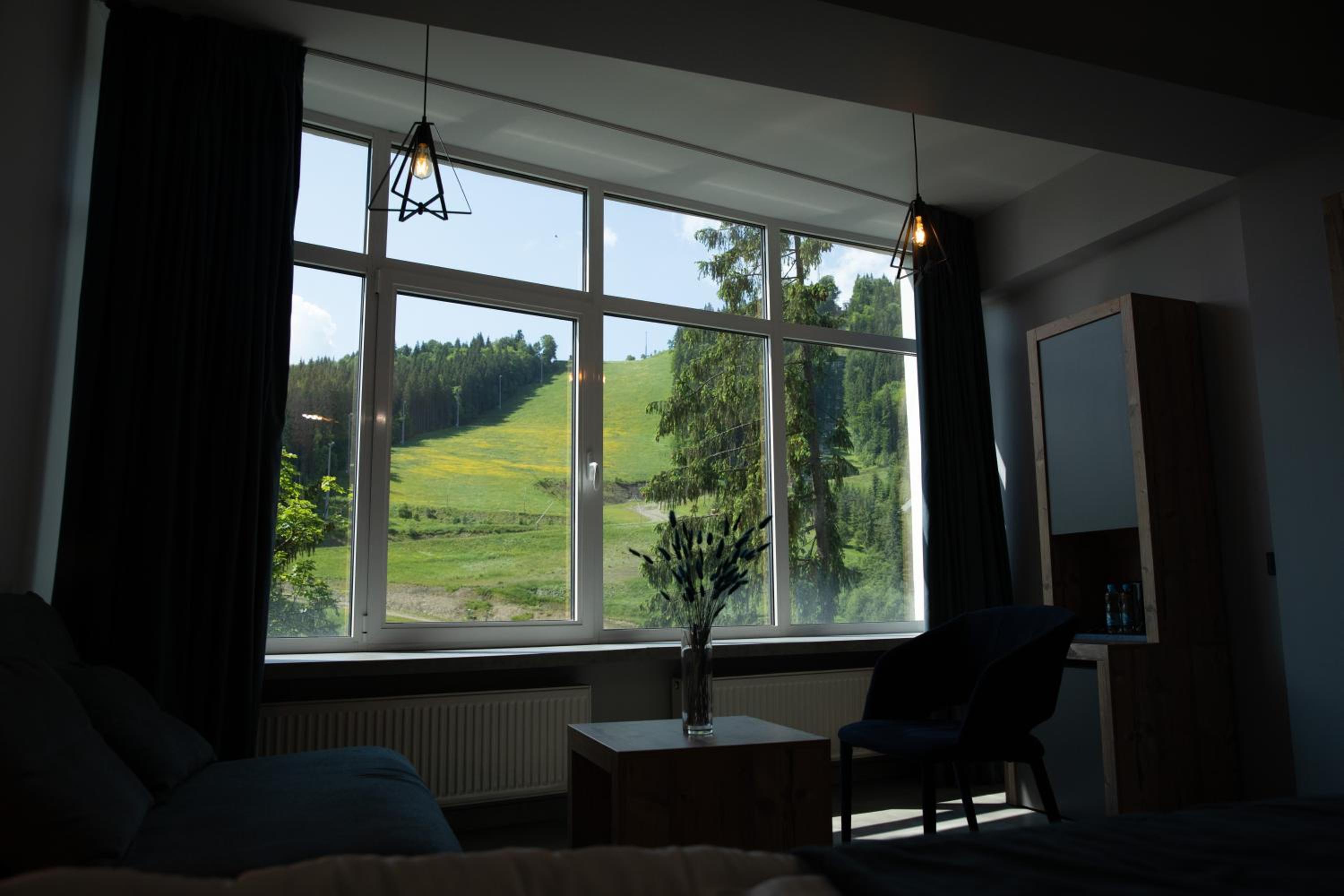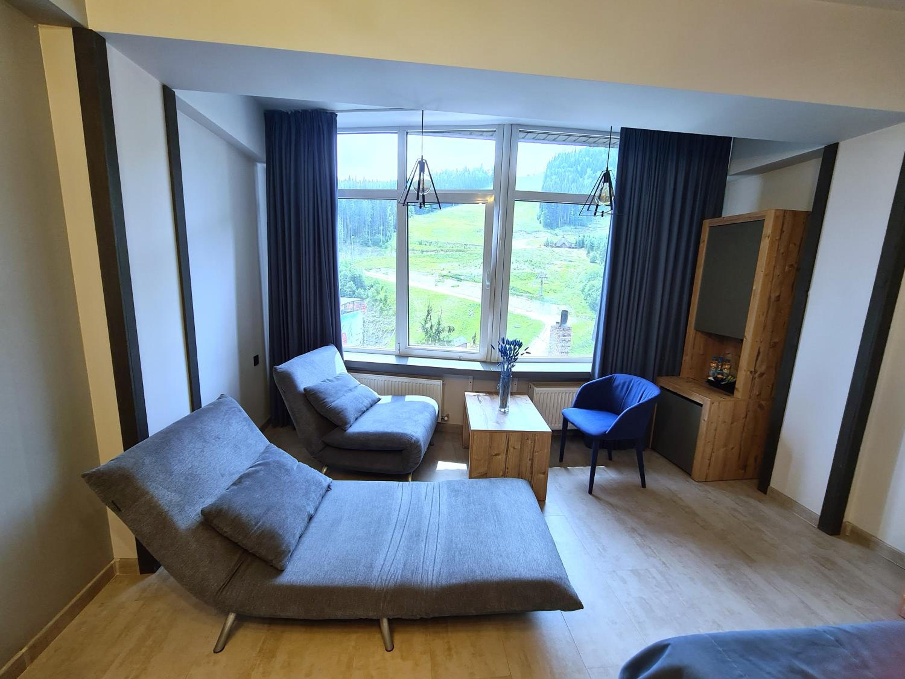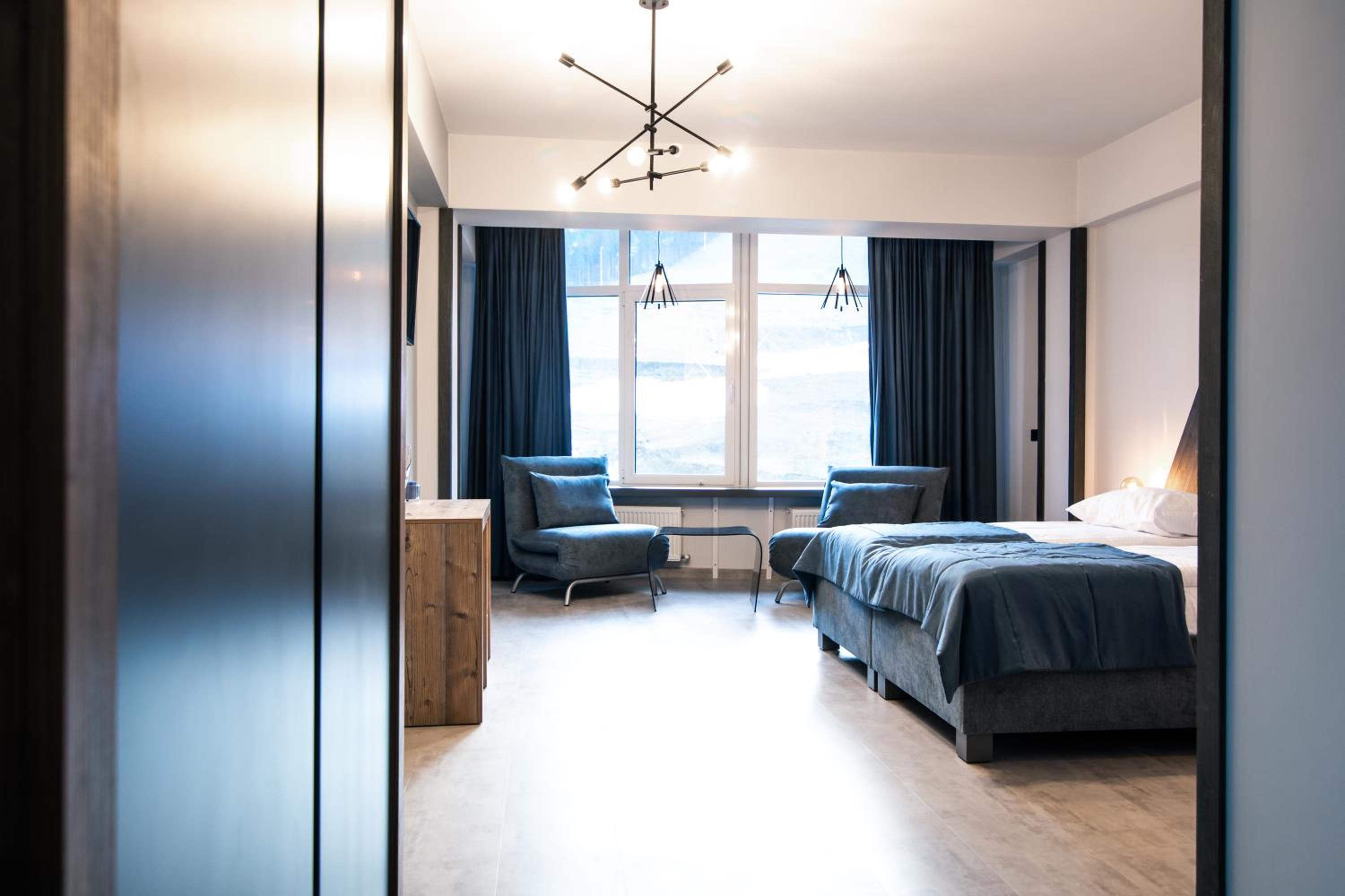 Located in Bukovel, BLUE mountain offers a luxurious stay with rooms featuring modern amenities like free WiFi, flat-screen TVs, and private bathrooms. Some rooms even boast stunning mountain views, providing a truly immersive experience.