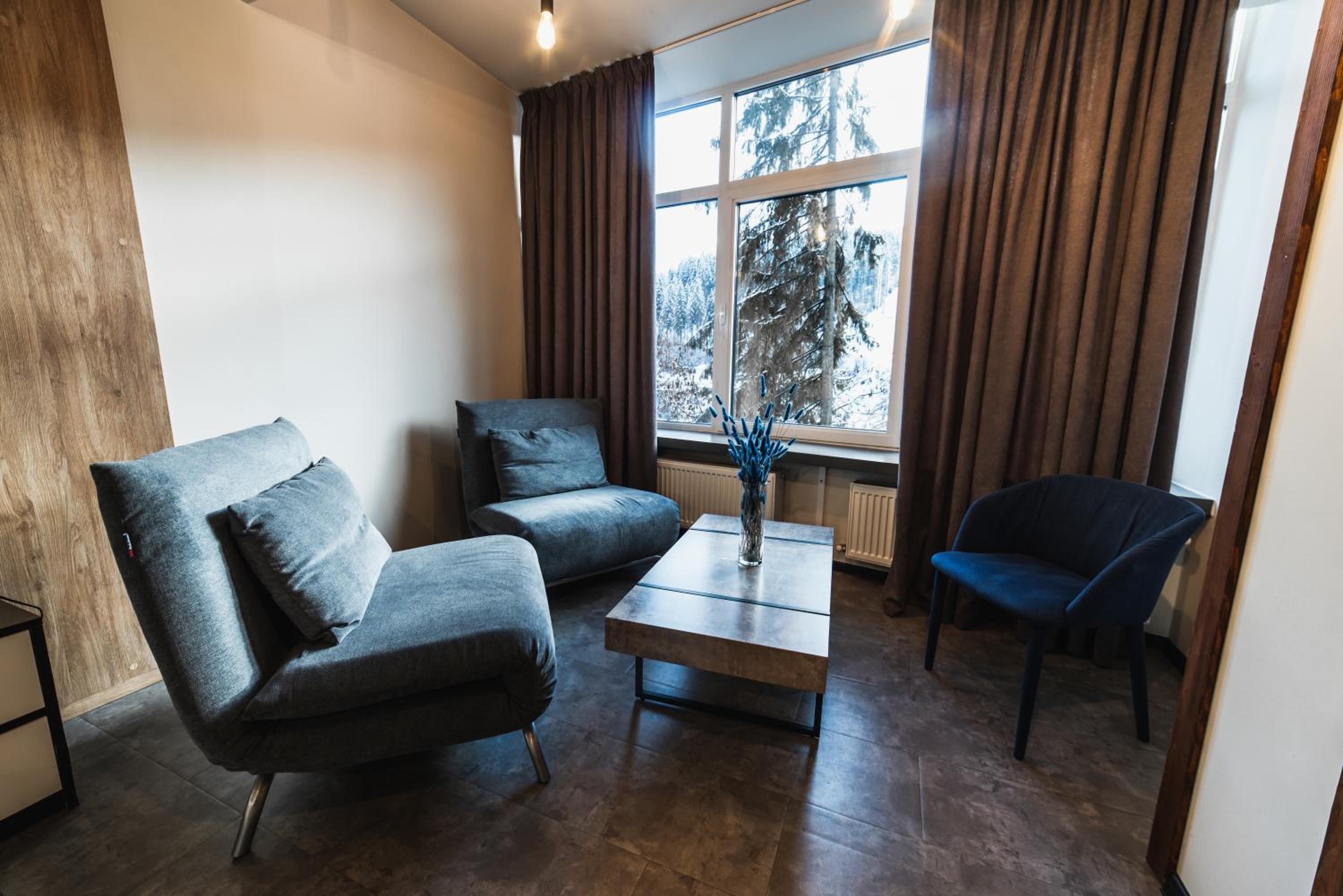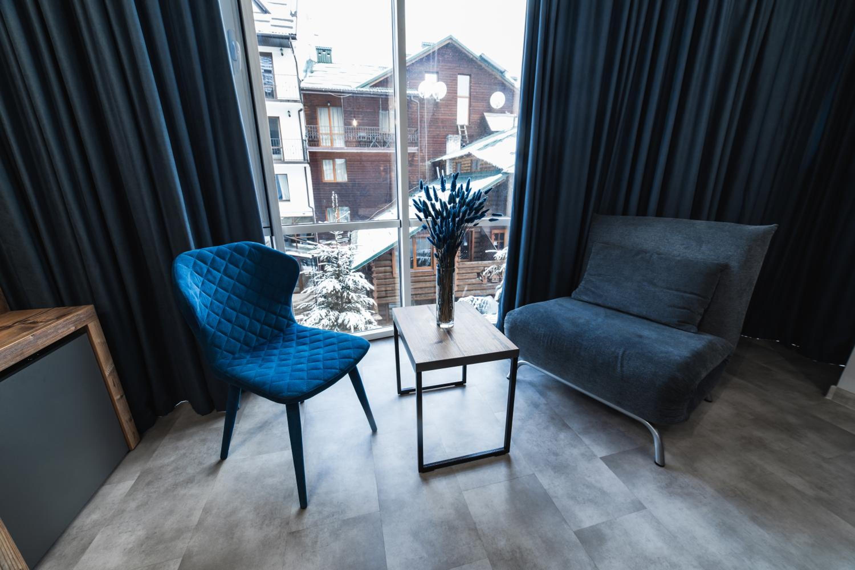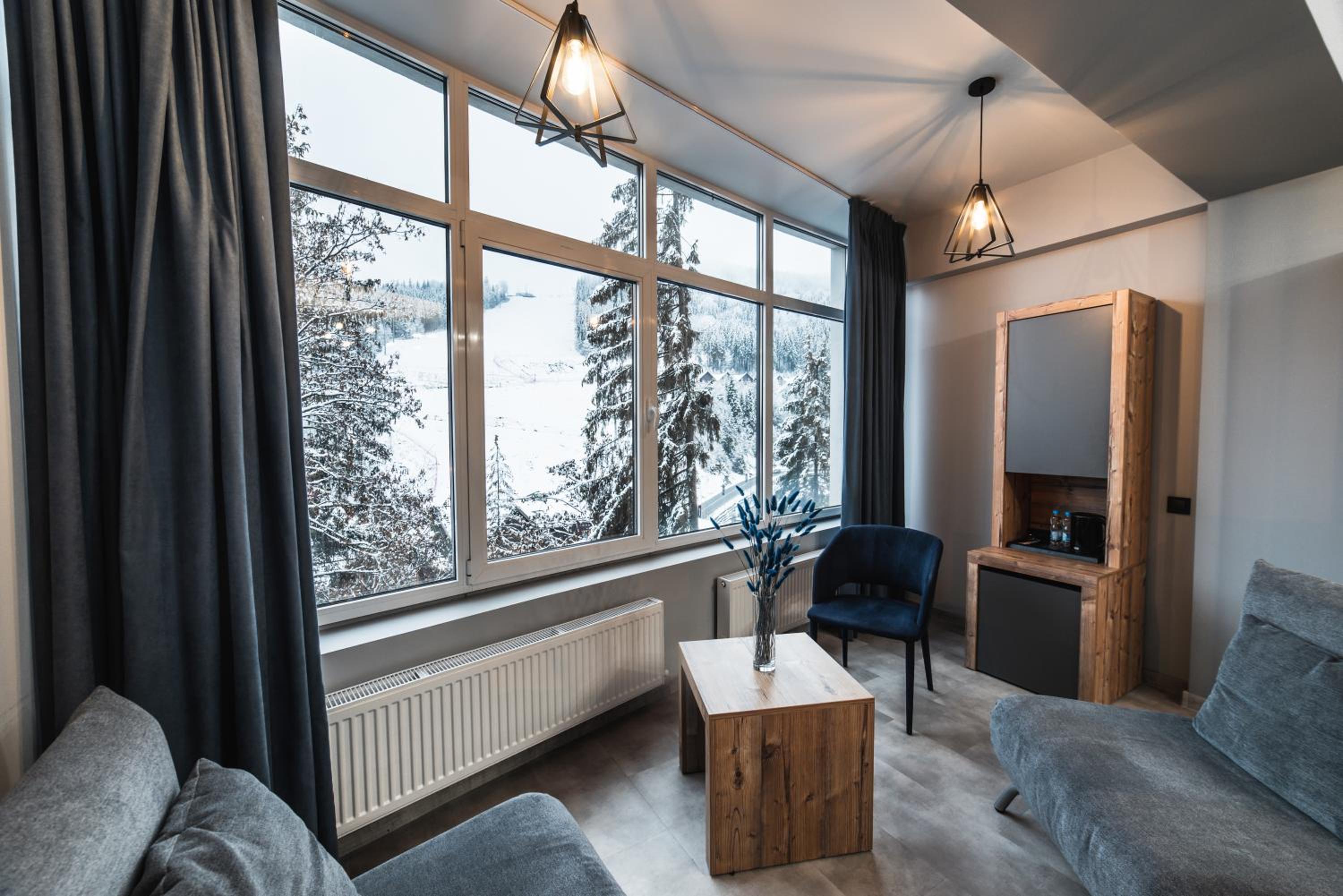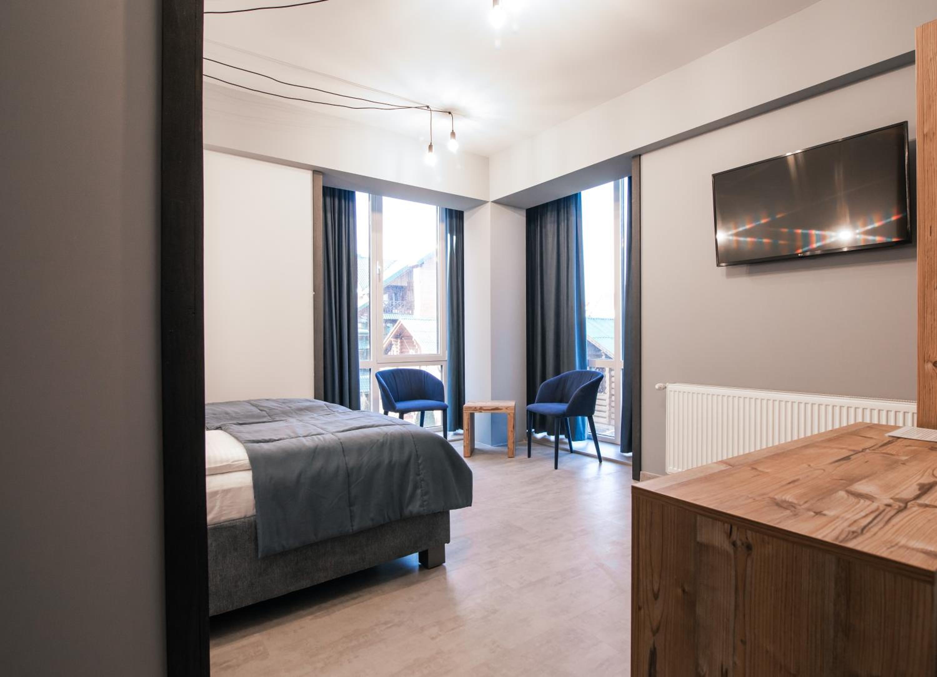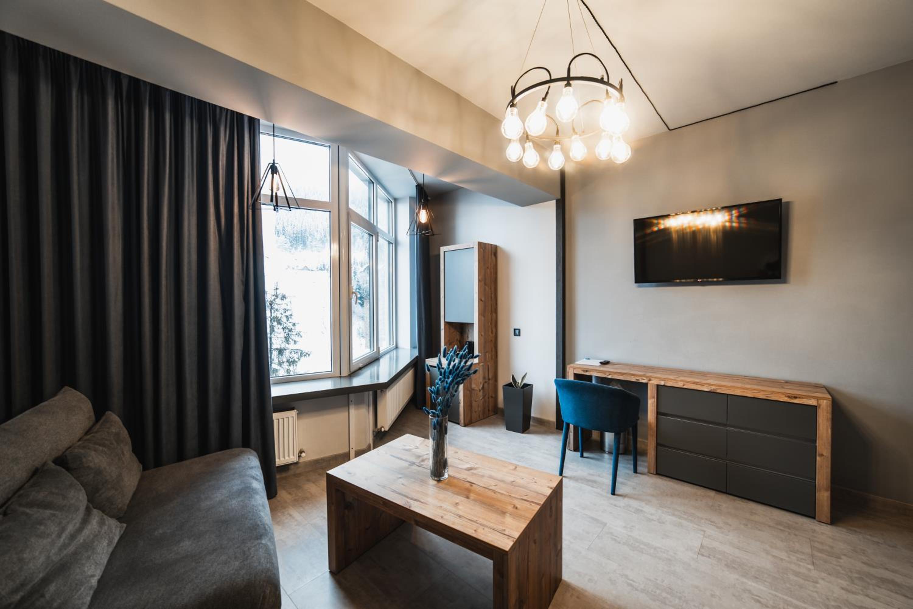 Located in Bukovel, BLUE mountain offers a luxurious stay with rooms featuring modern amenities like free WiFi, flat-screen TVs, and private bathrooms. Some rooms even boast stunning mountain views, providing a truly immersive experience.